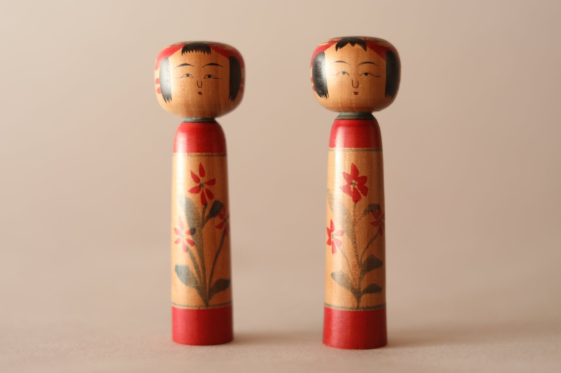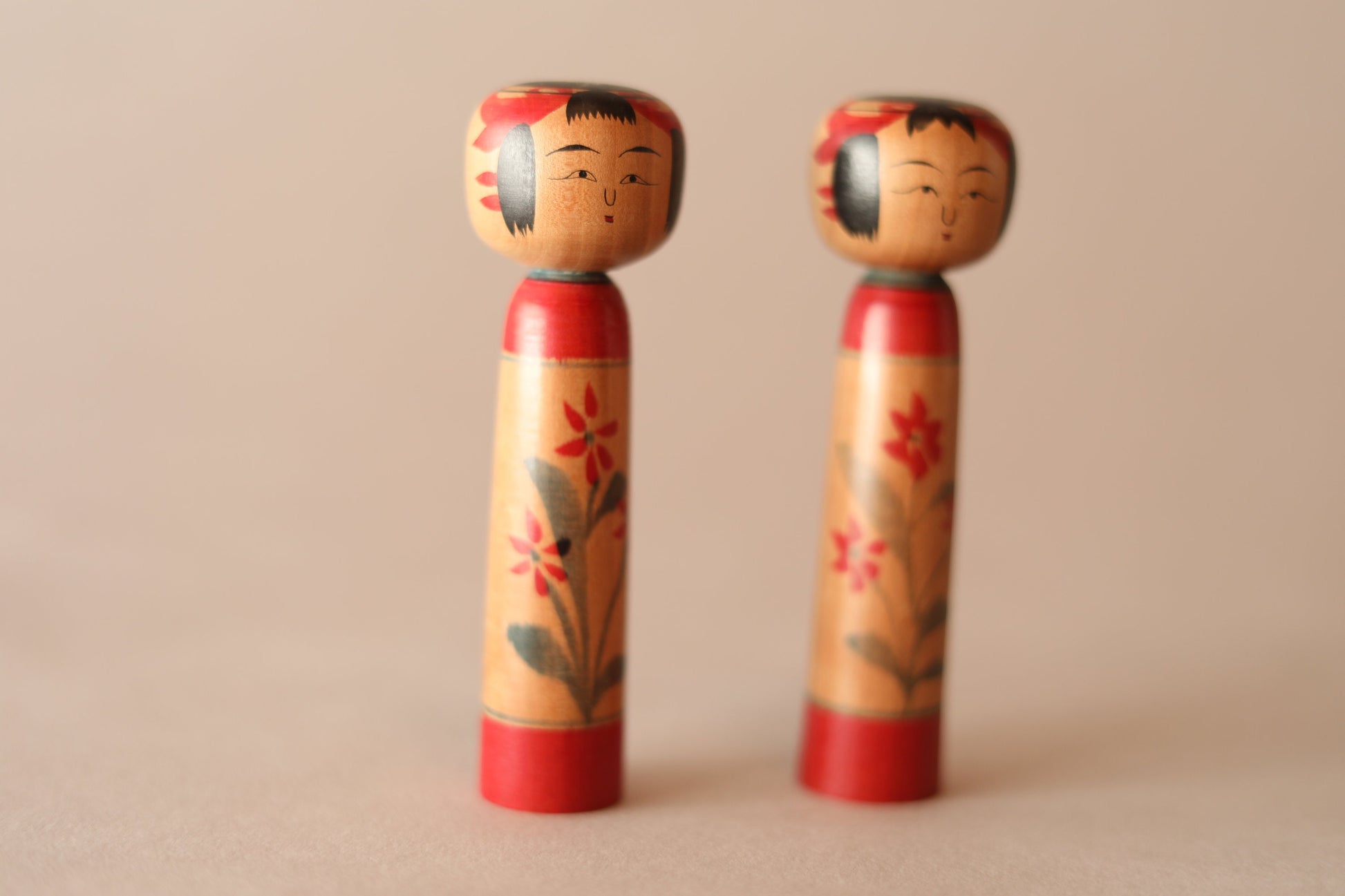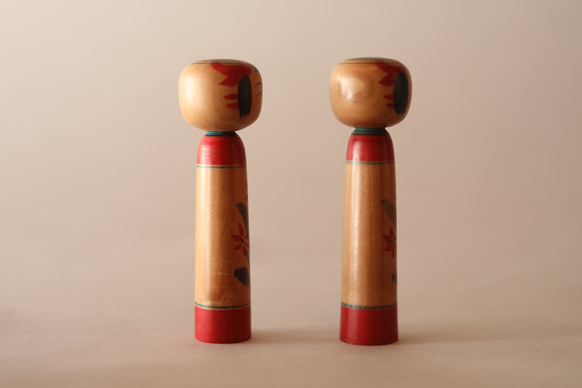 KOKESHI Japanese vintage pair of Tuchiyu kokeshi doll with flower signature, Traditional Kokeshi/Dento Kokeshi/wooden small doll H4.2×1.3in