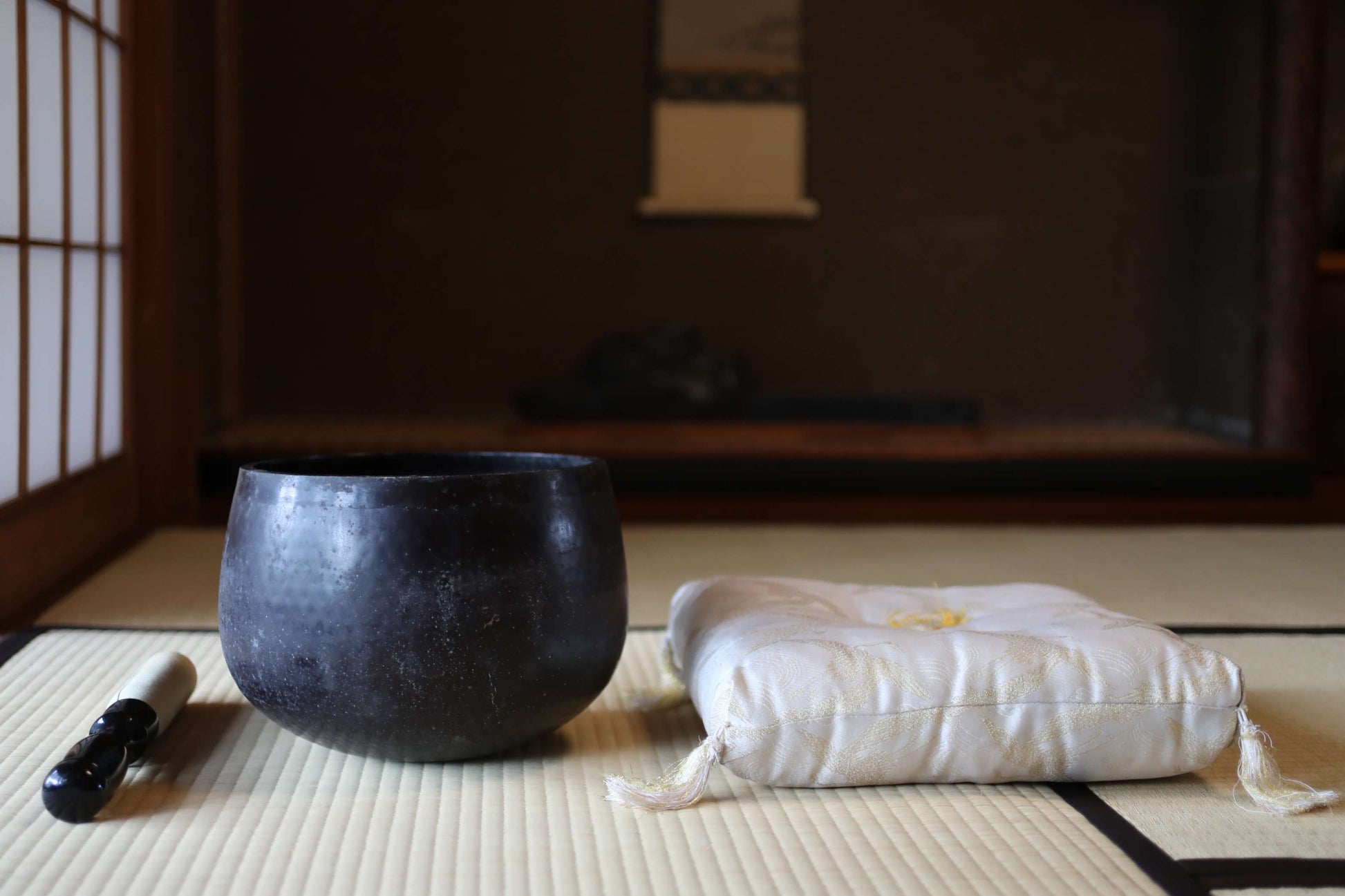 This singing bowl was crafted at a renowned Takaoka bronze workshop in Japan.