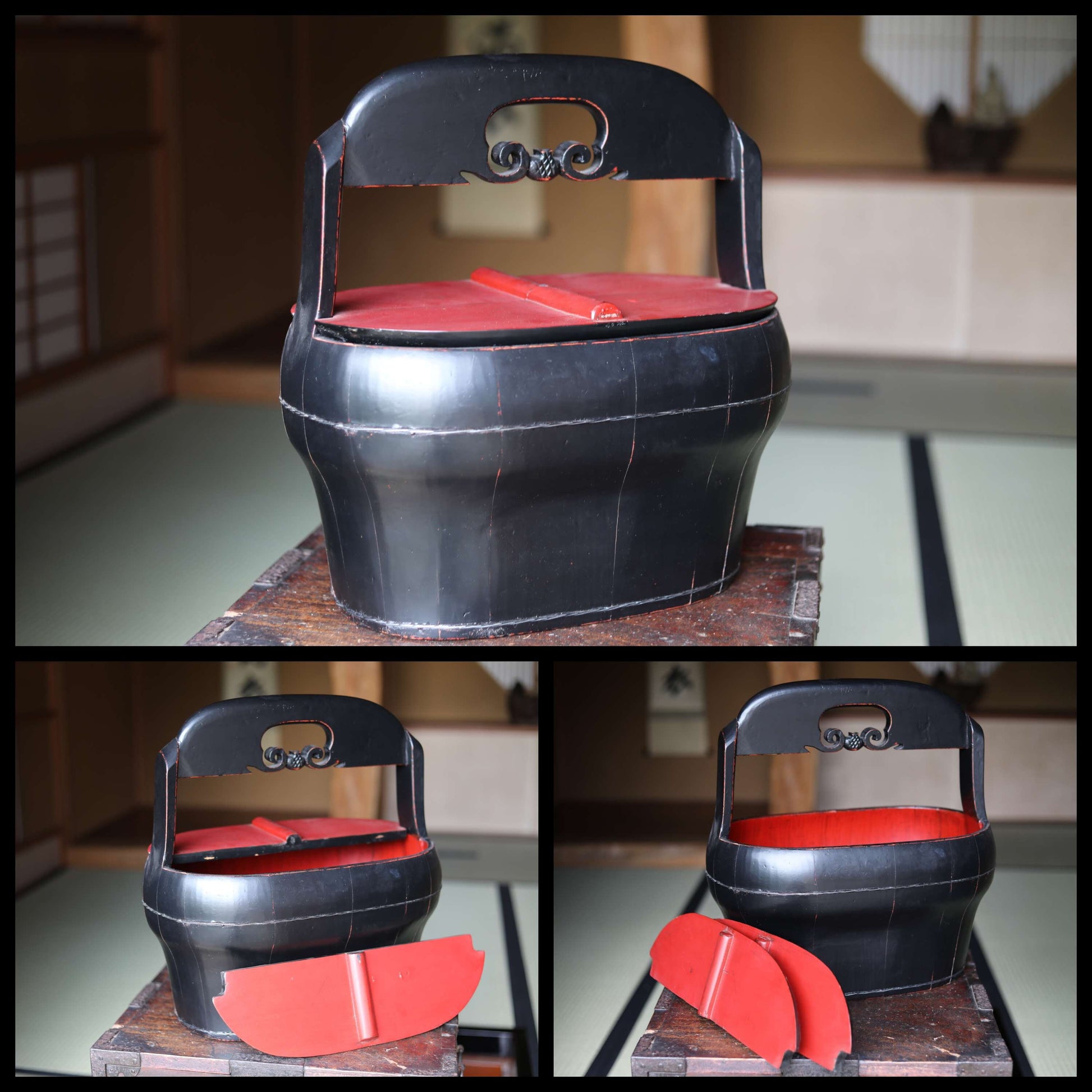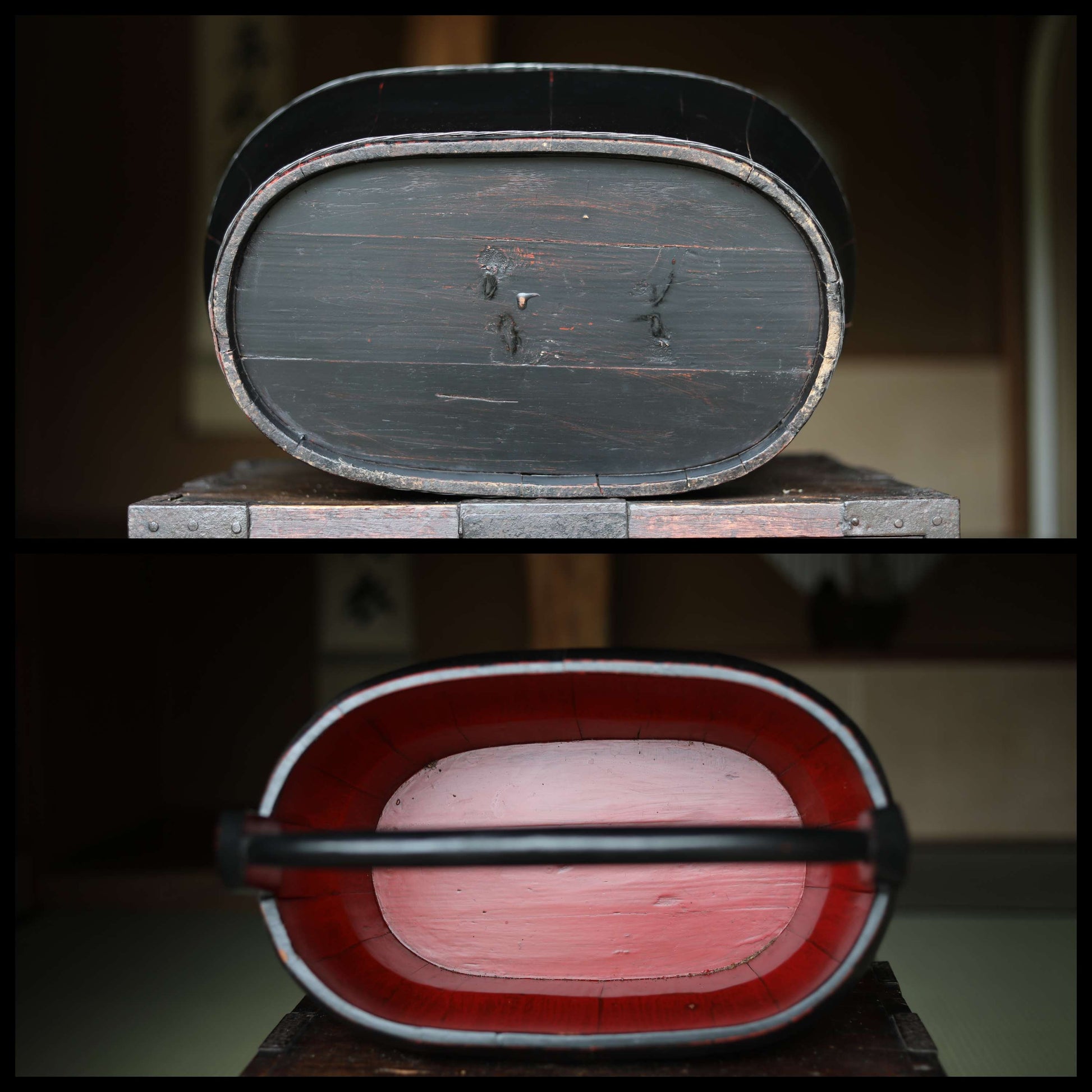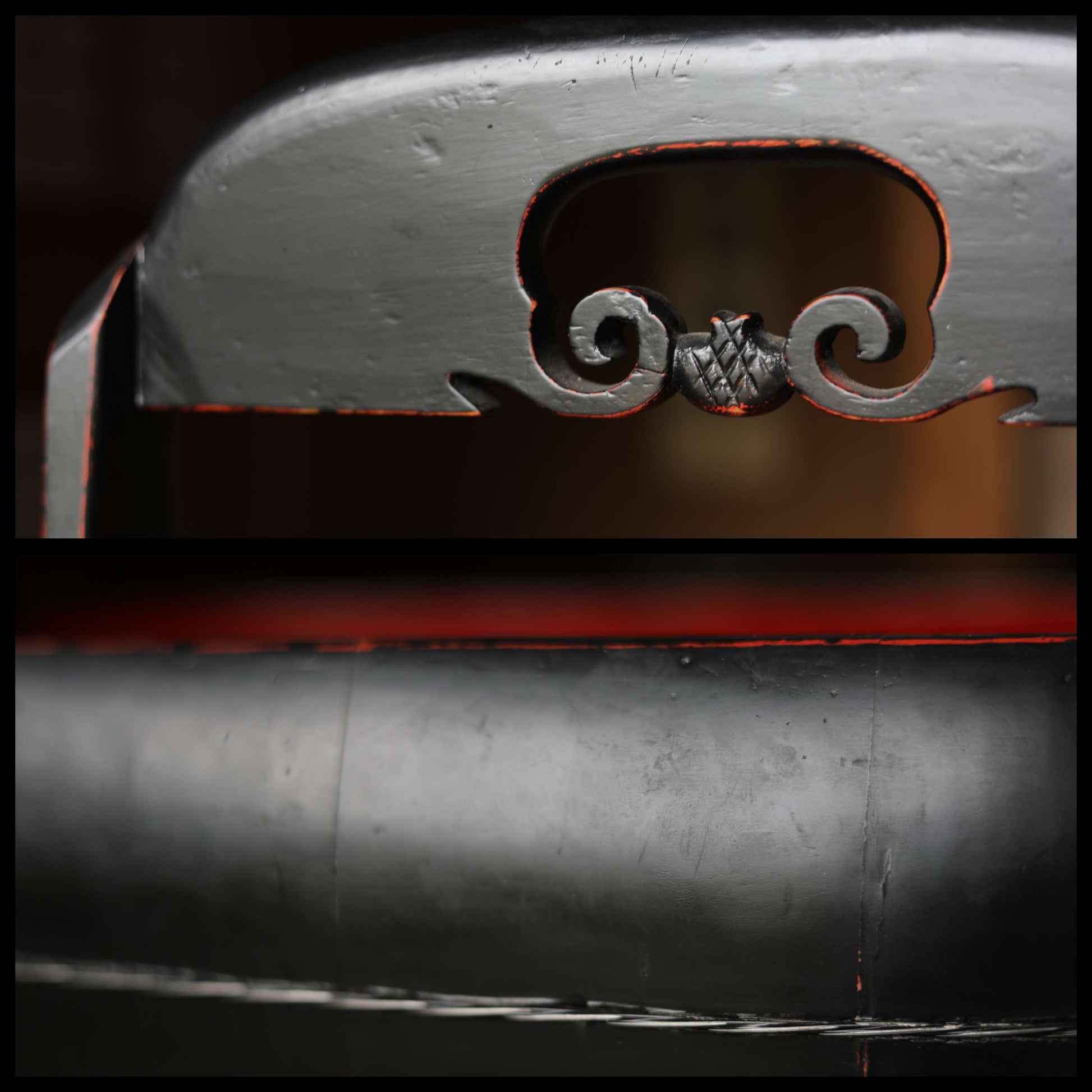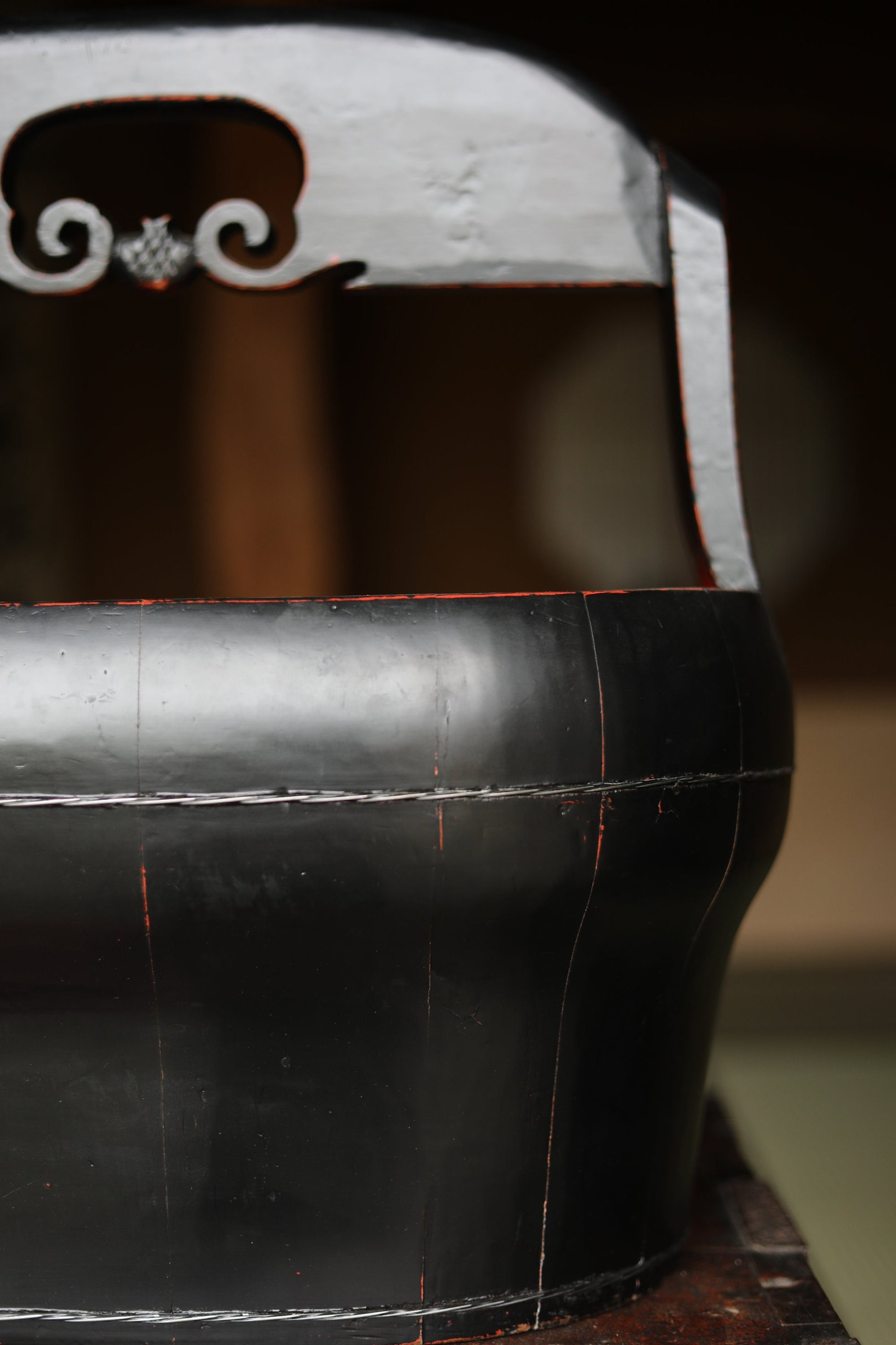 This is an old Chinese dim sum basket. It is made of solid wood and lacquer. It has a very beautiful form with a sturdy body and a narrowed hem. There are many red items, but the black type is rare and precious. The design is impressive and blends in with any space. When displaying flowers, it is recommended to place a cup or other container inside.