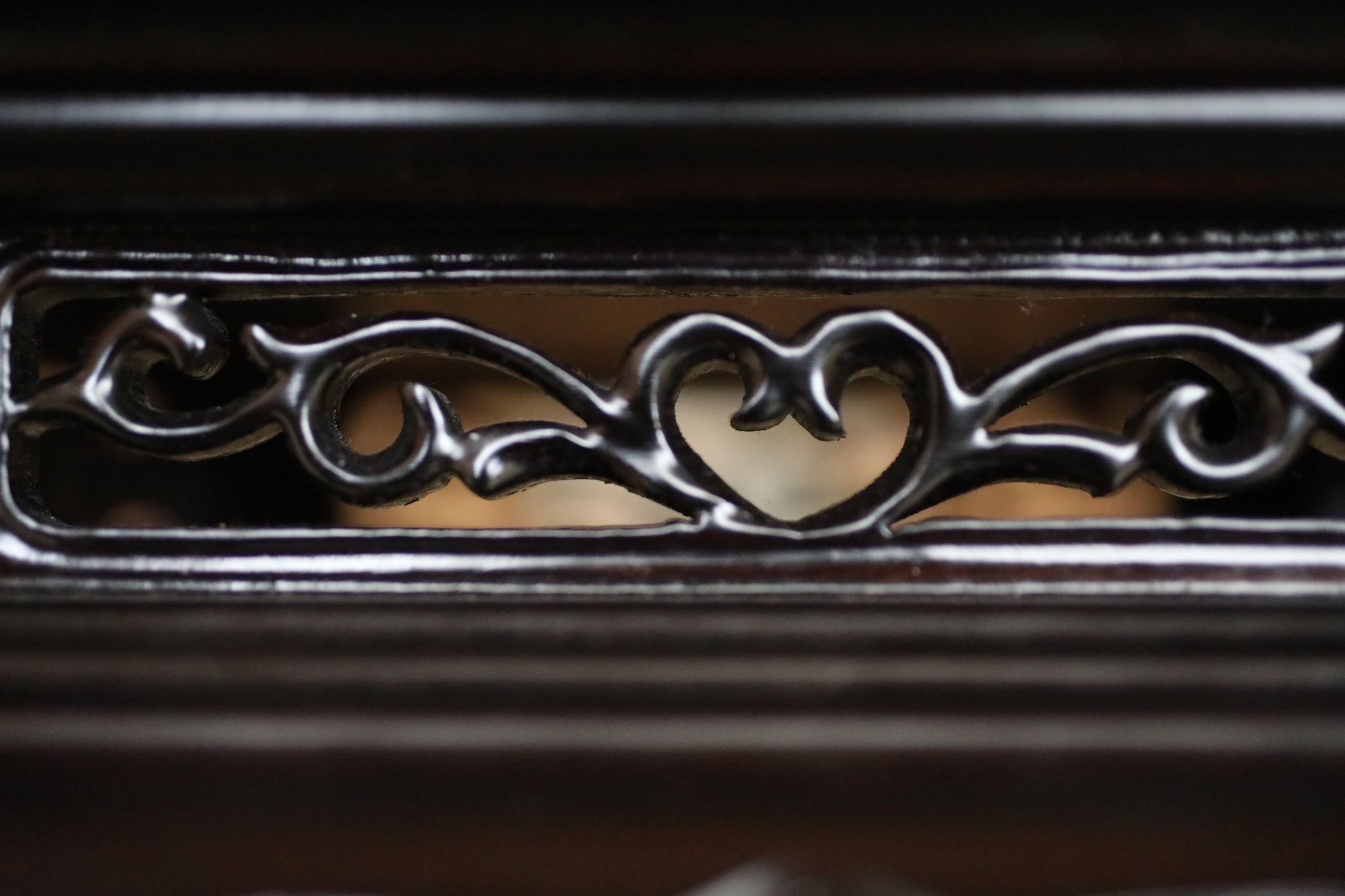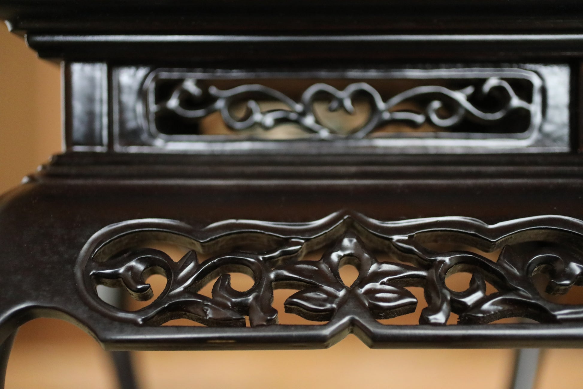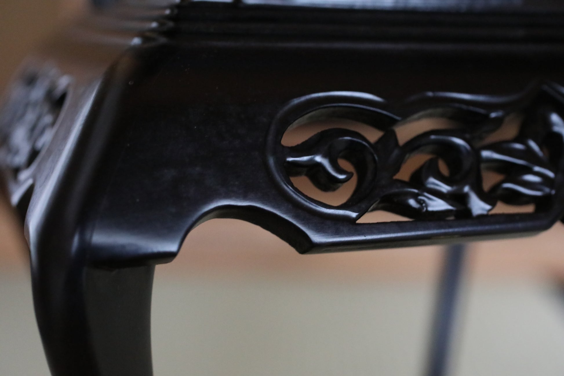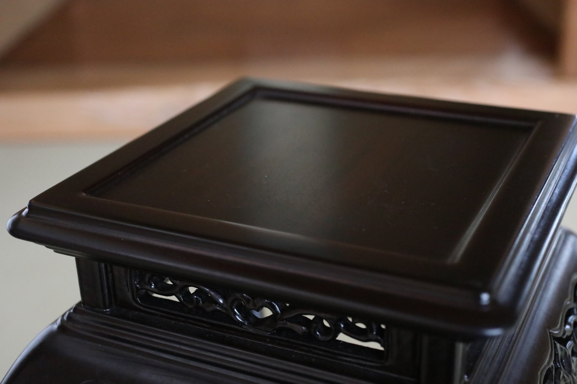 This is a large pedestal made of ebony, a type of hardwood native to Southeast Asia. With its beautiful natural color and grain, this wood has long been cherished as a premium furniture material in Japan.