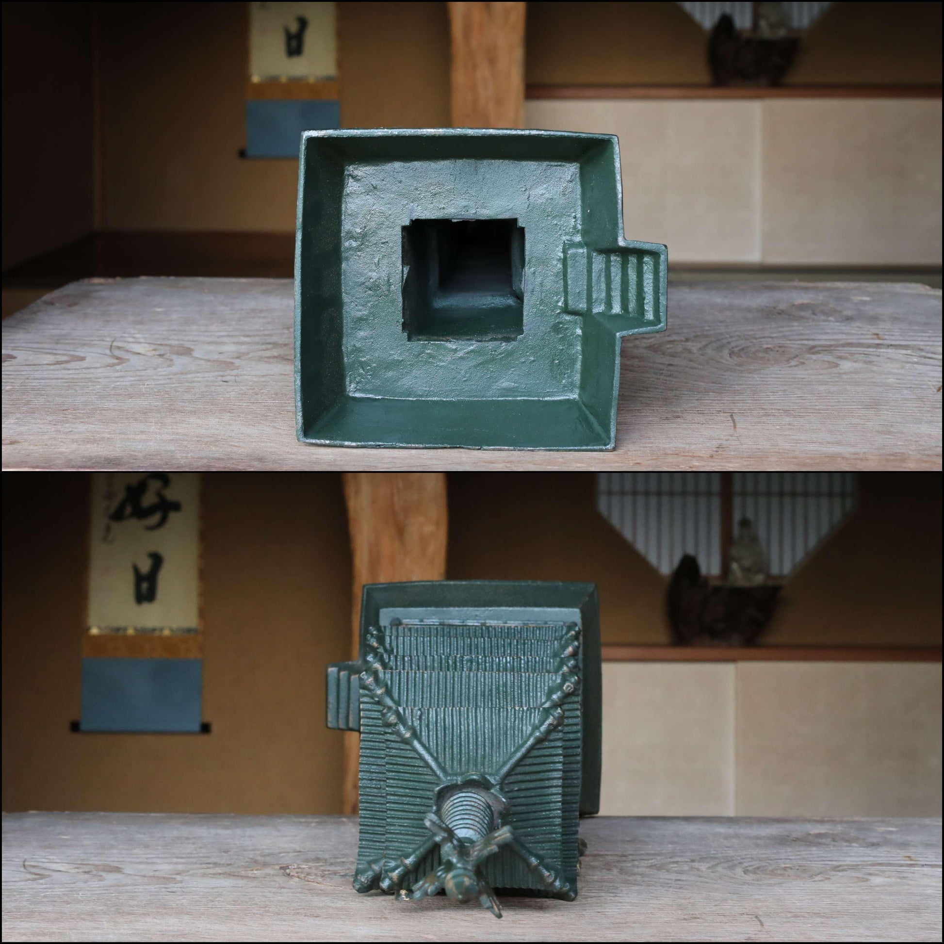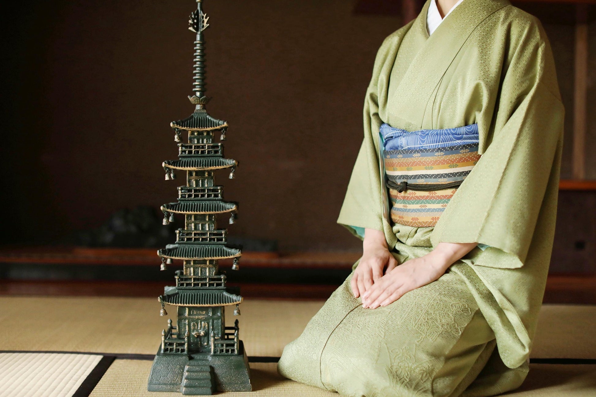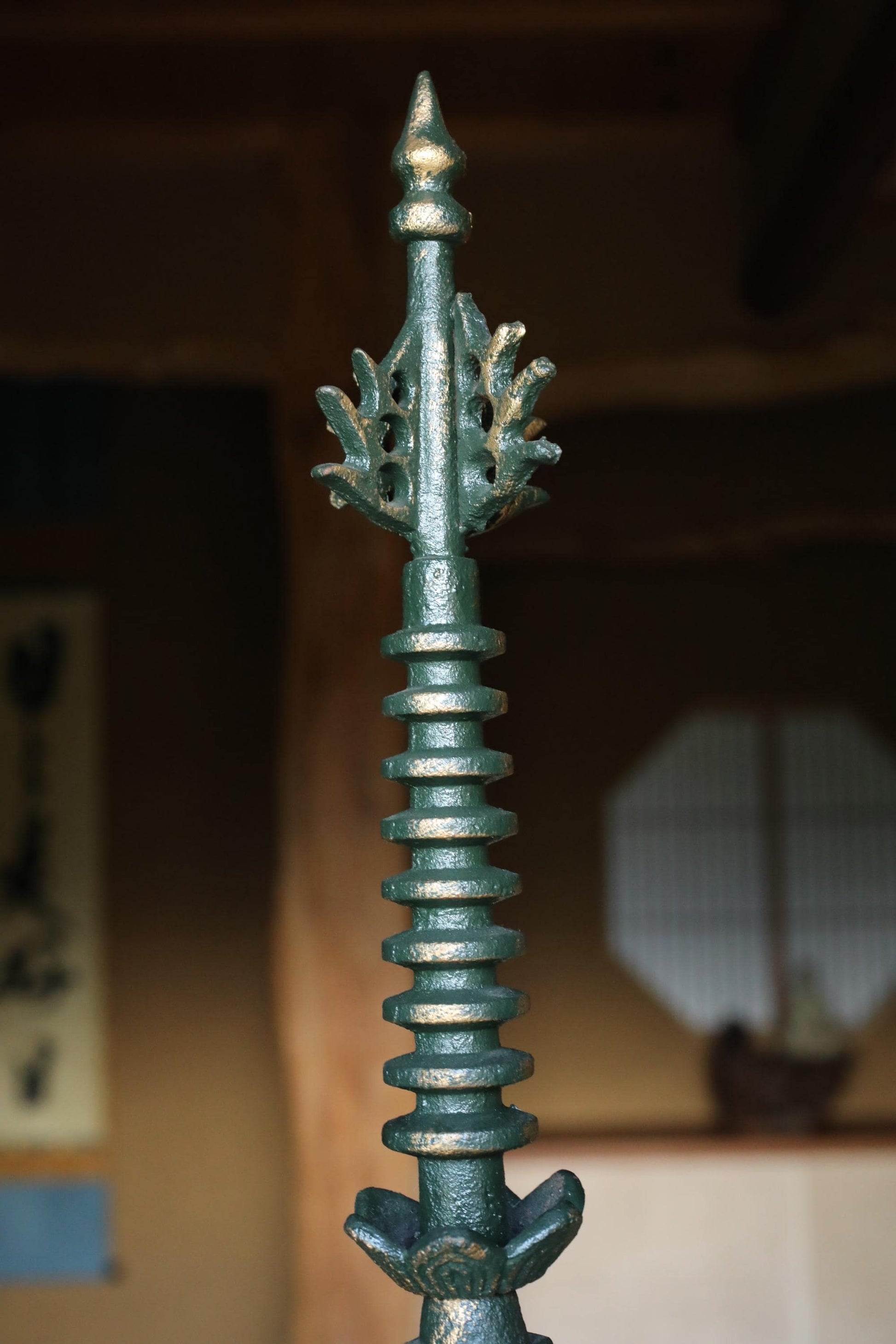 This is a 五重塔five-story pagoda made of cast iron. It is painted green.