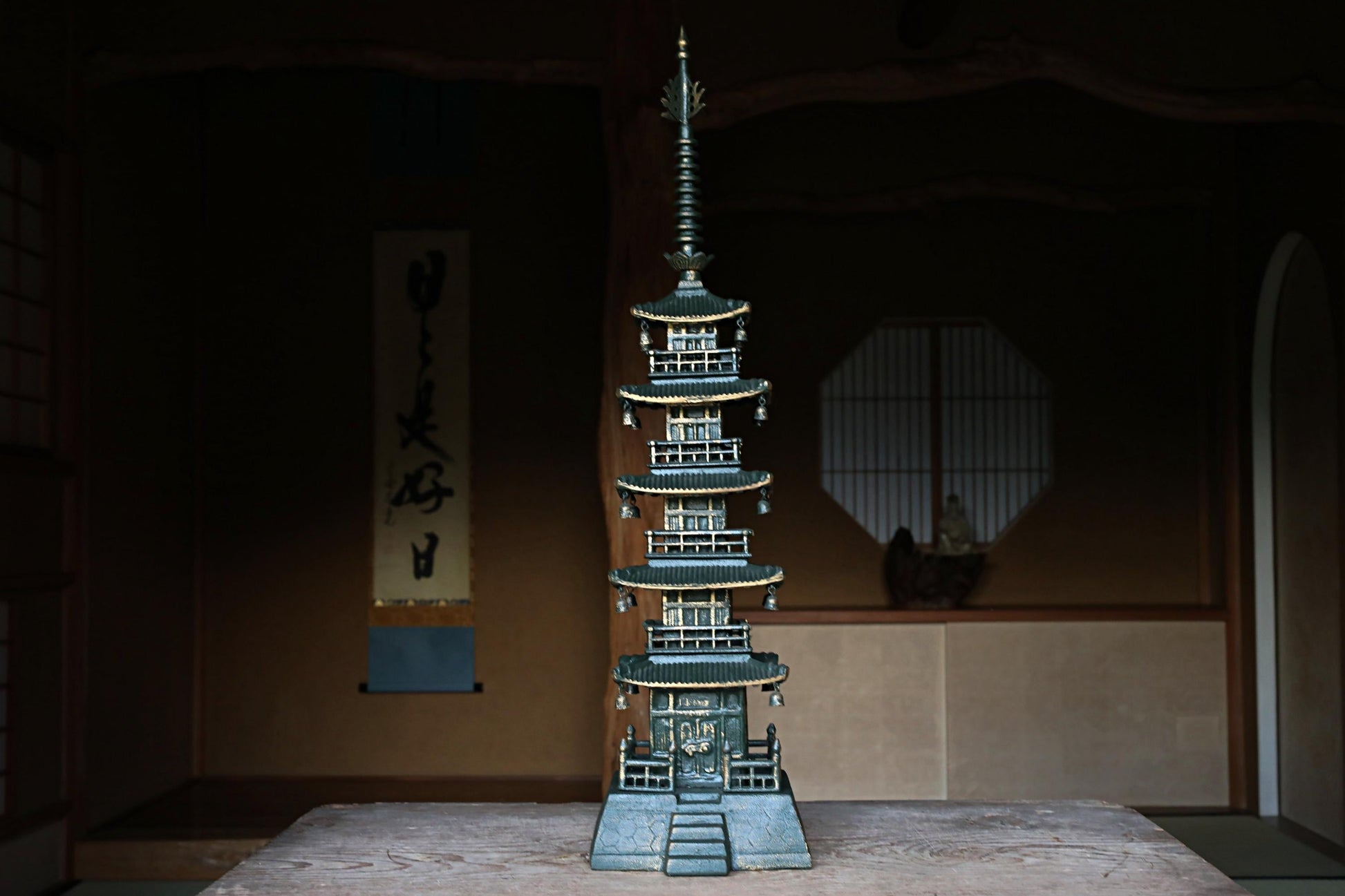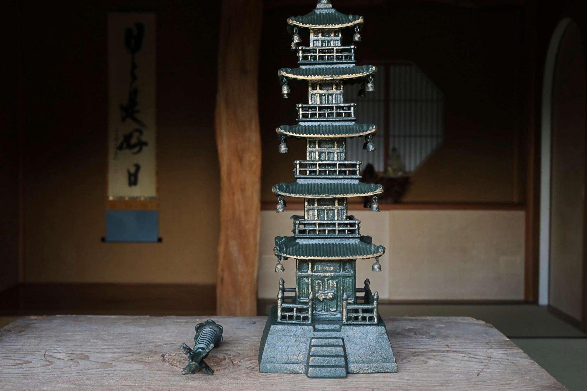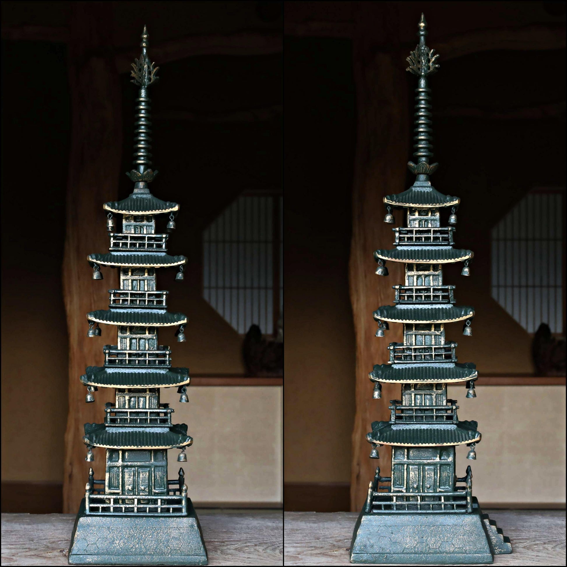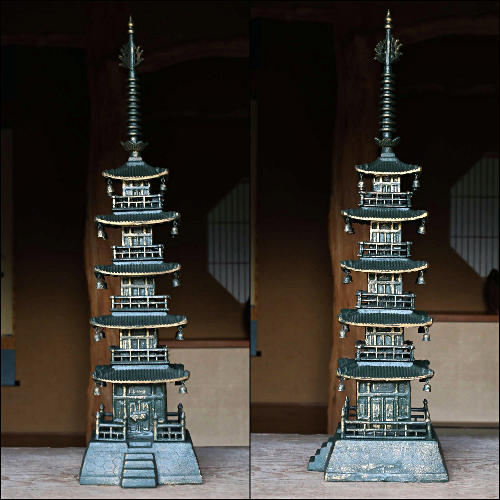 LARGE Japanese vintage iron five-storied Pagoda Buddhist architecture Kyoto garden design, Japanese metal interior H31.1×7.9in/H79×20cm