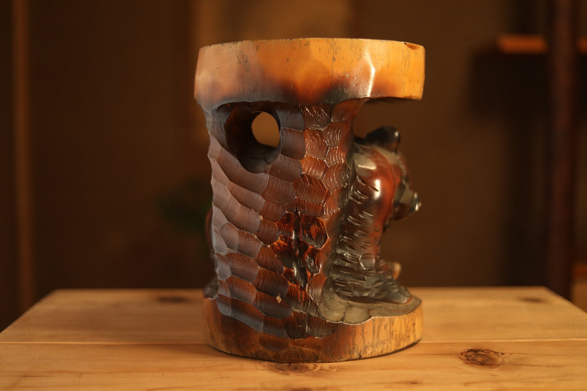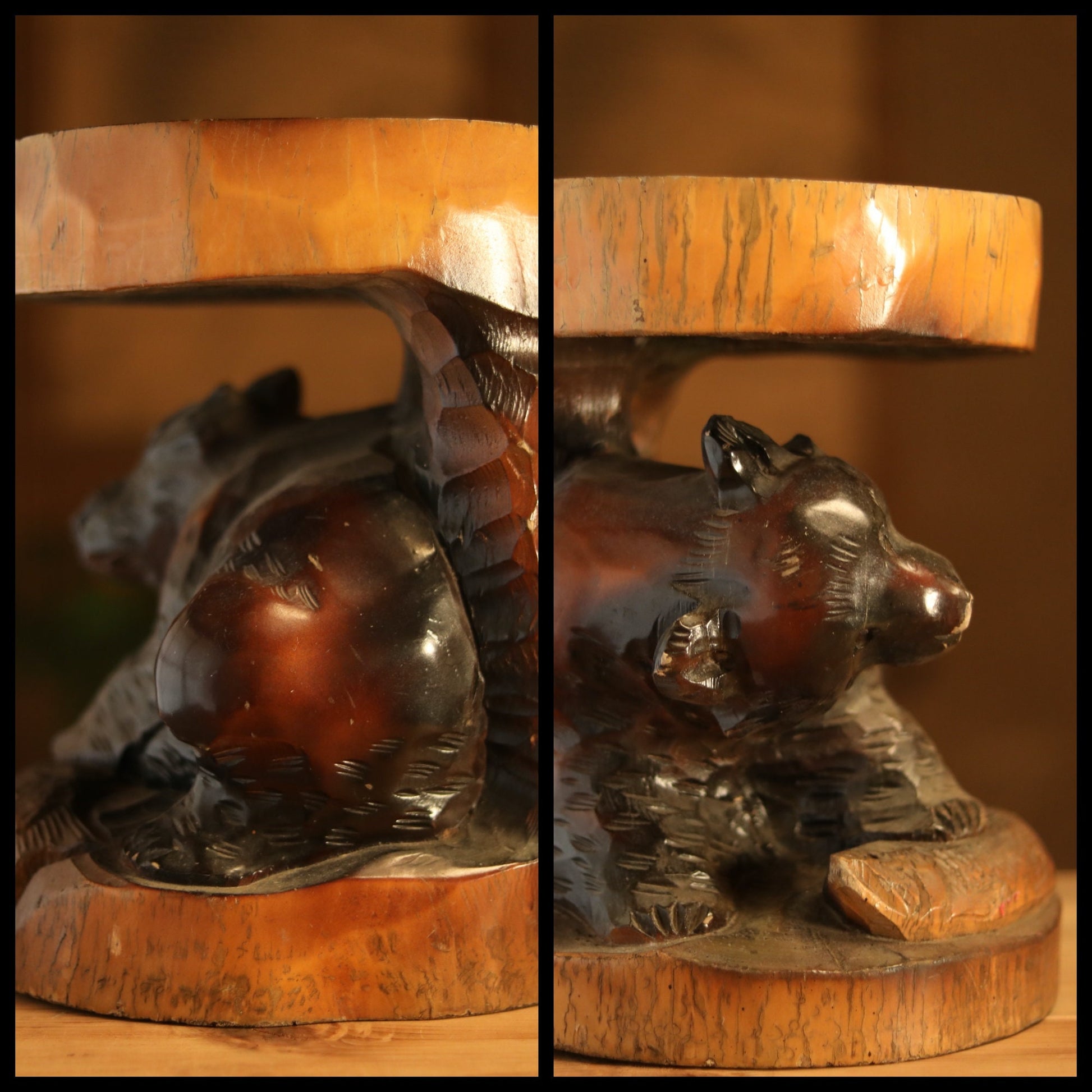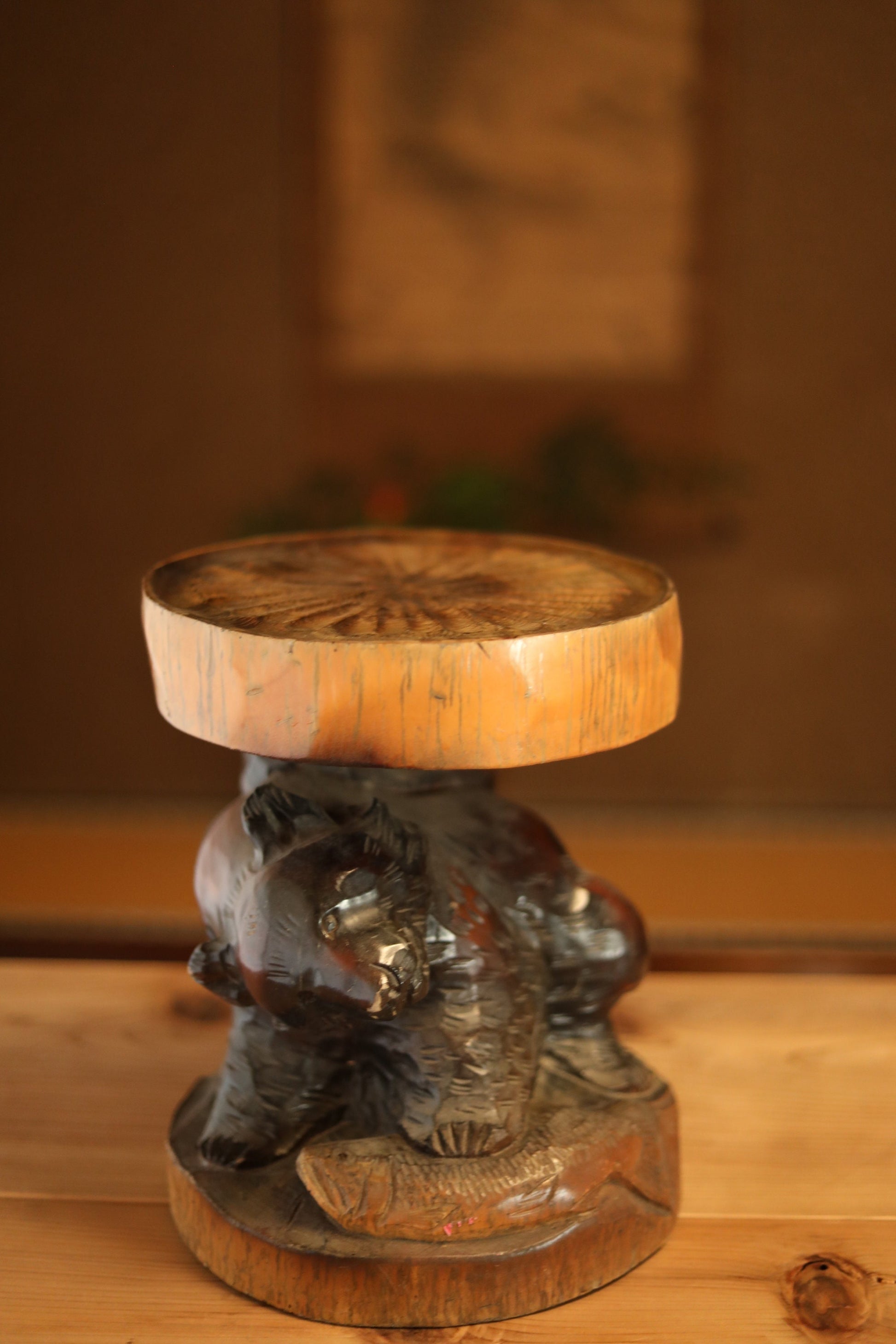 Japanese vintage wooden little bear sculpture, hand carving sculpture ,hand carved craft bear pedestal 1960s H12.2×W8.7xD9.8in