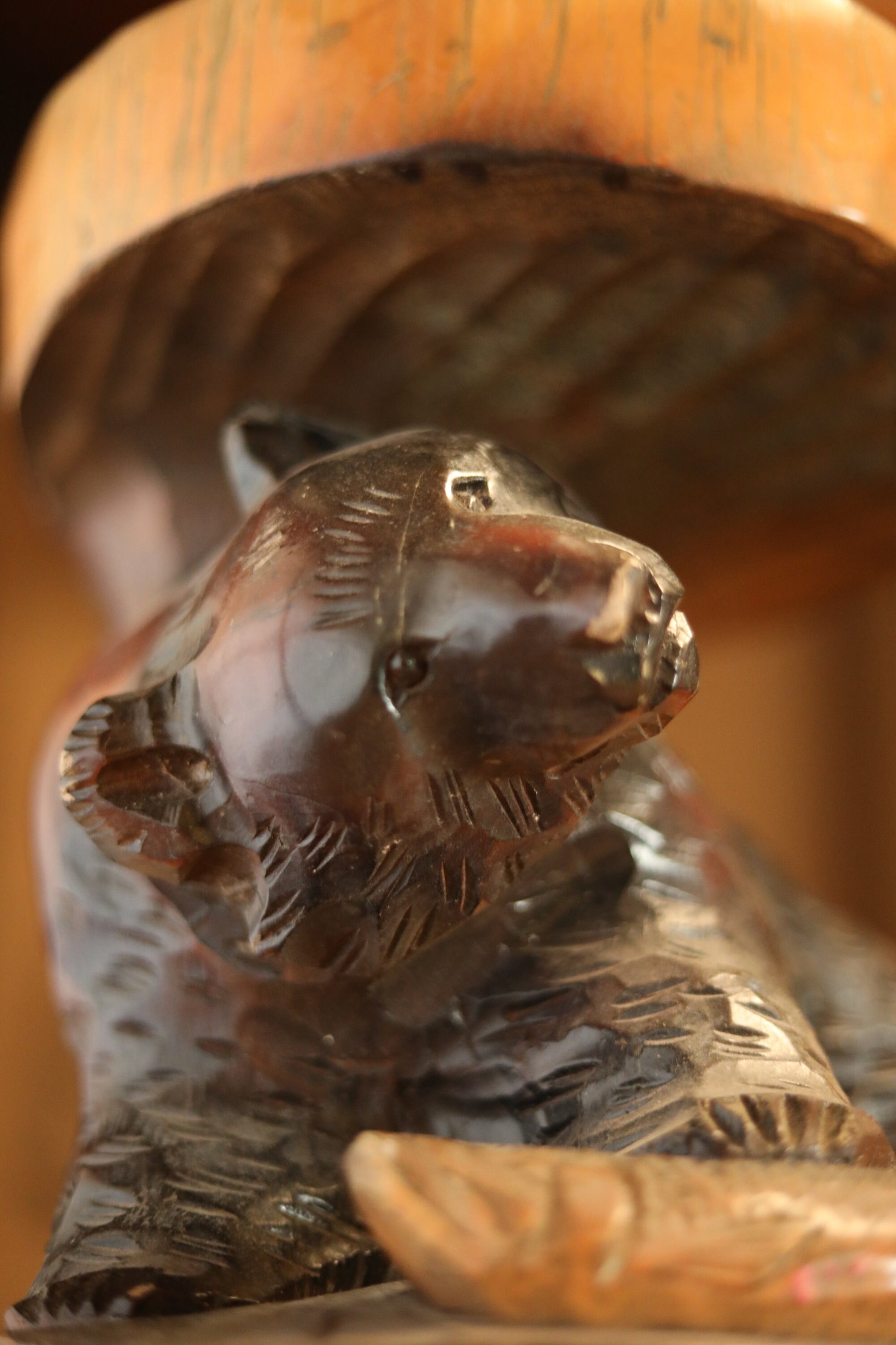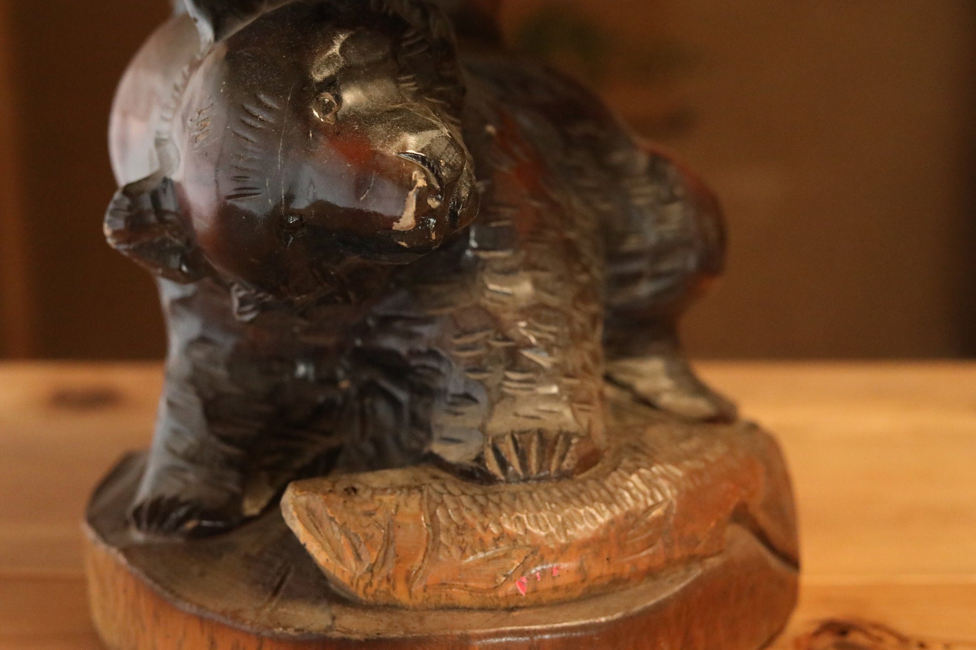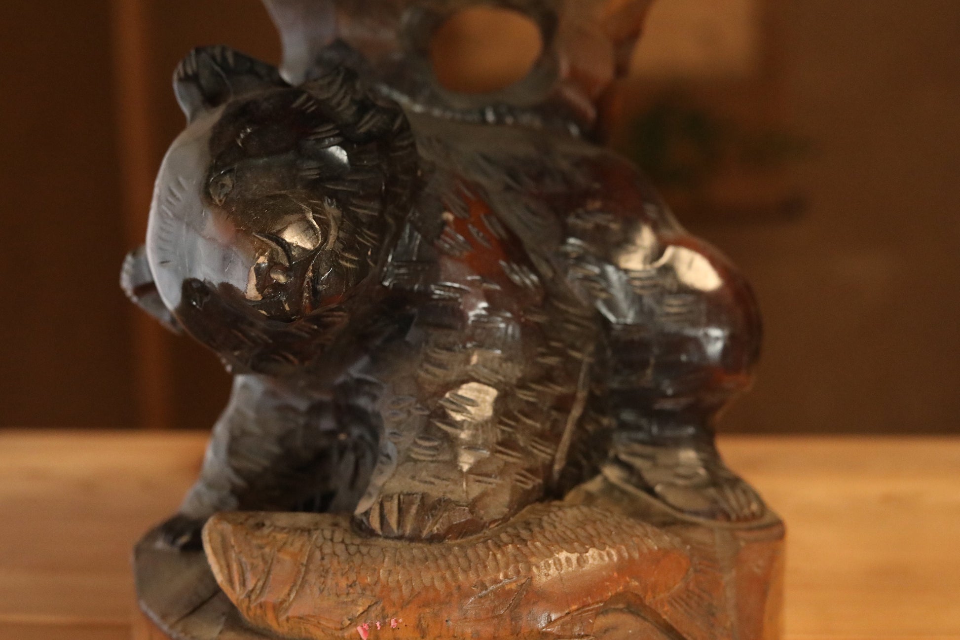 Large! Japanese vintage wooden little bear sculpture, hand carving sculpture ,hand carved craft bear pedestal 1960s H12.2×W8.7xD9.8in