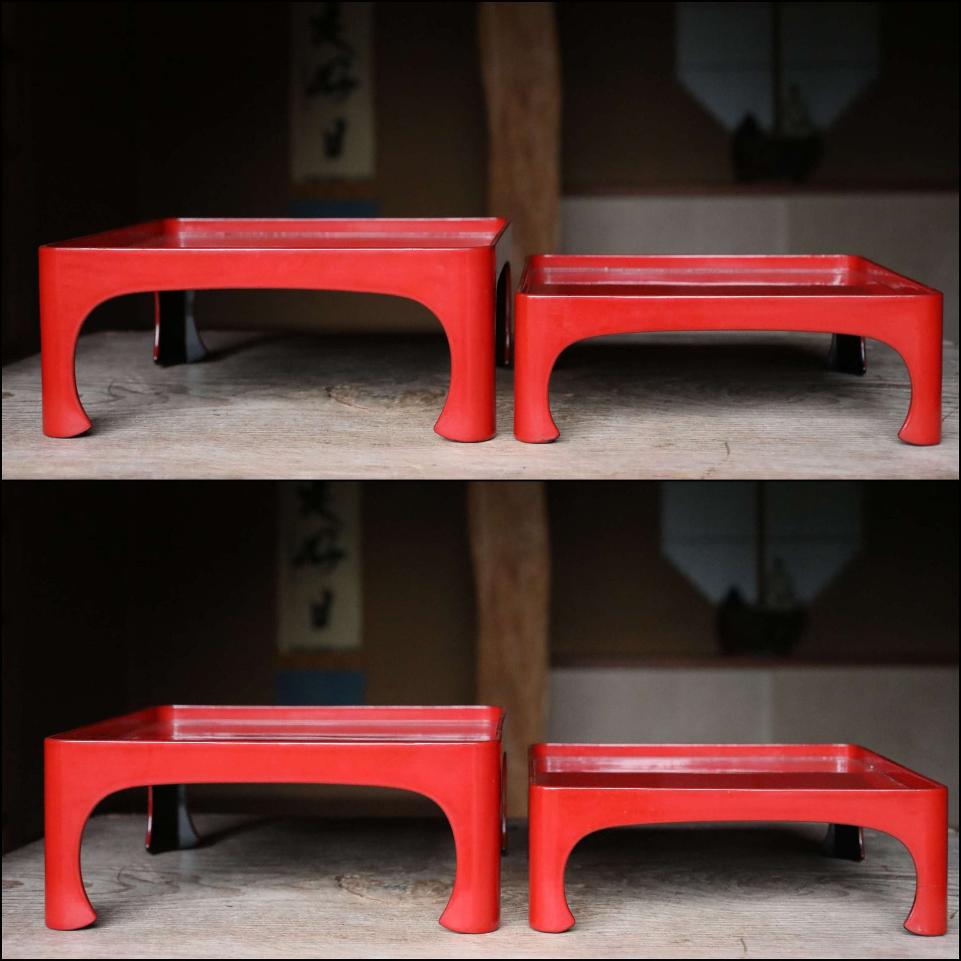 Pair of Japanese antique Urushi Red Lacquer wood tray with legs Large-Medium Set, Serving tray Ozen/Obon/ Japanese furniture 12.4in/31.5cm