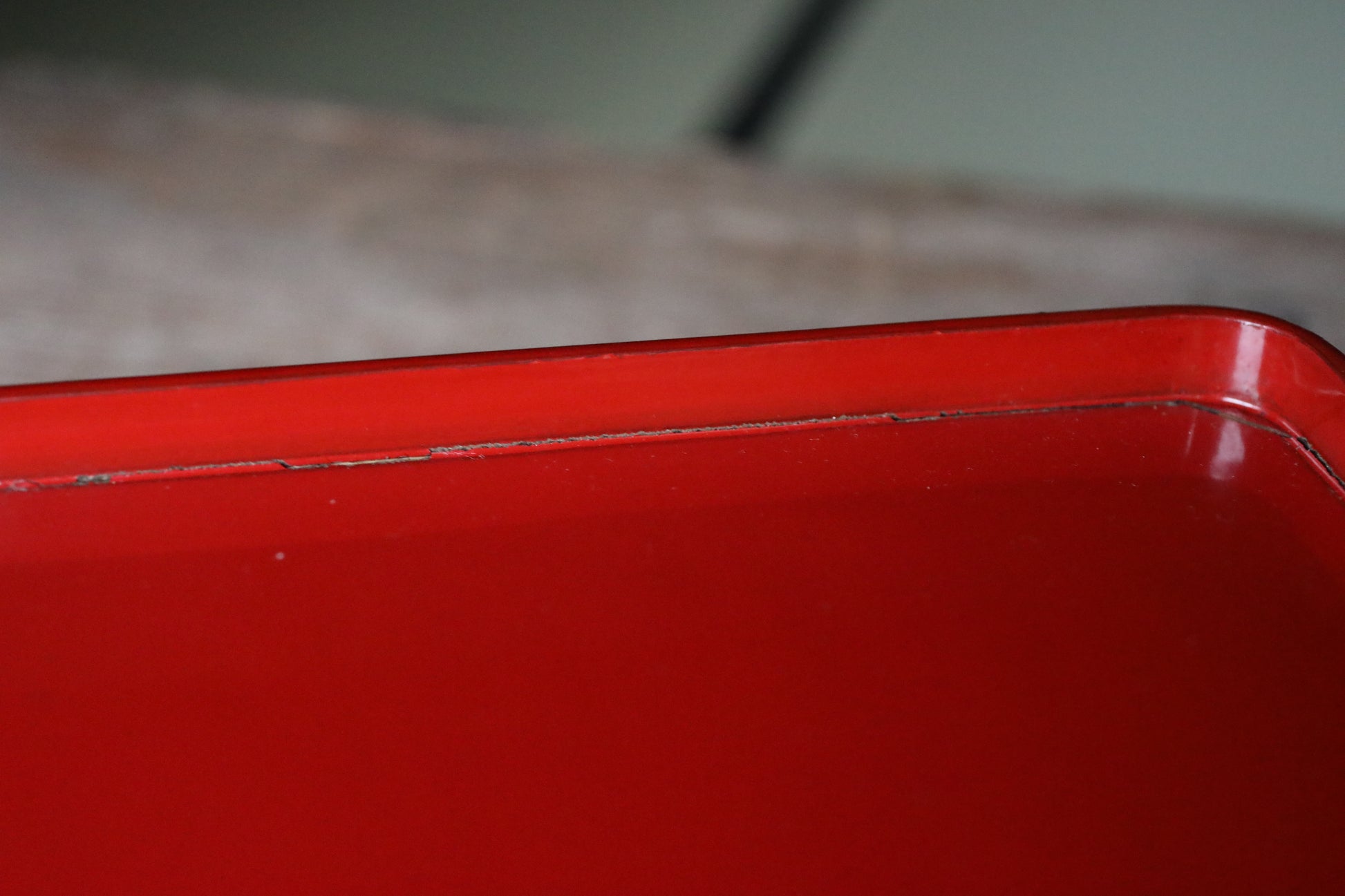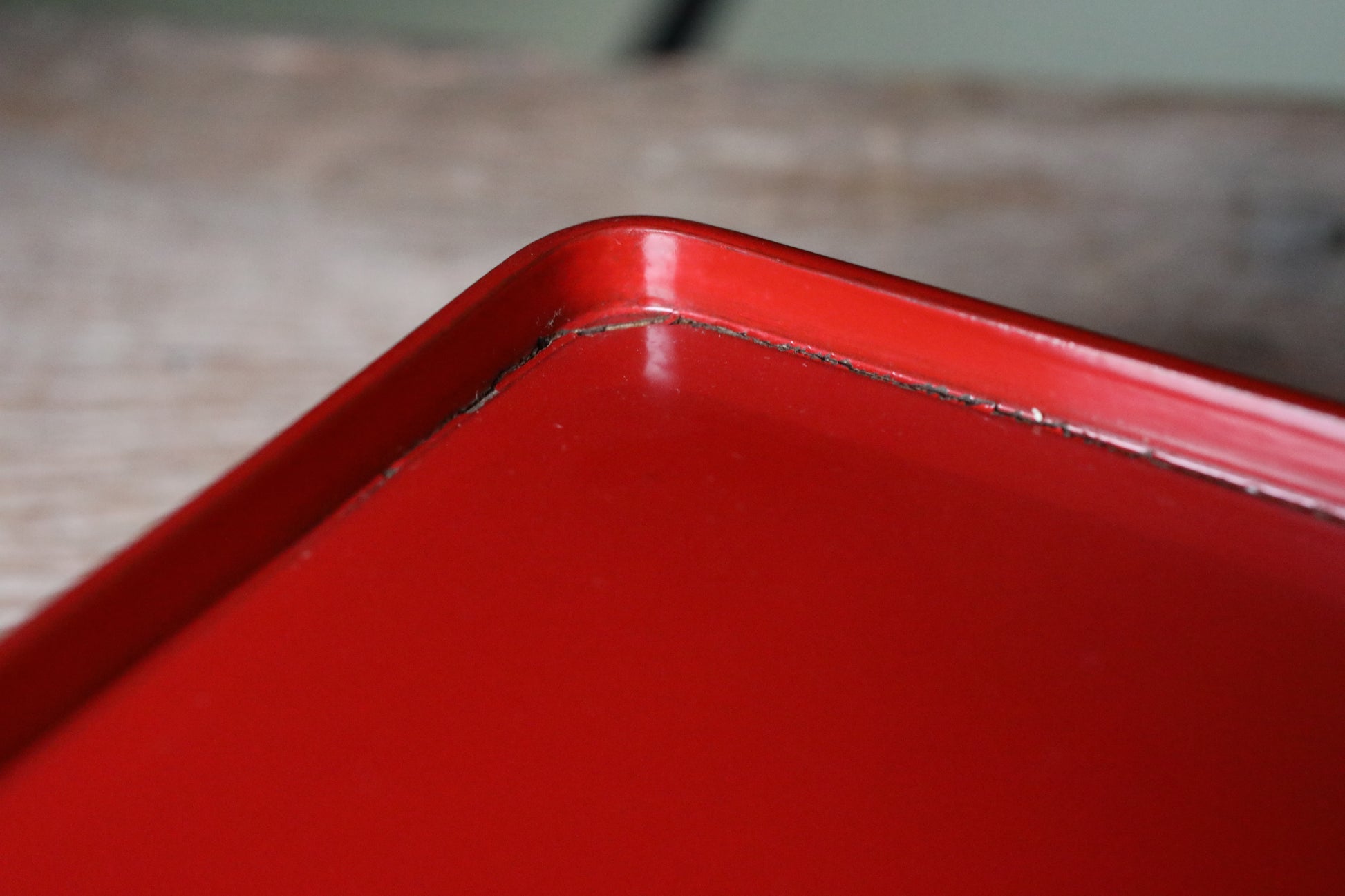 As shown in the photo, there is a crack in the lacquer at the corner, but it is not a critical damage that will cause the tray to break immediately.