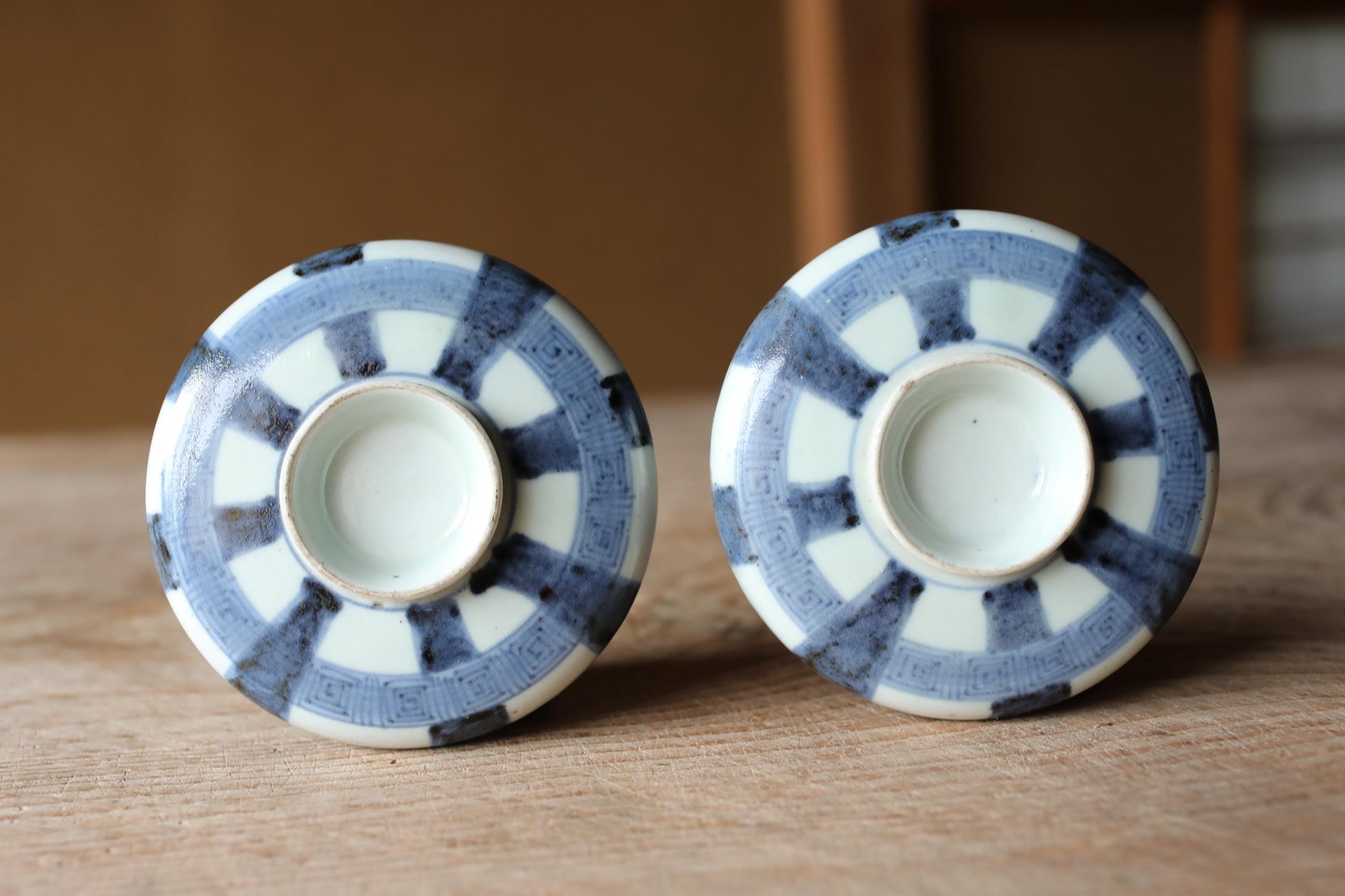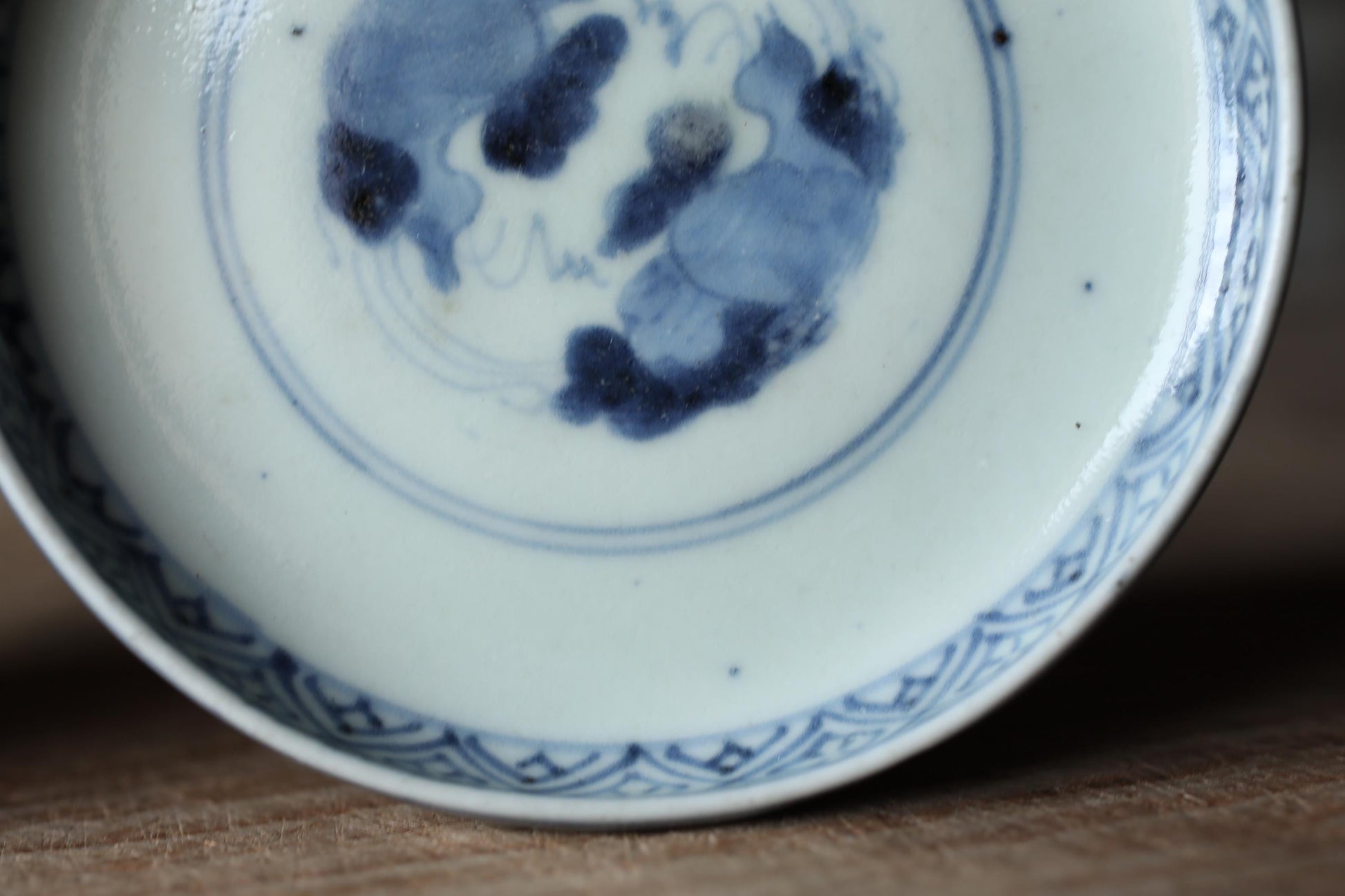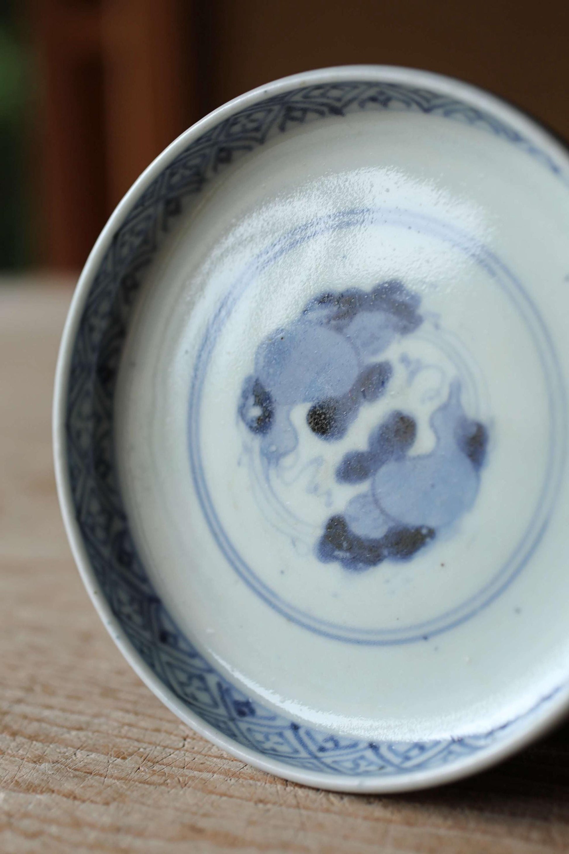 The beautiful pale blue and white colors unique to old items are elegant and beautiful. The rim is decorated with a continuous pattern, and the back is carefully painted with a checkered pattern.