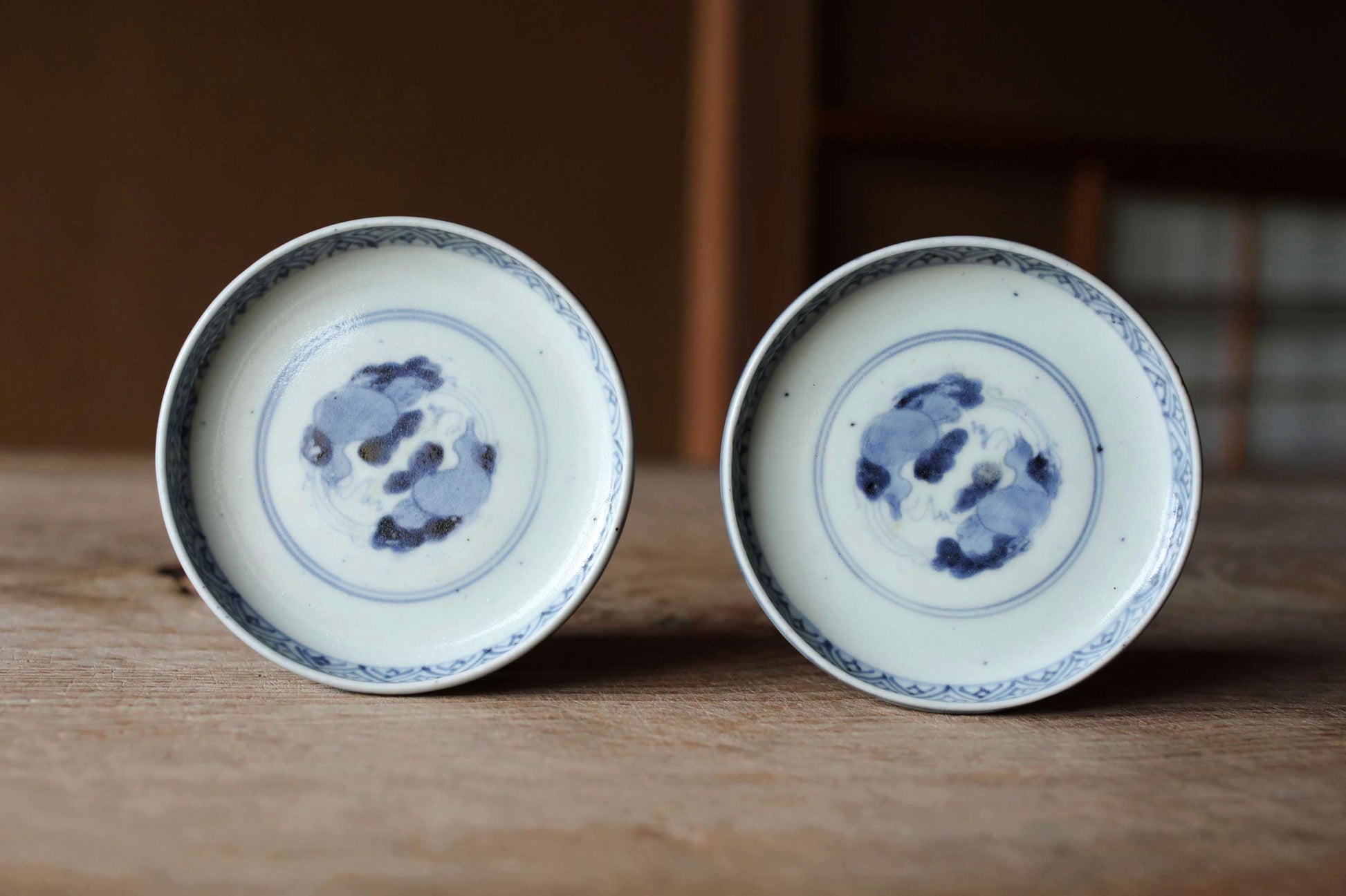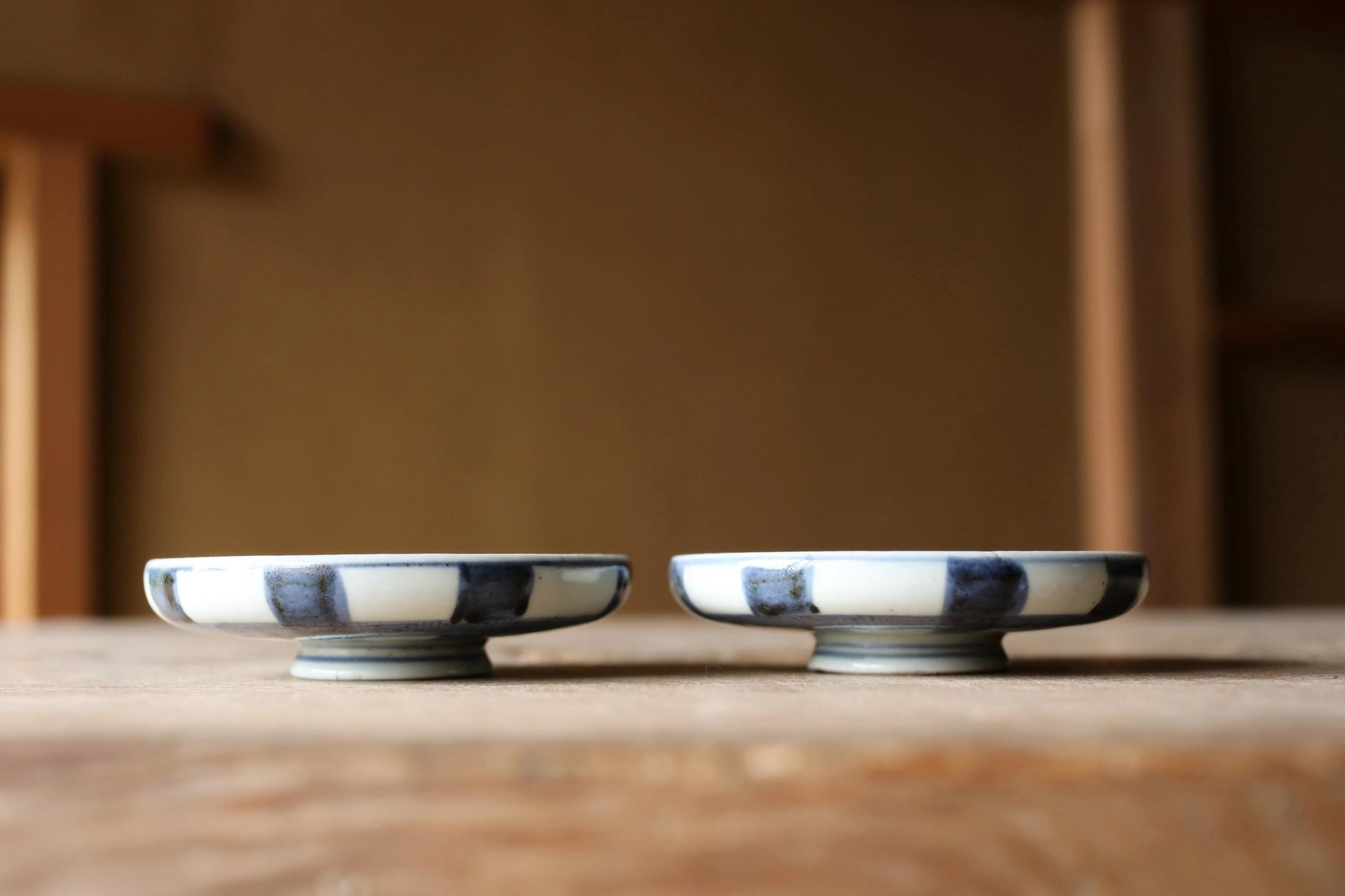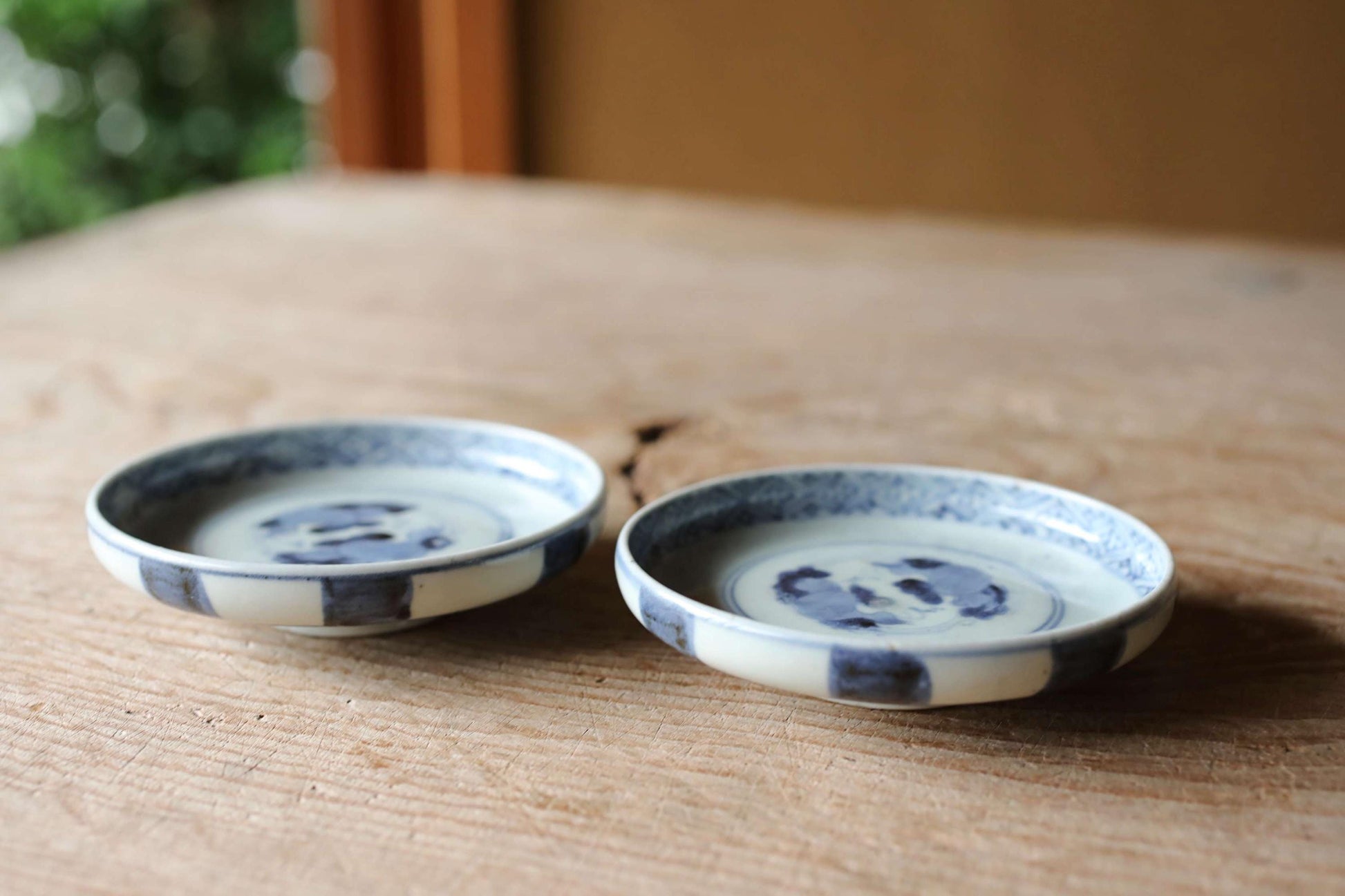 Pair of plates Japanese antiques EDO 1880s porcelain hand paint dish Indigo Blue White landscape pattern KOIMARI W4.1in/H10.4cm
