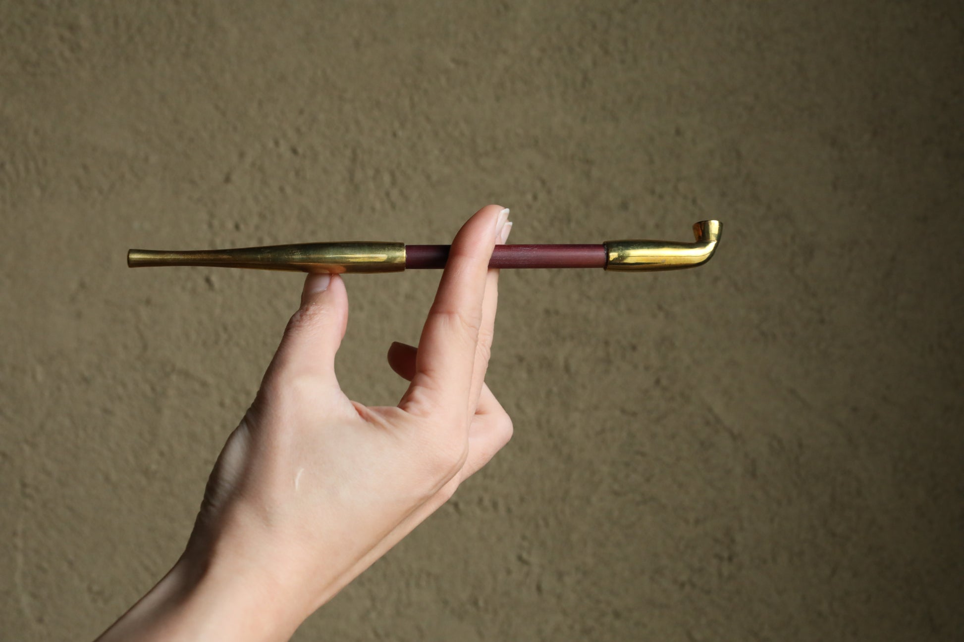 In Japan, the part where the tobacco is packed is called the 雁首GAN-KUBI(goose neck). It comes with a wooden box, making it a great gift idea. It is delicately made of bamboo and brass.