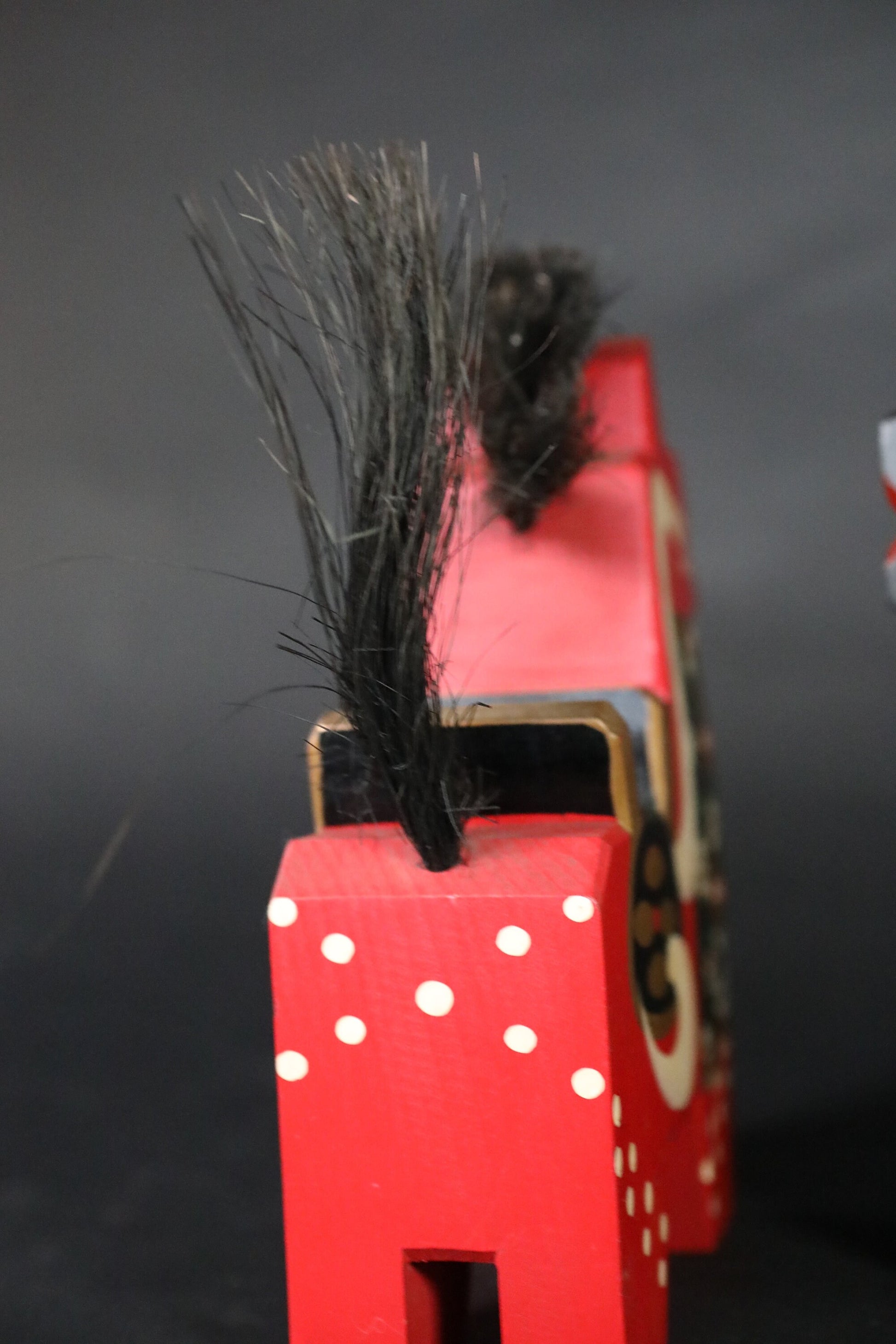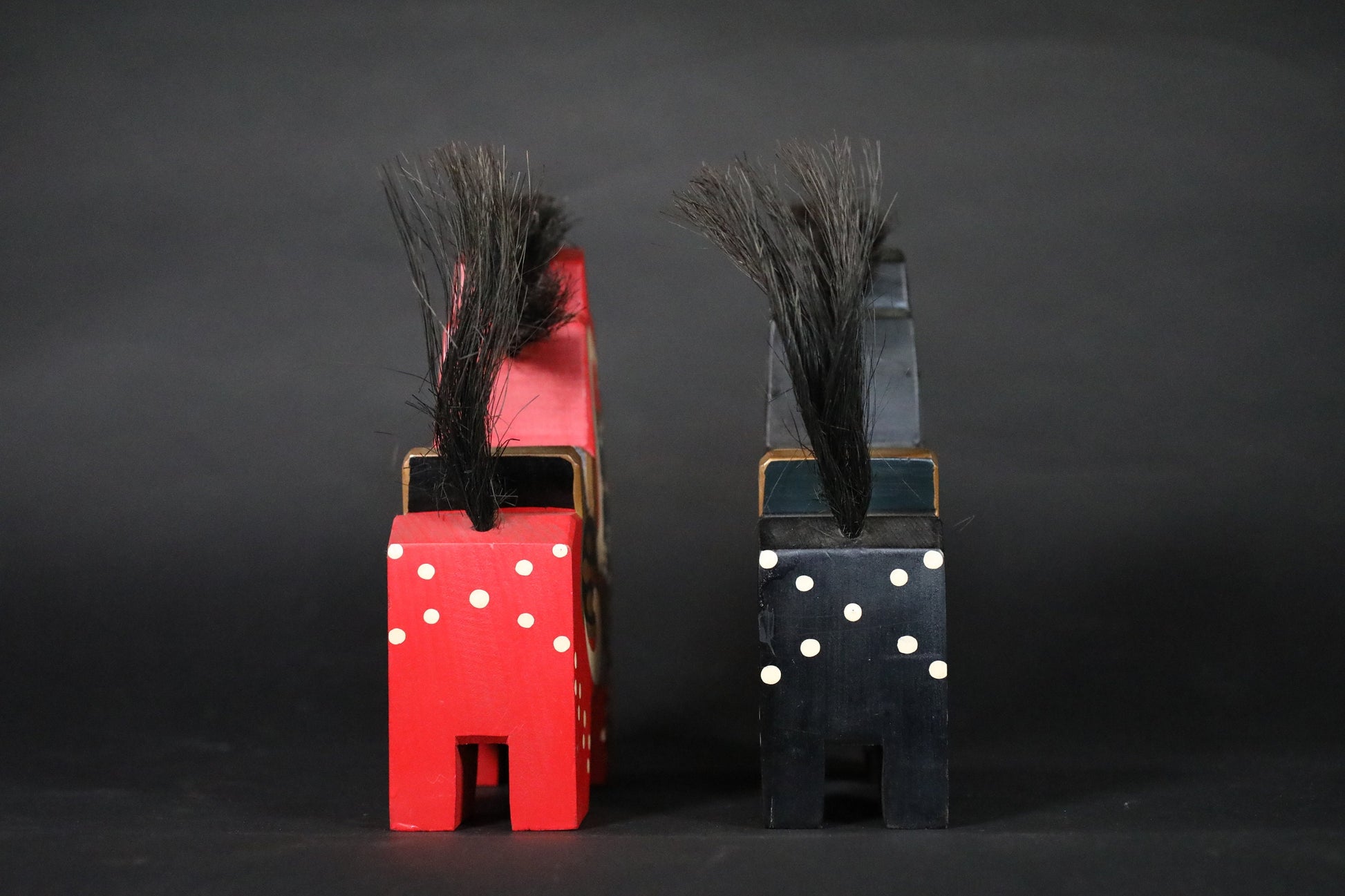 RAGE! Pair of Traditional Japanese vintage wooden Horses dolls toy wood craft For GIFT H8.3in/H21cm