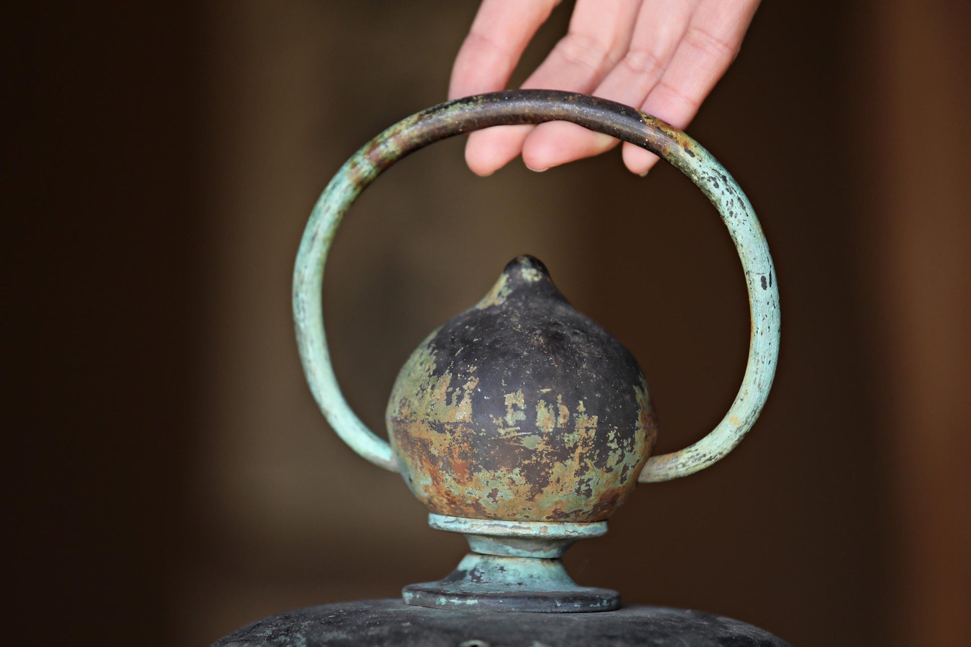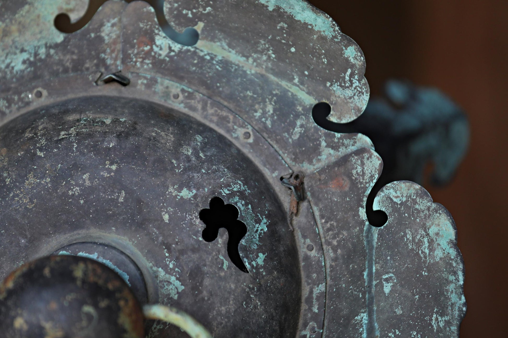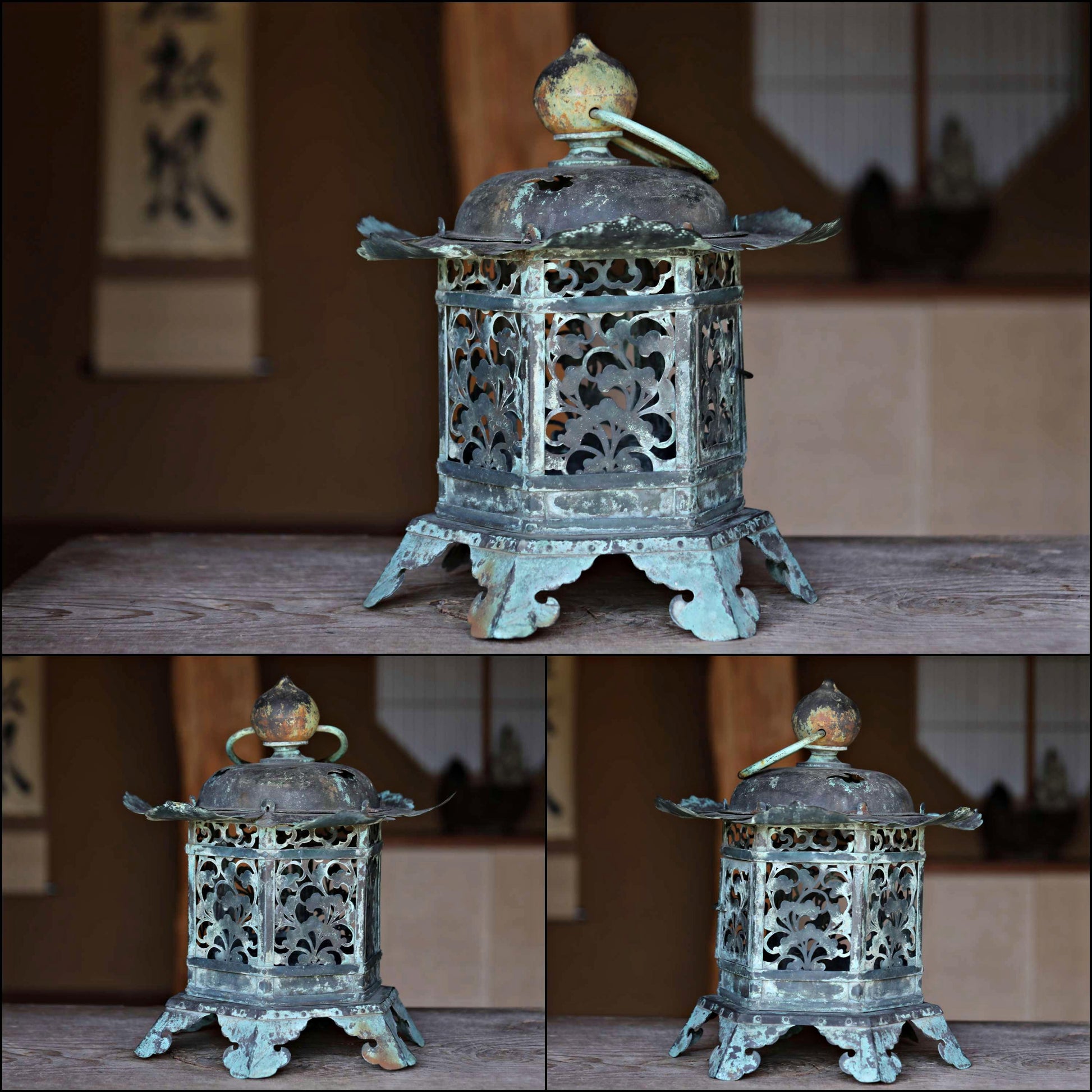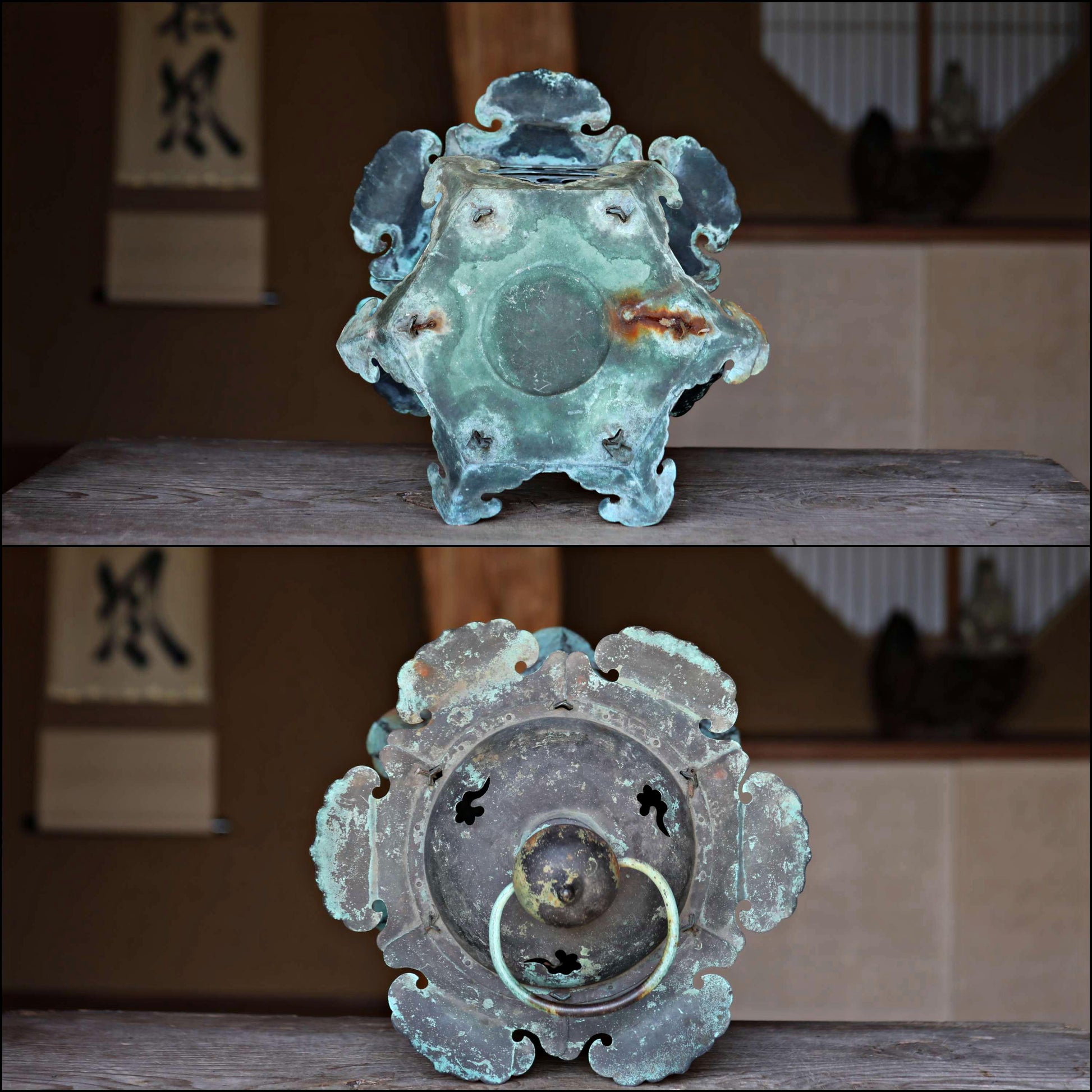 RARE! BIG! Japanese Antique 1800s bronze Lantern Buddhist temple, garden lamp Hanging Lantern Tsuridoro open work H16.1in/H41cm