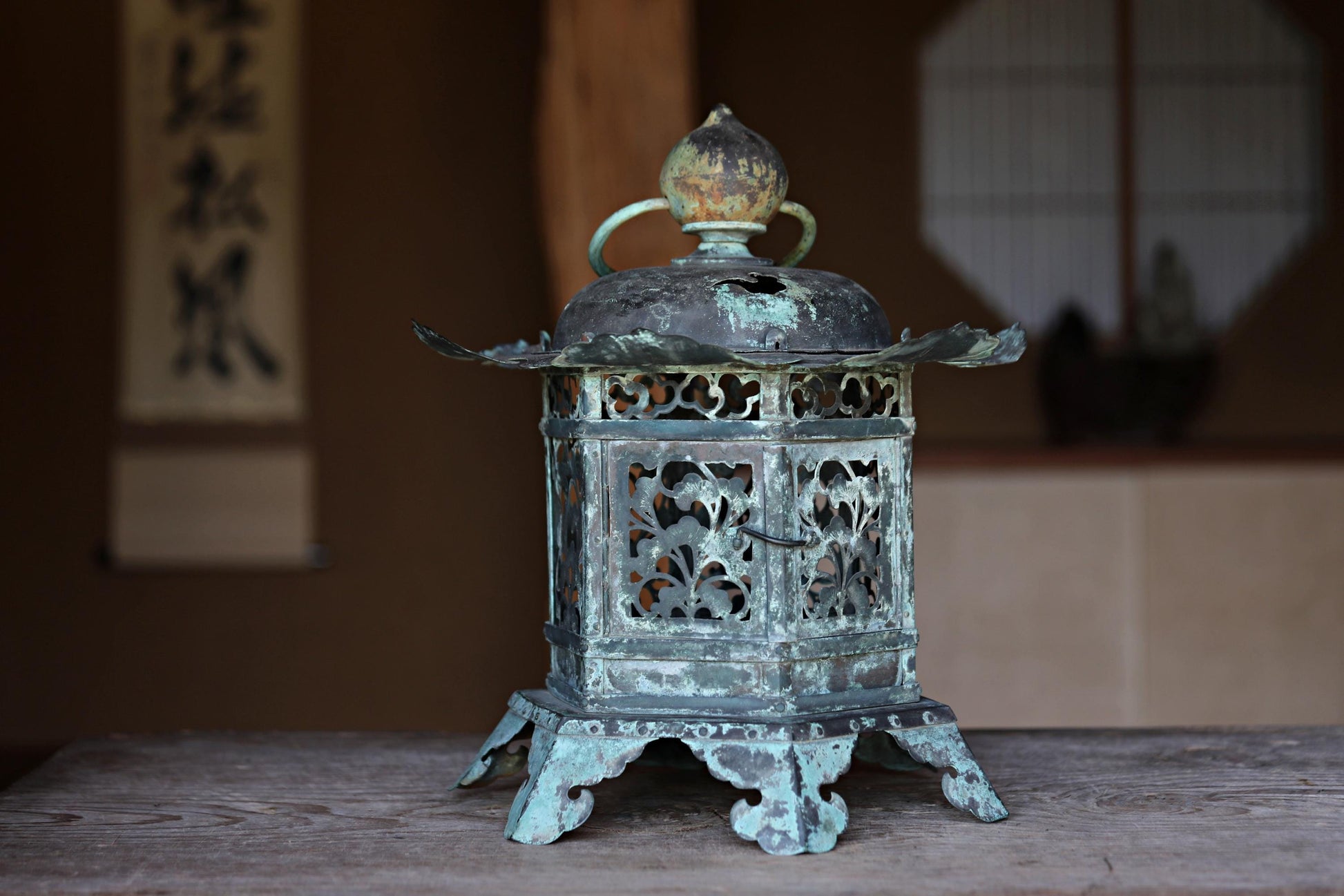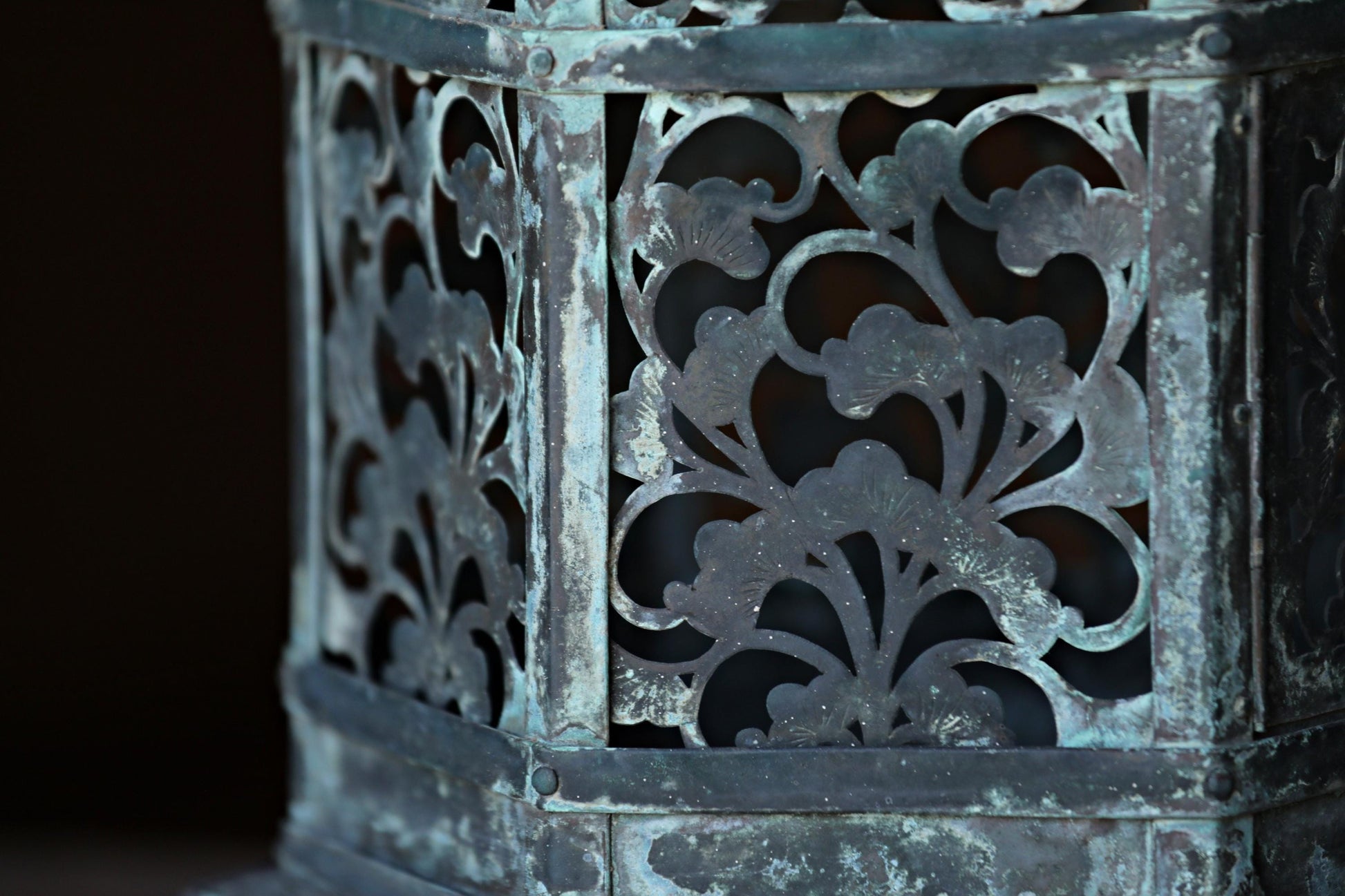 Beautiful lanterns made of copper. This is called a 灯籠TOURO lantern.
