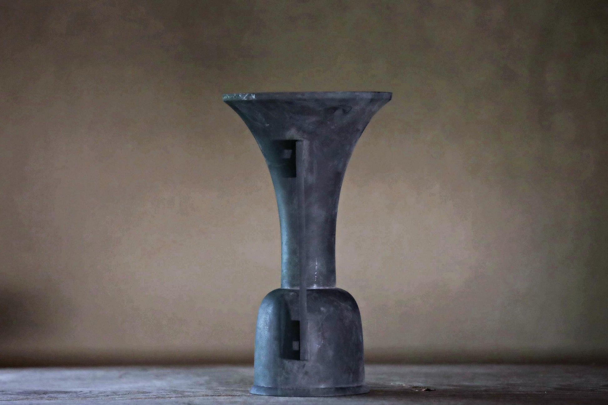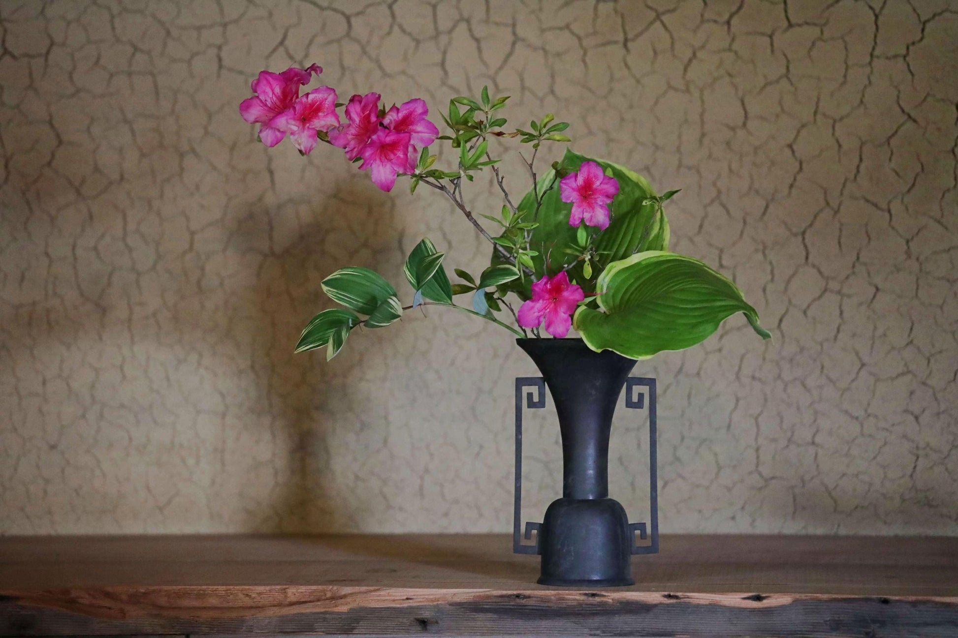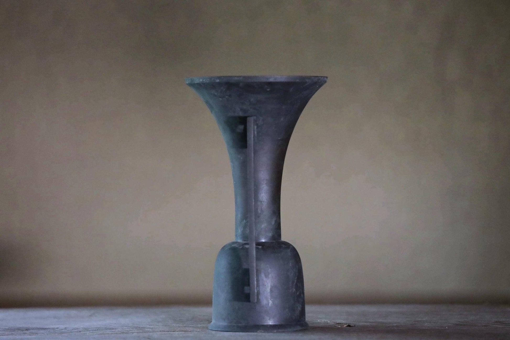 While modern floral arrangements have been designed to mimic this shape, this piece is made of very old bronze, giving it a wonderful atmosphere. Old bronze, which has darkened with age, is called “古銅 KODOU old copper” and is popular in Japan.
