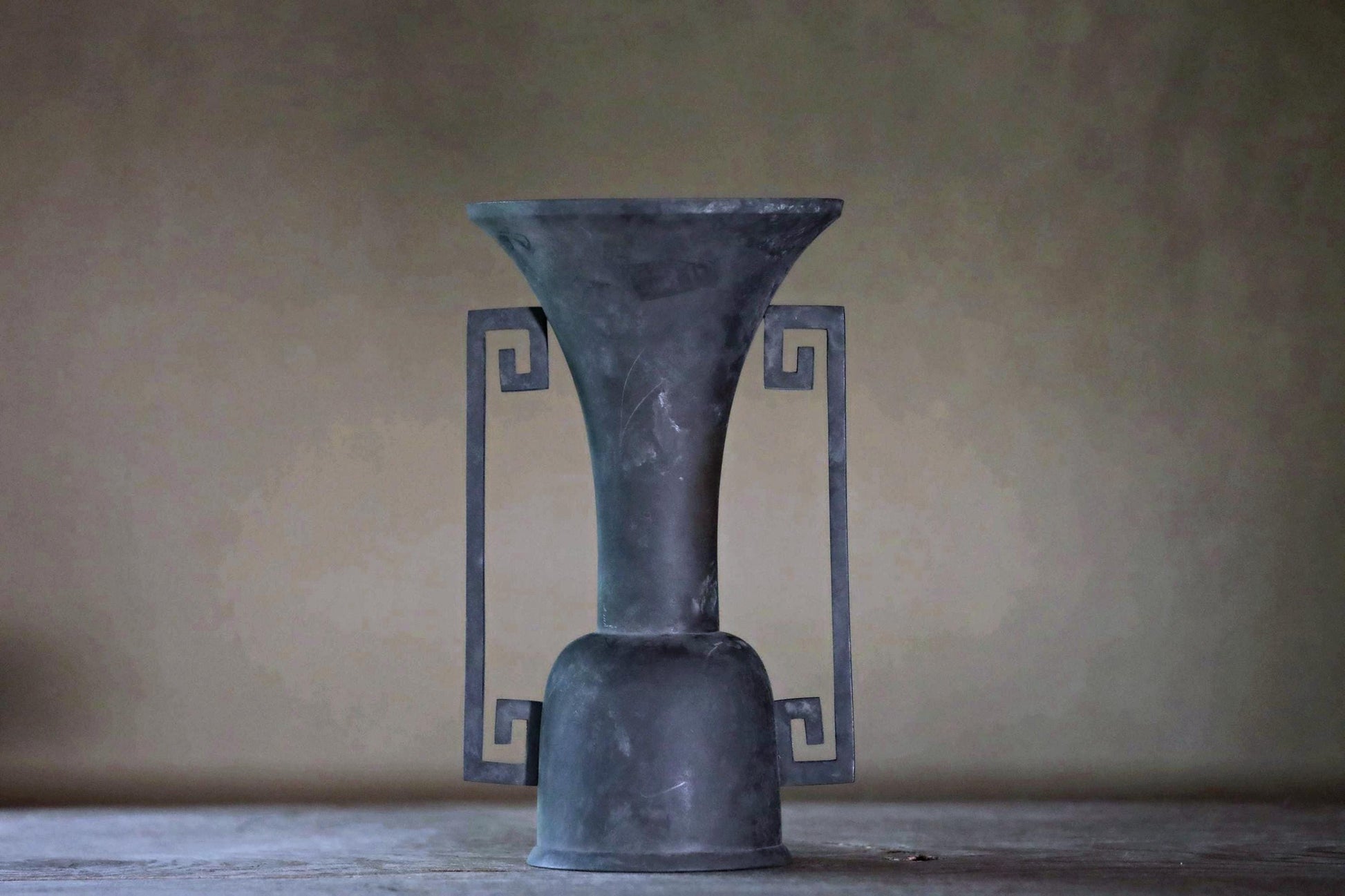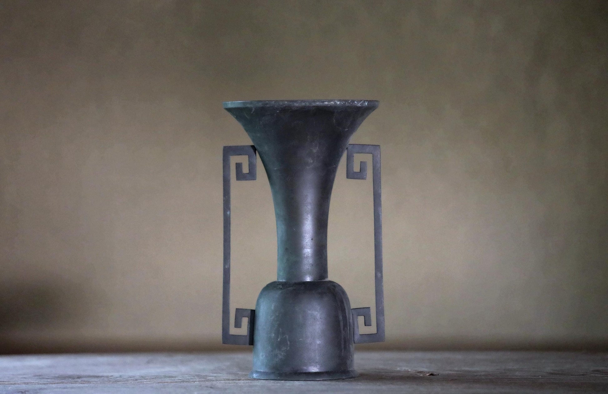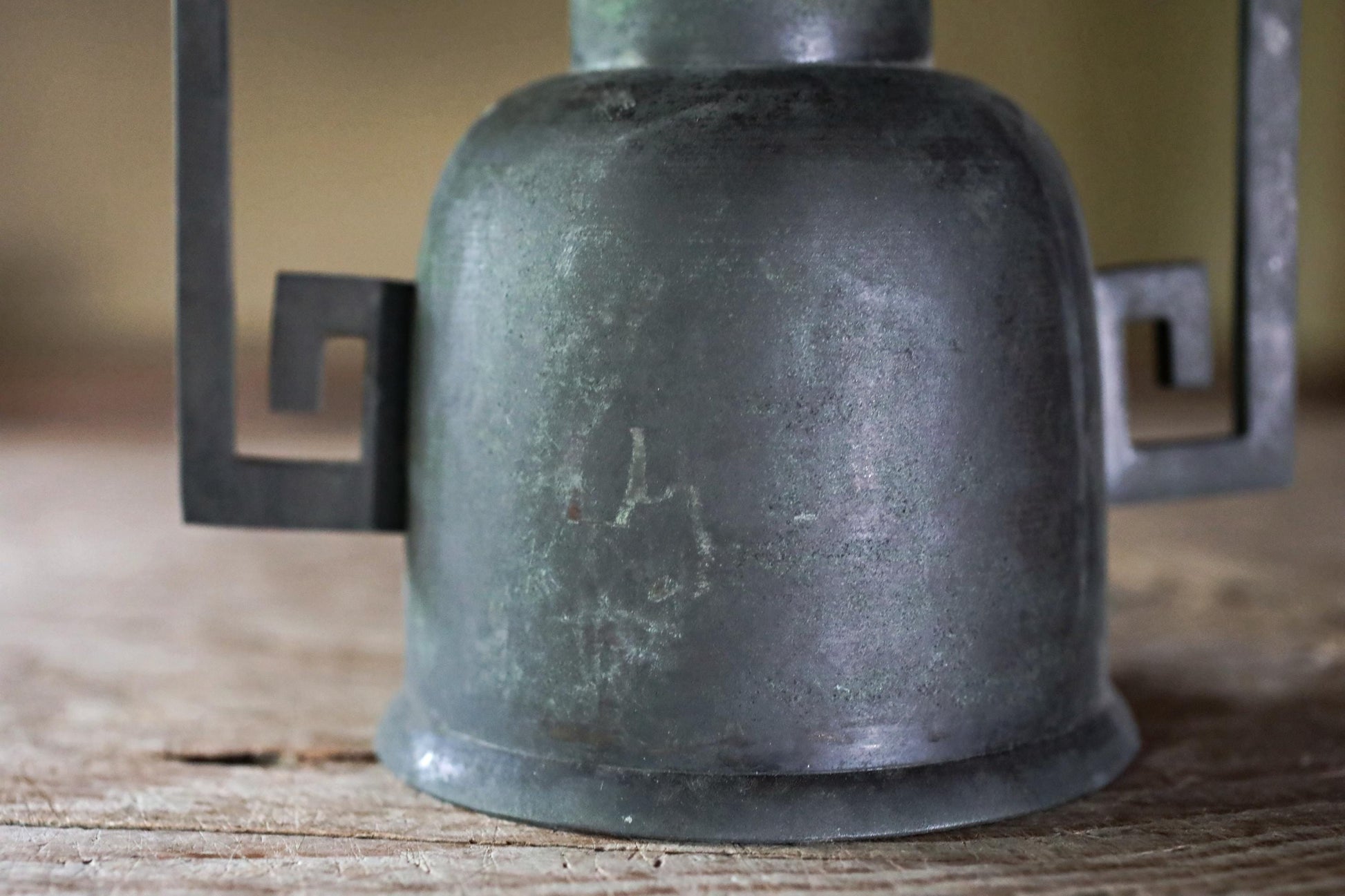 The color change of the bronze creates a cool atmosphere over time. The distinctive square swirl ears are said to have a protective meaning, originating from the thunder family crest.