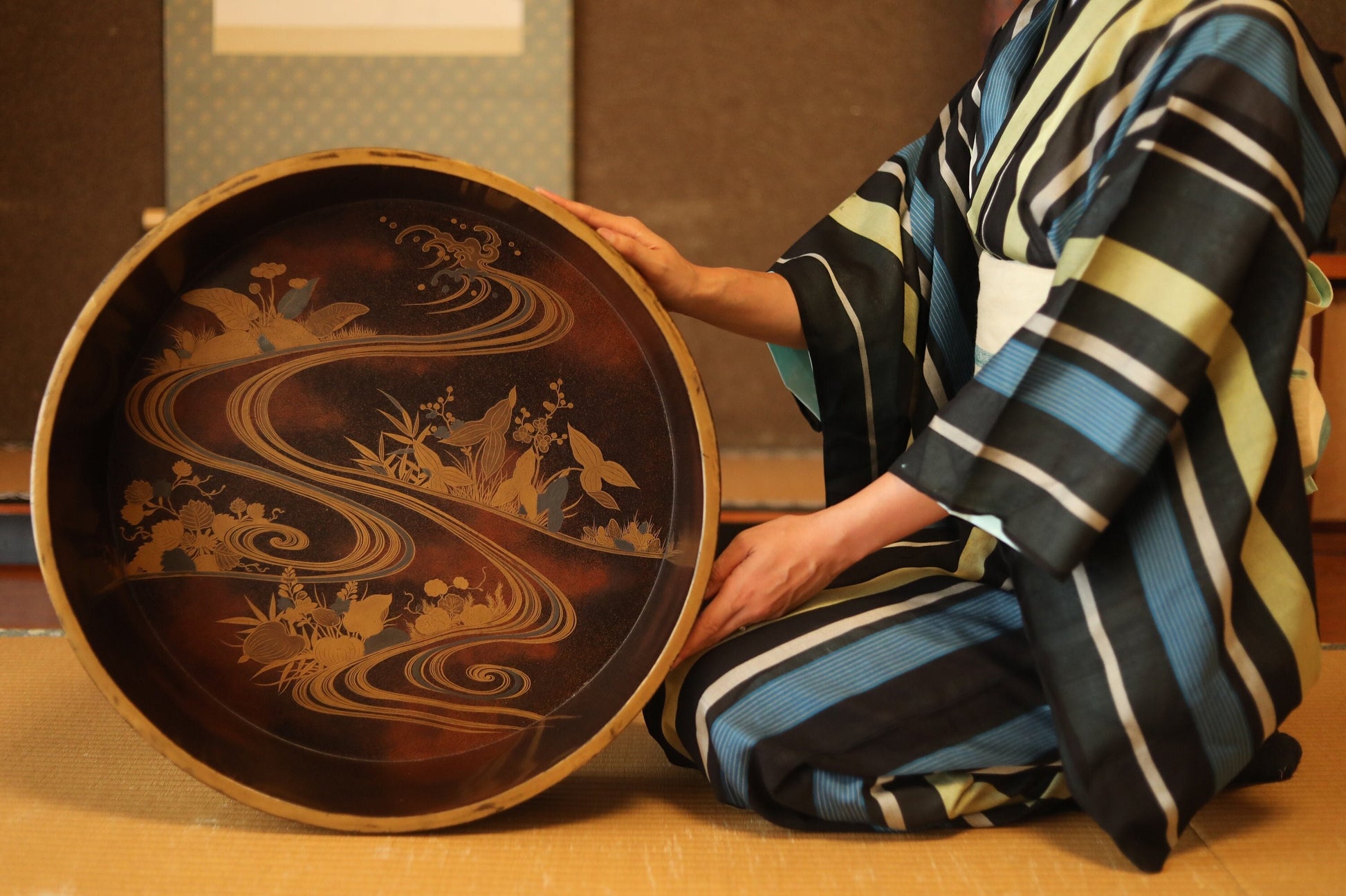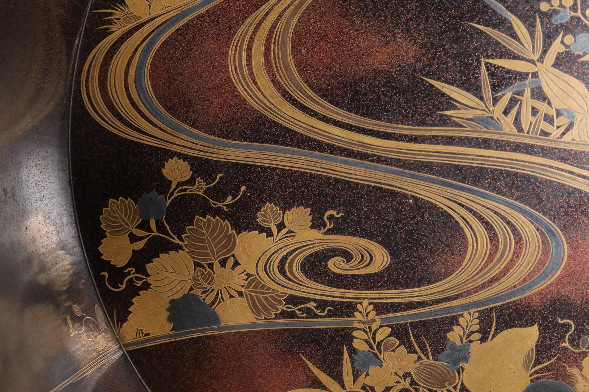 The inside of the large tub is decorated with beautiful maki-e, which is so gorgeous and graceful that it is hard to believe that it was intended for practical use. The quality of the maki-e is museum quality.