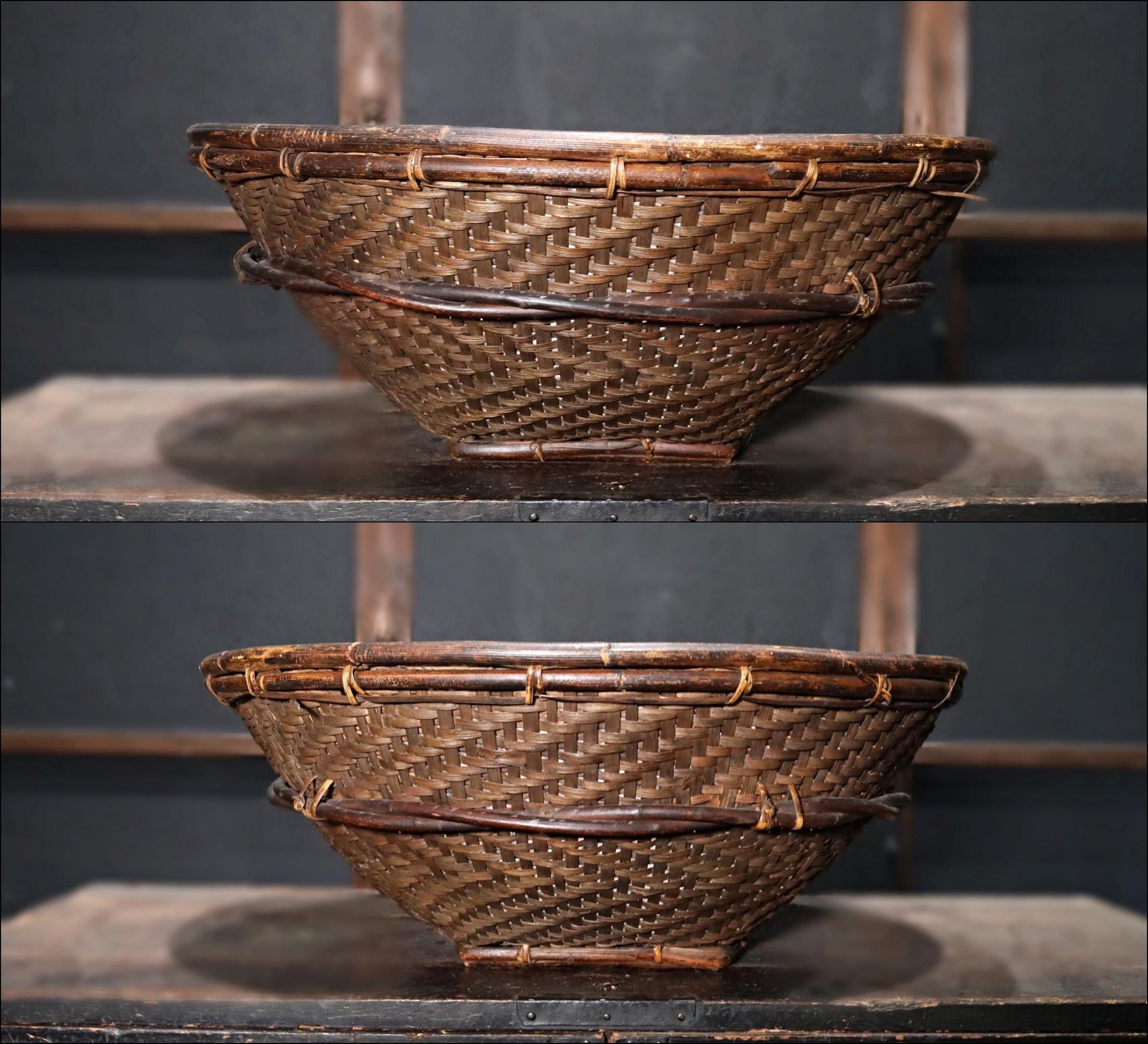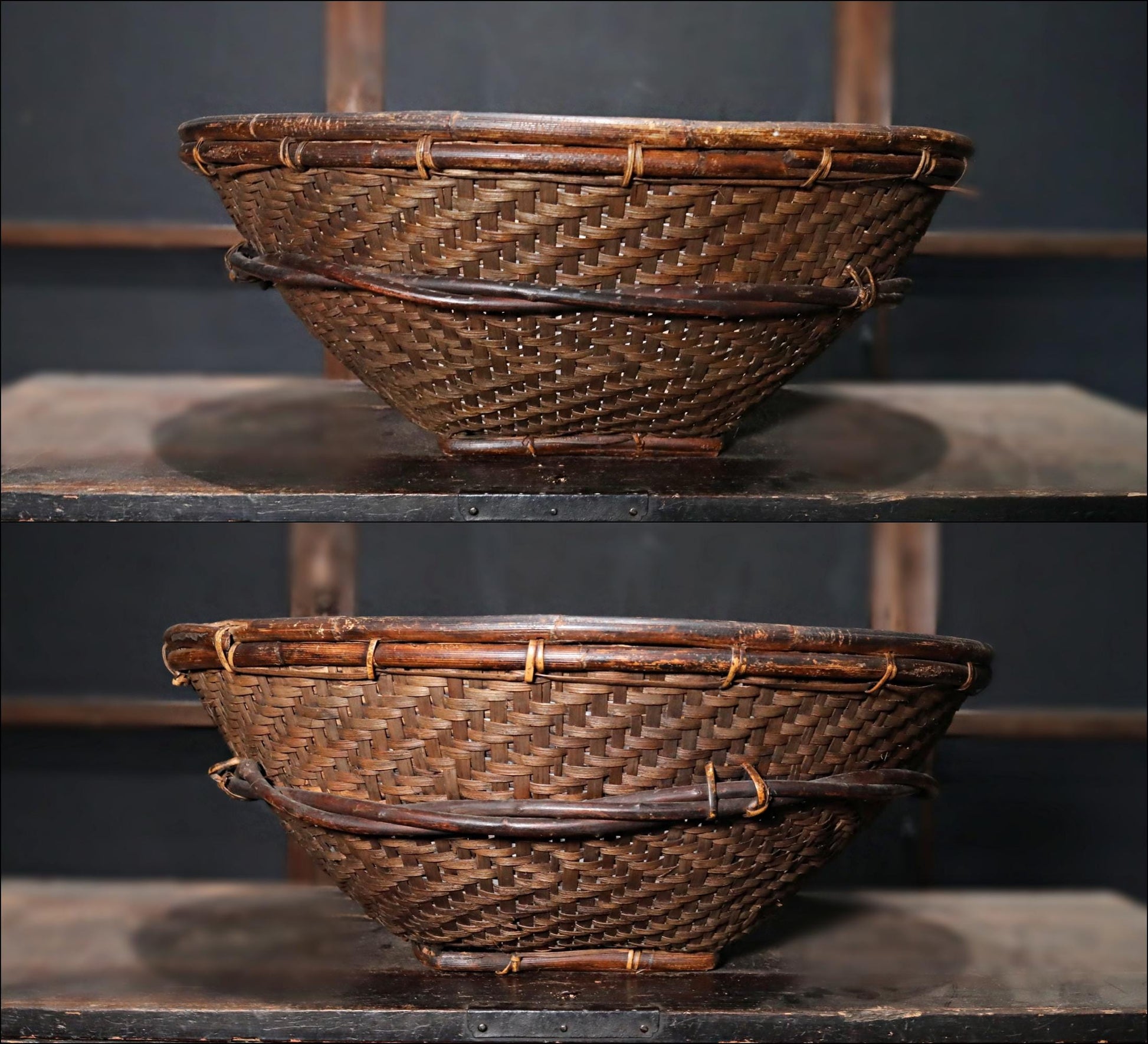In addition, the number of materials and craftsmen are decreasing year by year, so that baskets made of wild grapes are rare and coveted in Japan today. Such large baskets made of wild grapes are rarely made nowadays.