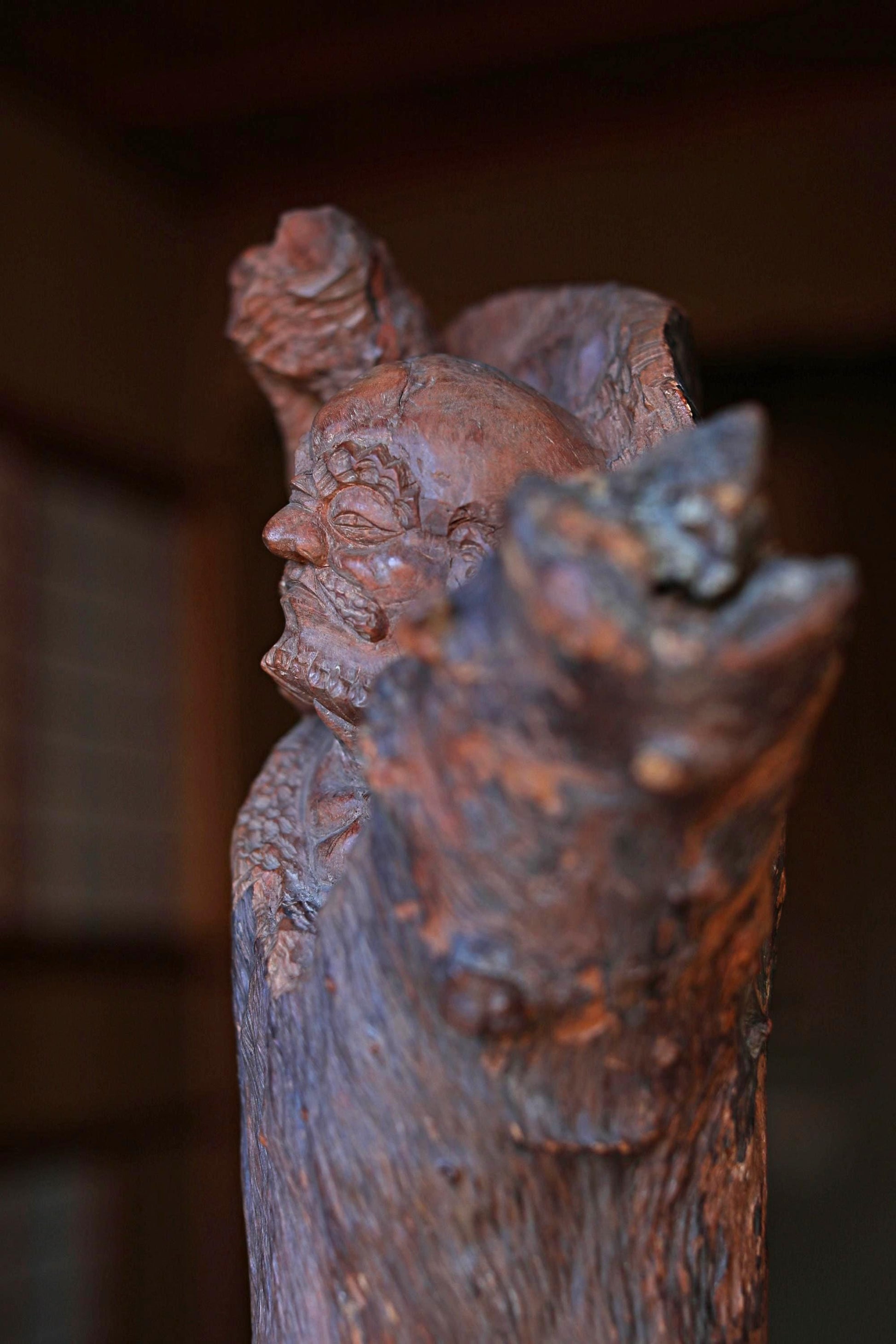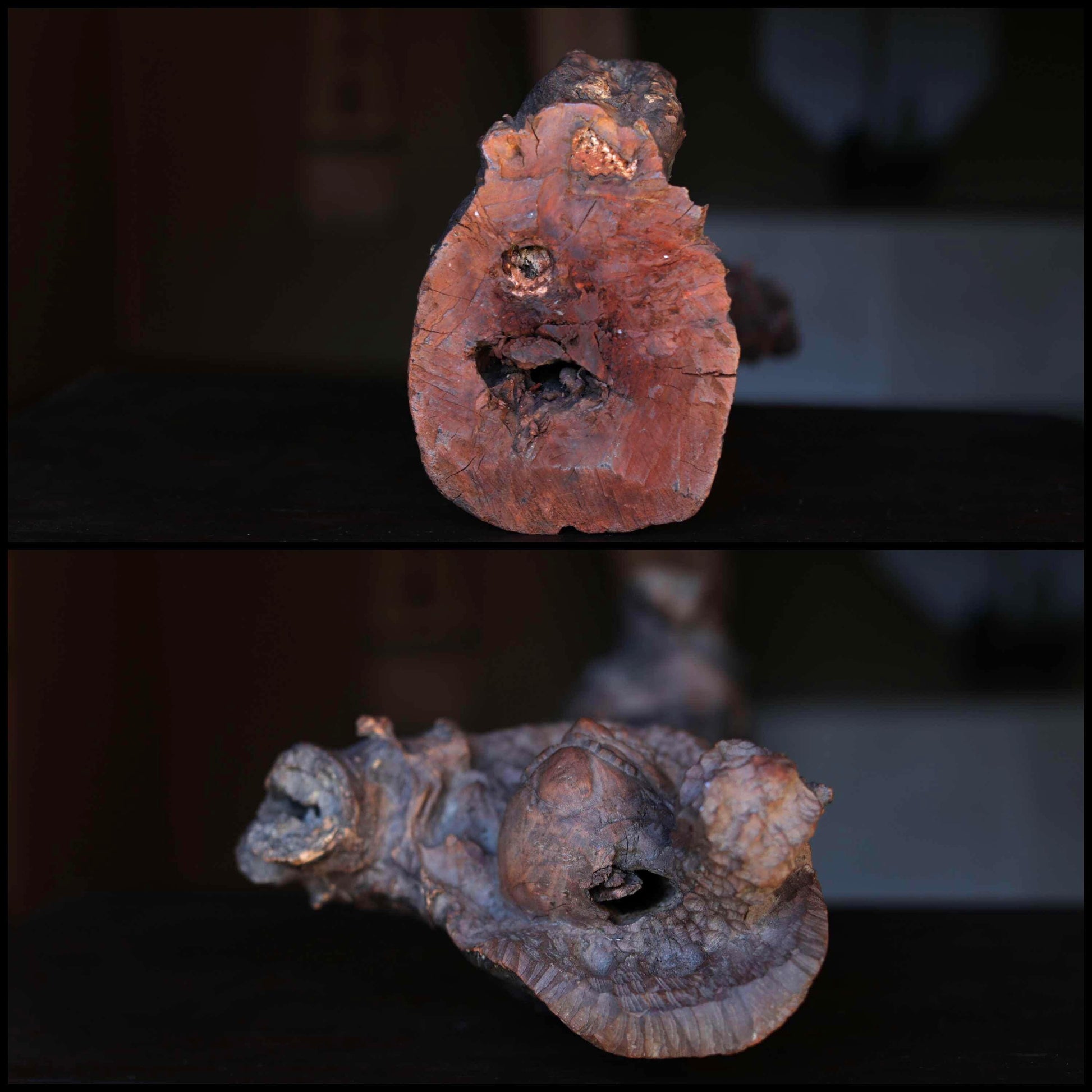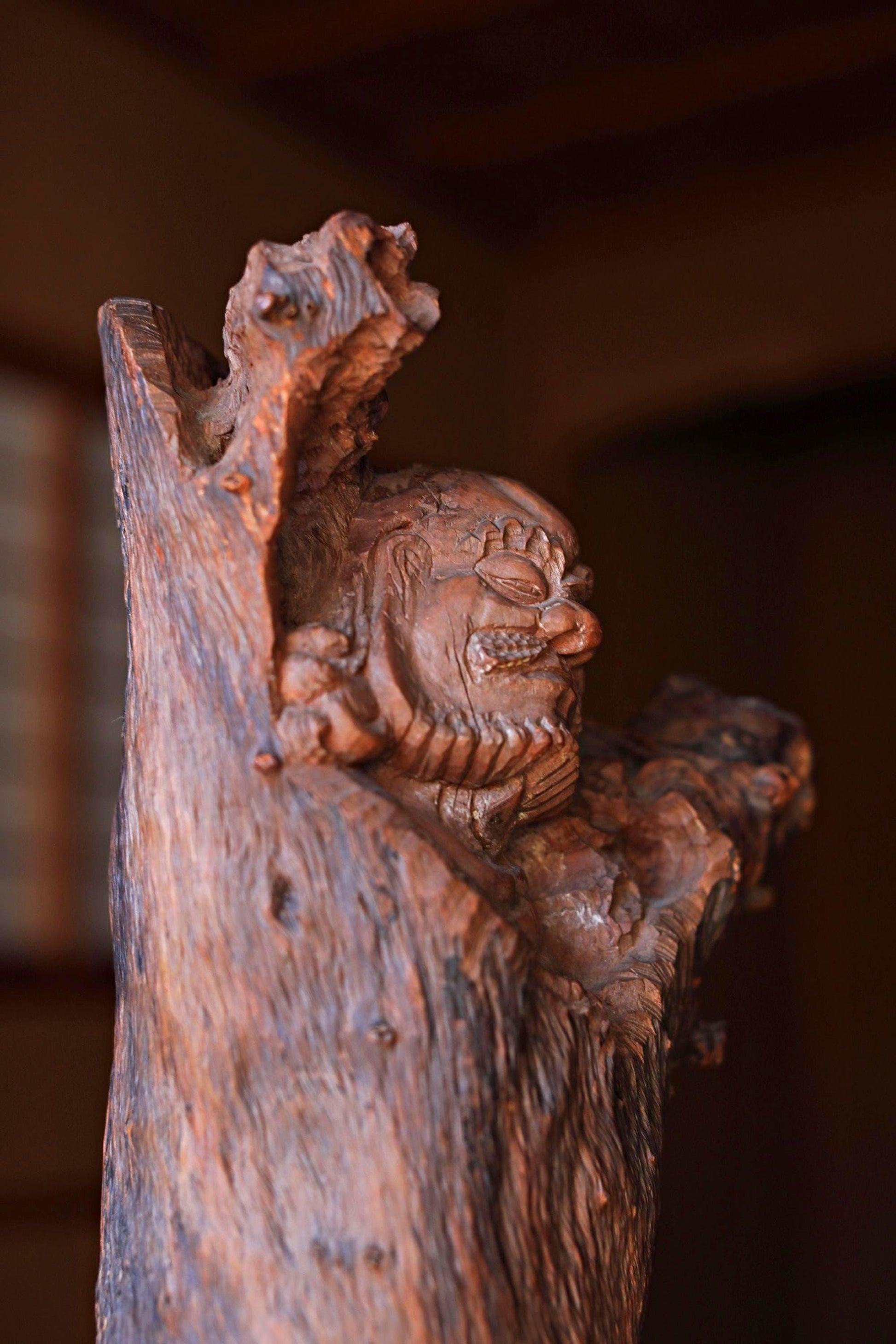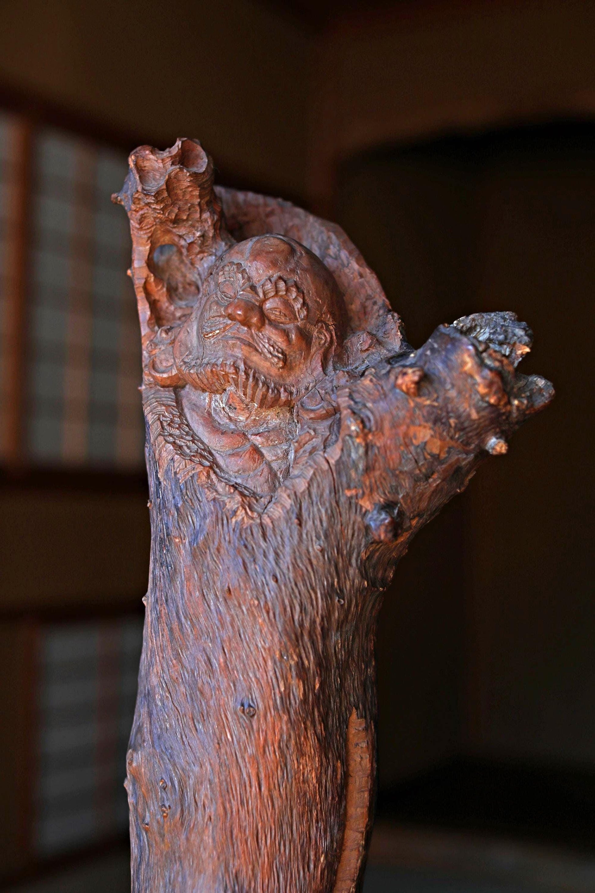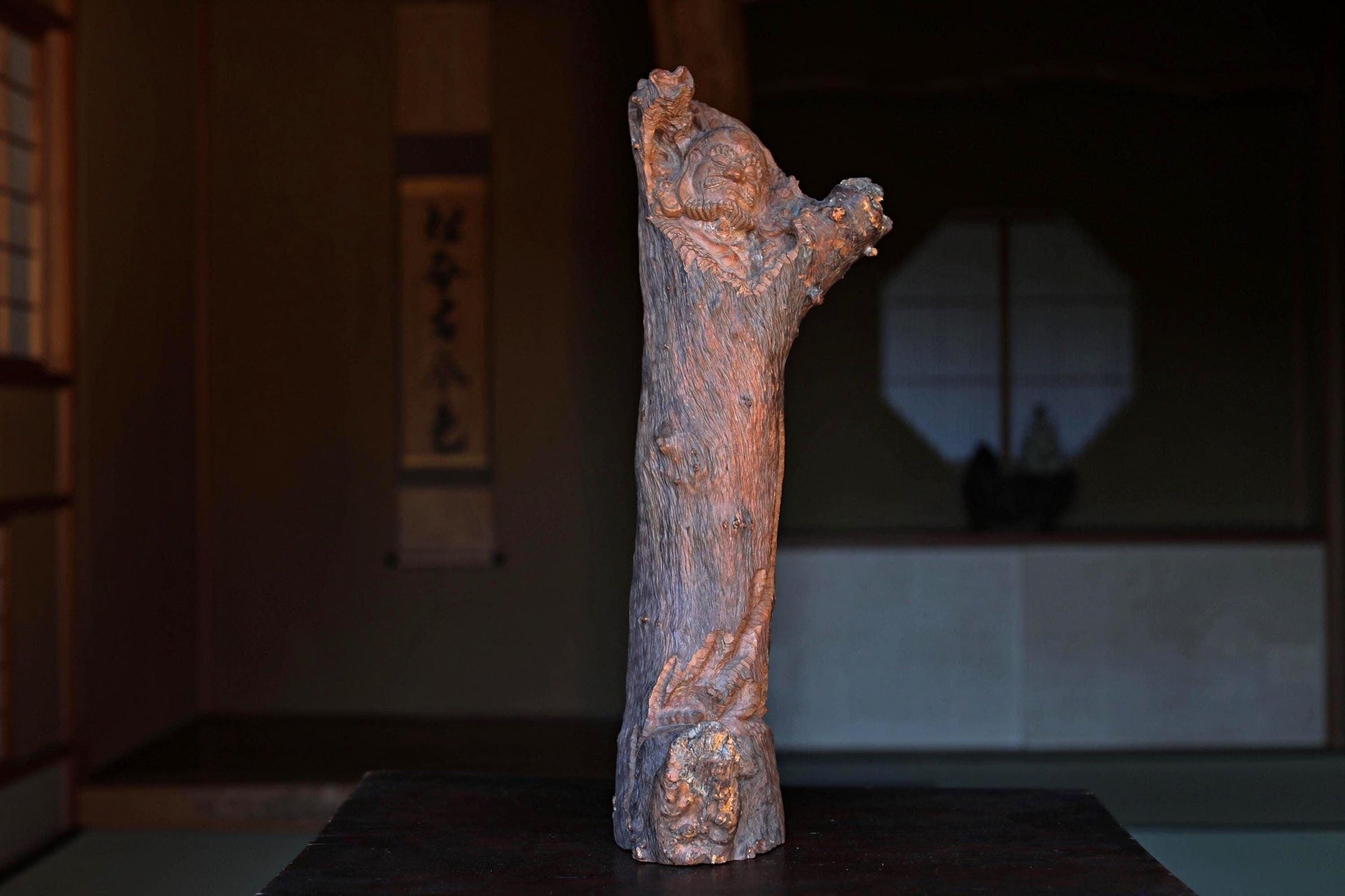 For a moment it looks like a wooden ornament, but upon closer inspection, the face and feet are carved as if the entire piece were a daruma.