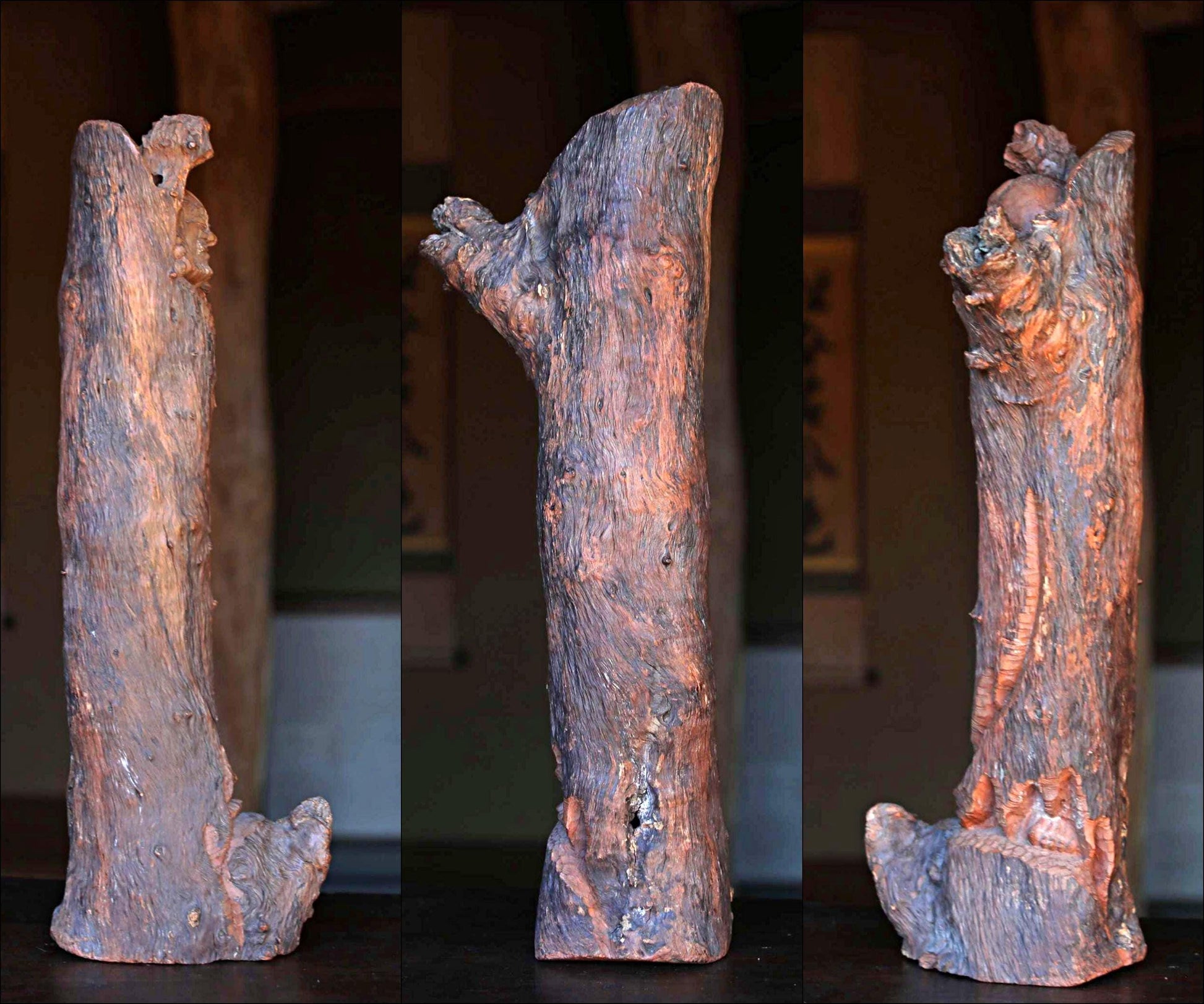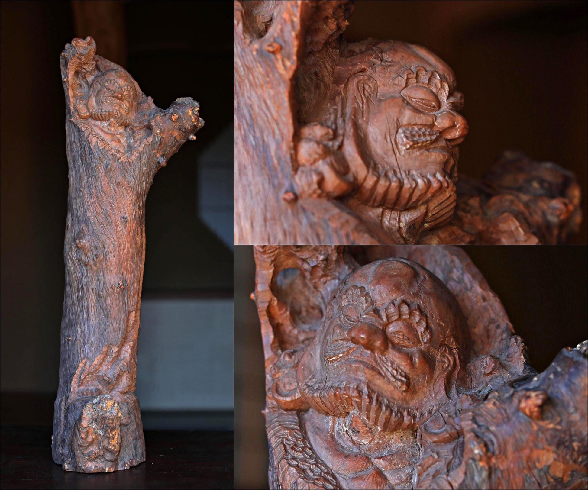 RARE! Large! Japanese vintage DARUMA doll wood slab Burl ornament Sculpture, ZEN master, buddhist monk hand craft art H24in/H61cm