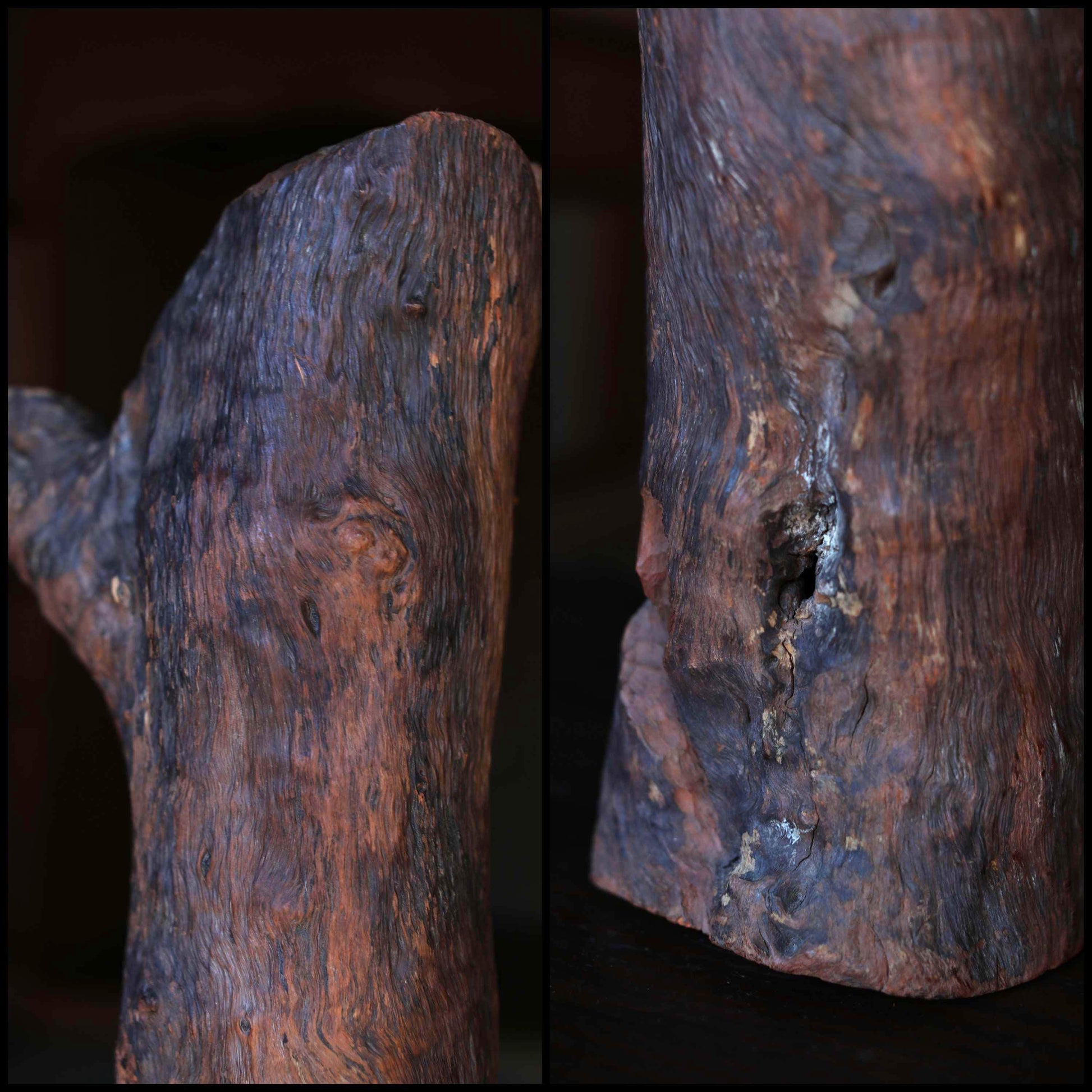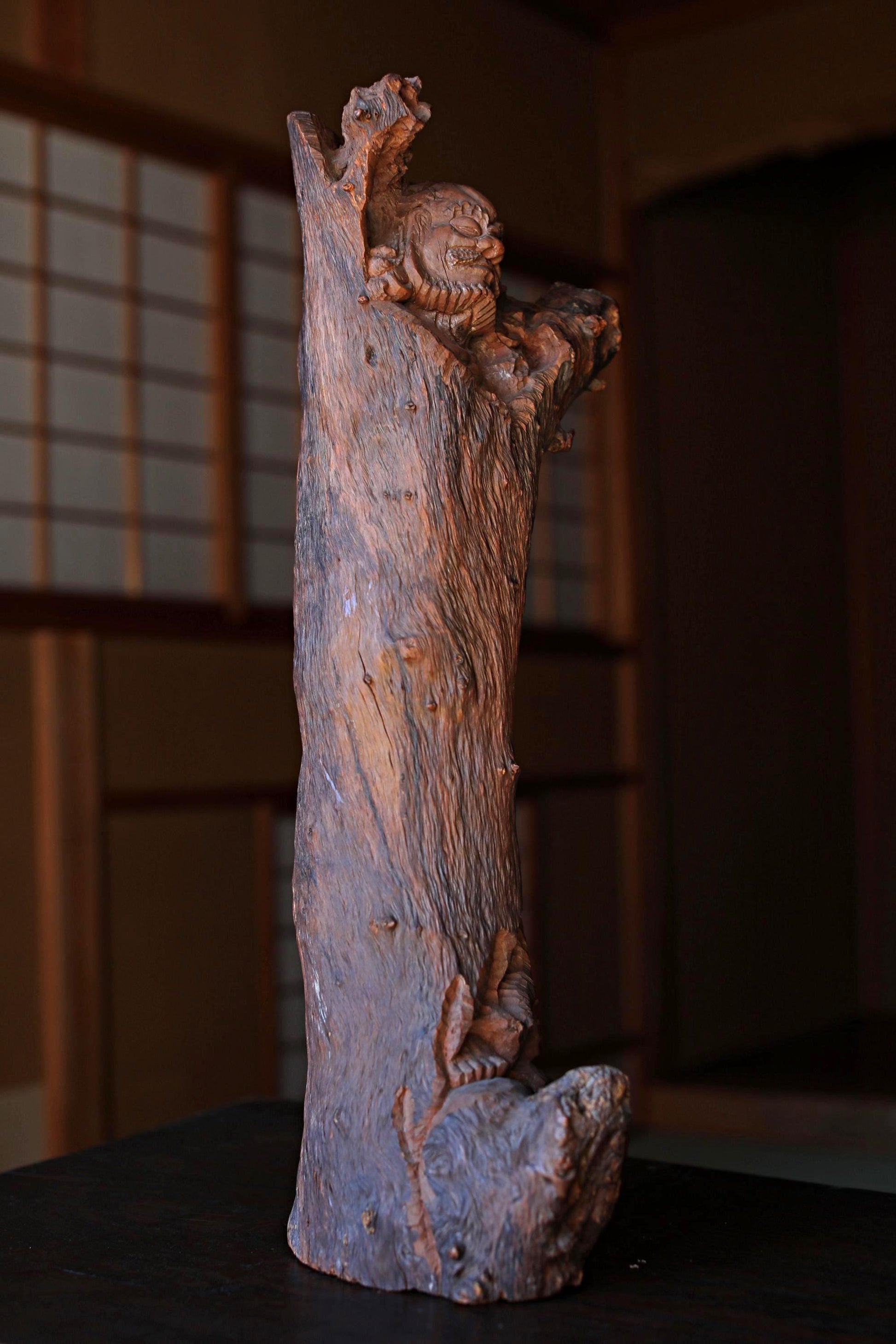 This 達磨 Daruma doll is hand-carved, taking advantage of the natural shape of the wood. The unique texture of the wood is beautiful, as if the skin of the tree has been wrung out.