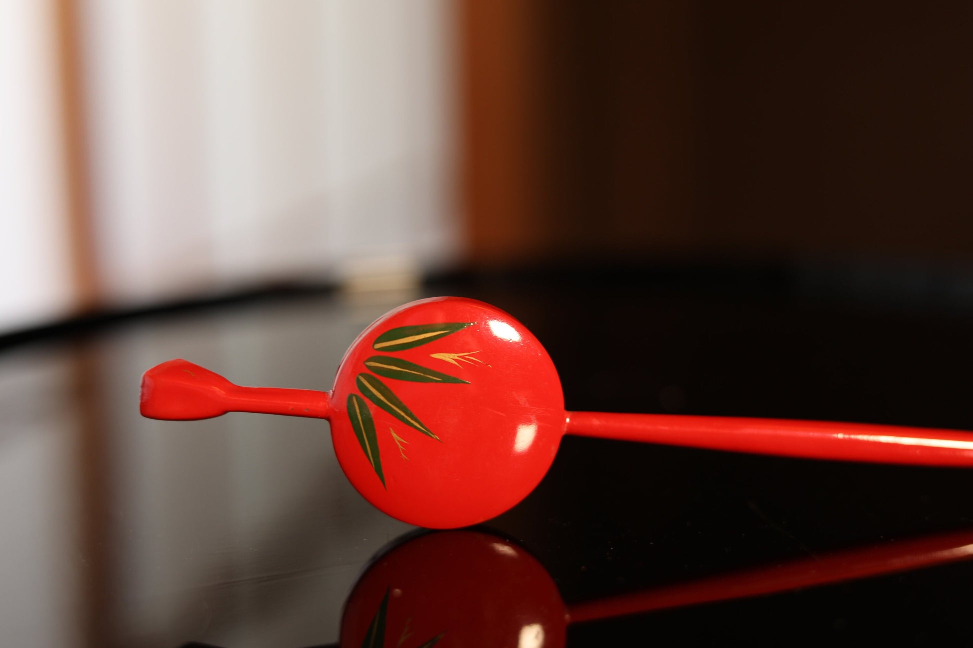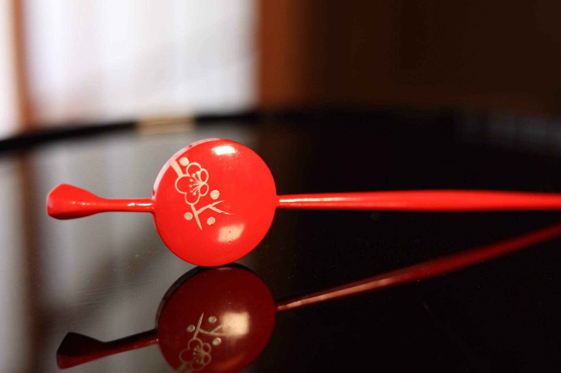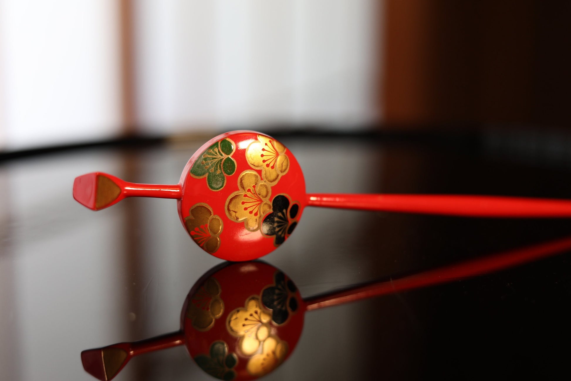 Red Gold KIMONO accessories made of wood & lacquer ,Japanese Antique Floral Plant pattern "Kanzashi"Hairpin hatpin pair set