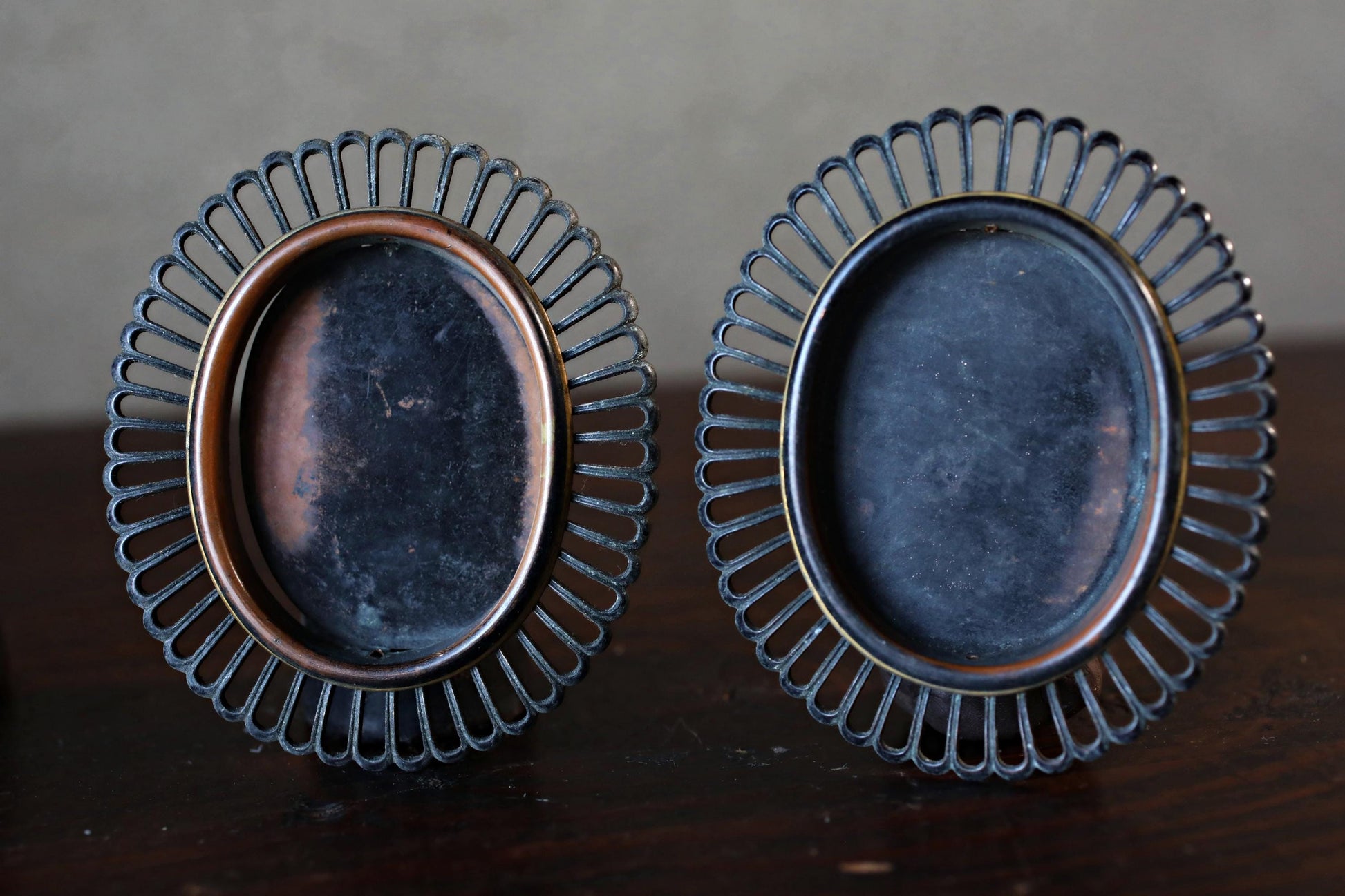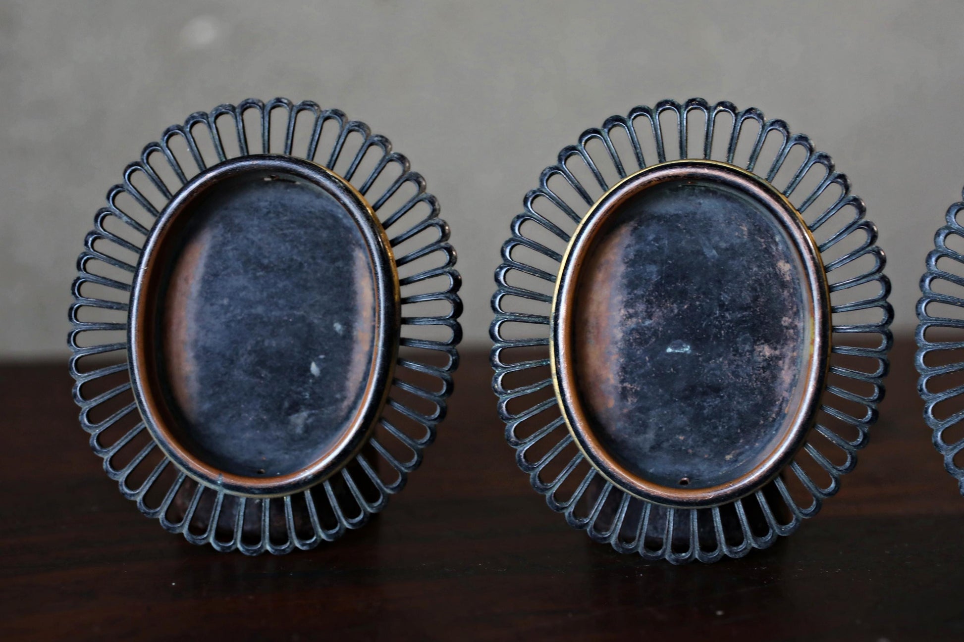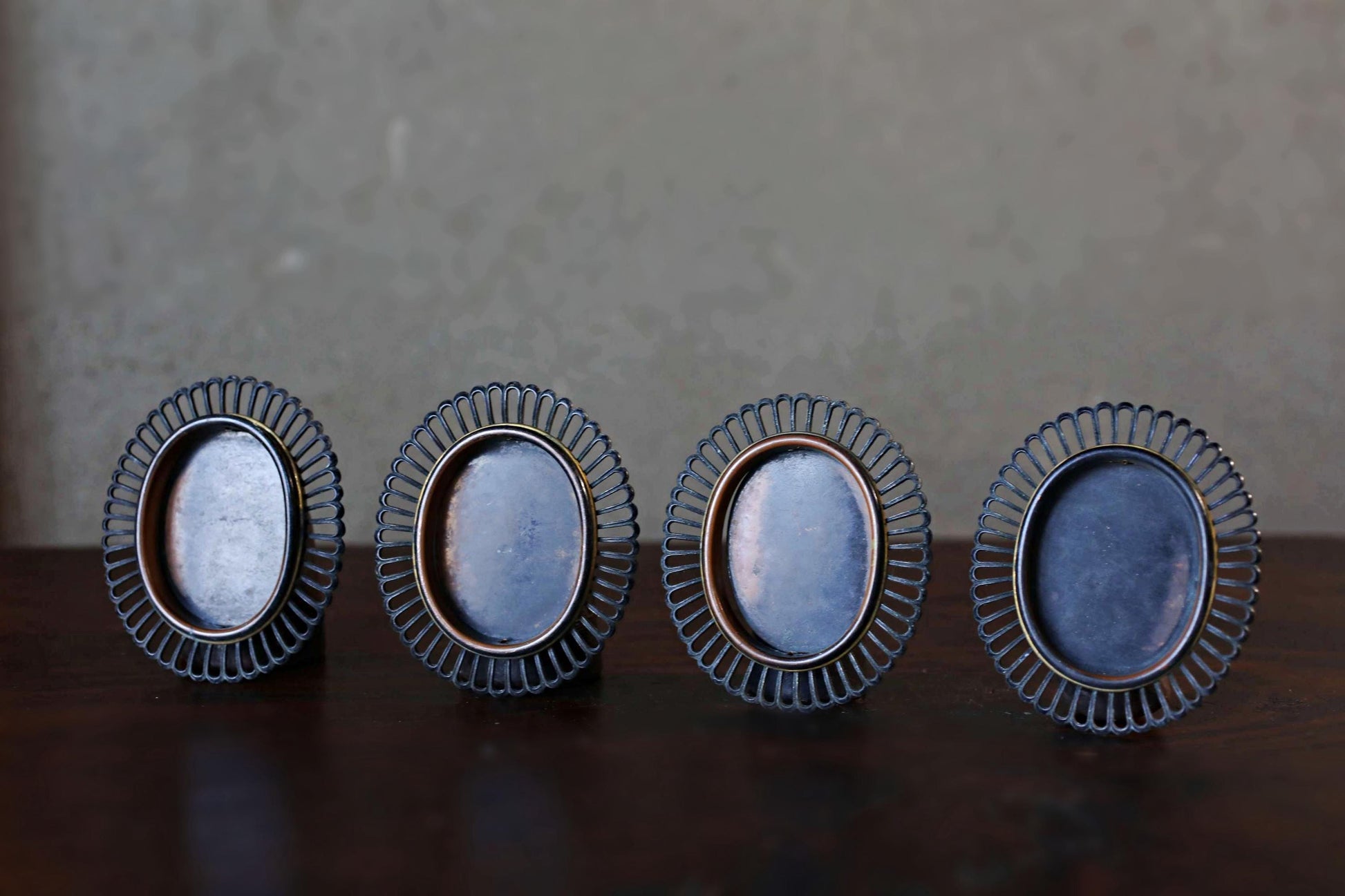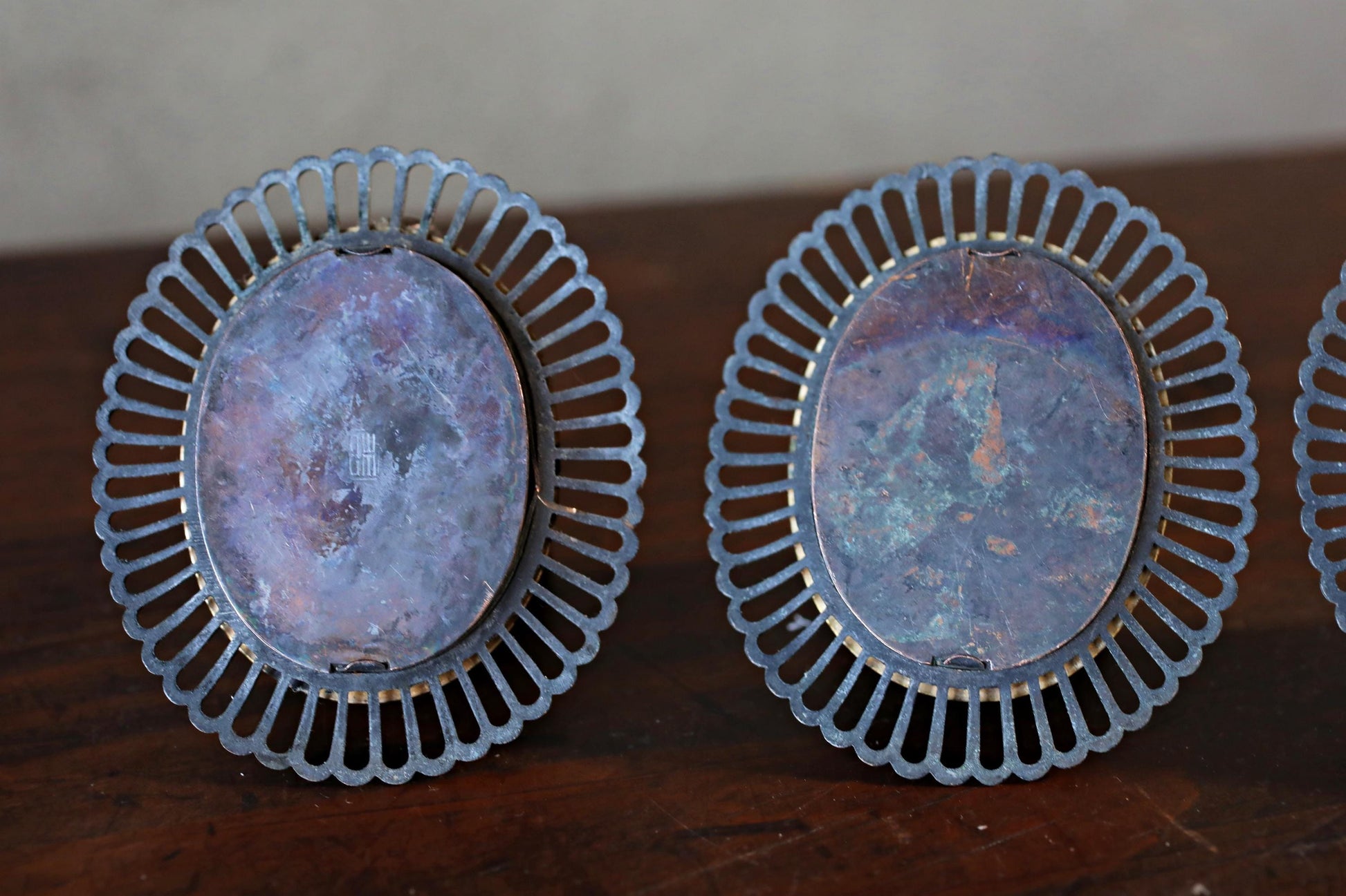 Set of 4 Japanese antique bronze metal furniture FUSUMA sliding door handles flower design with sign openwork HIKITE 1900s H3.5×3in/H9×7.5cm