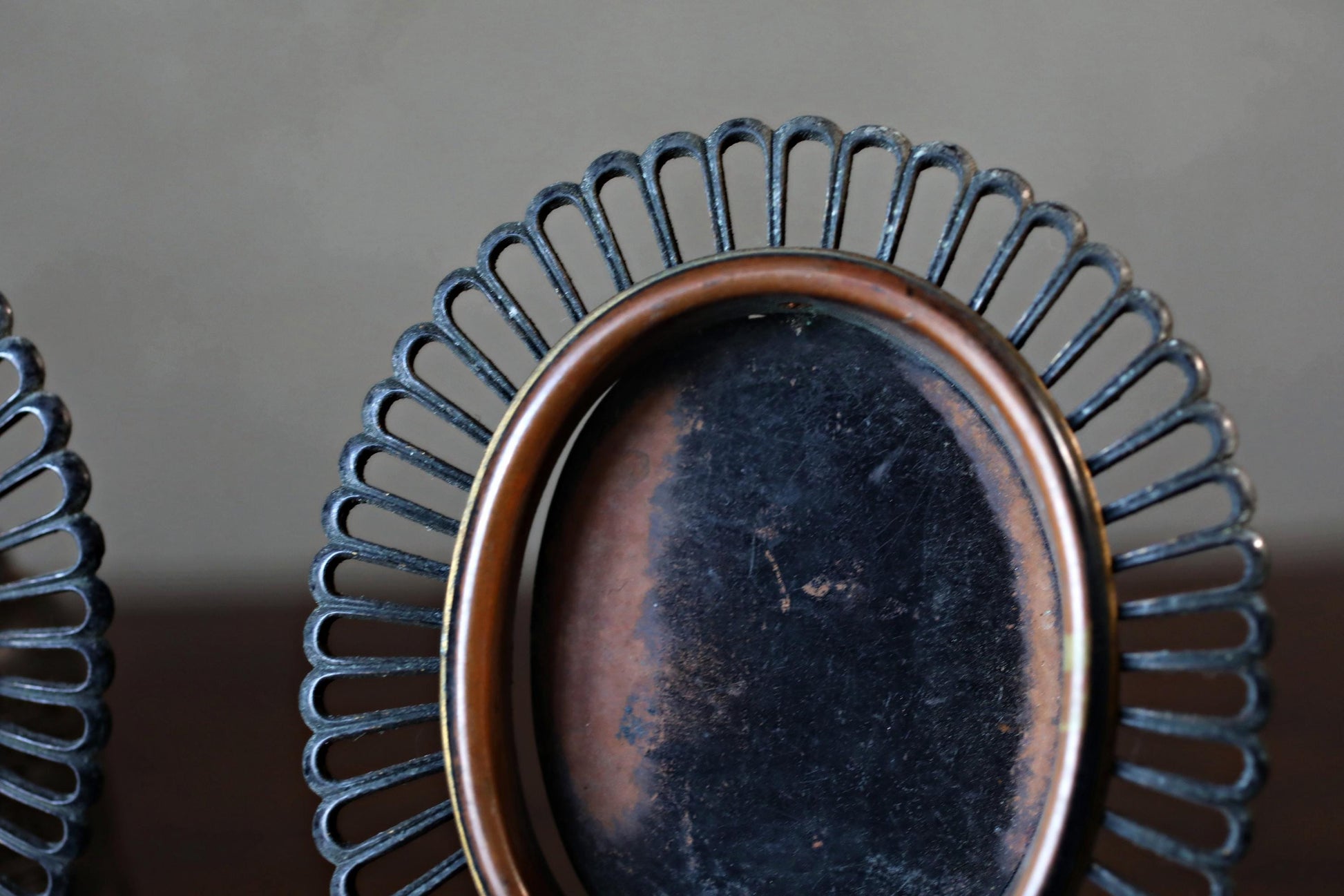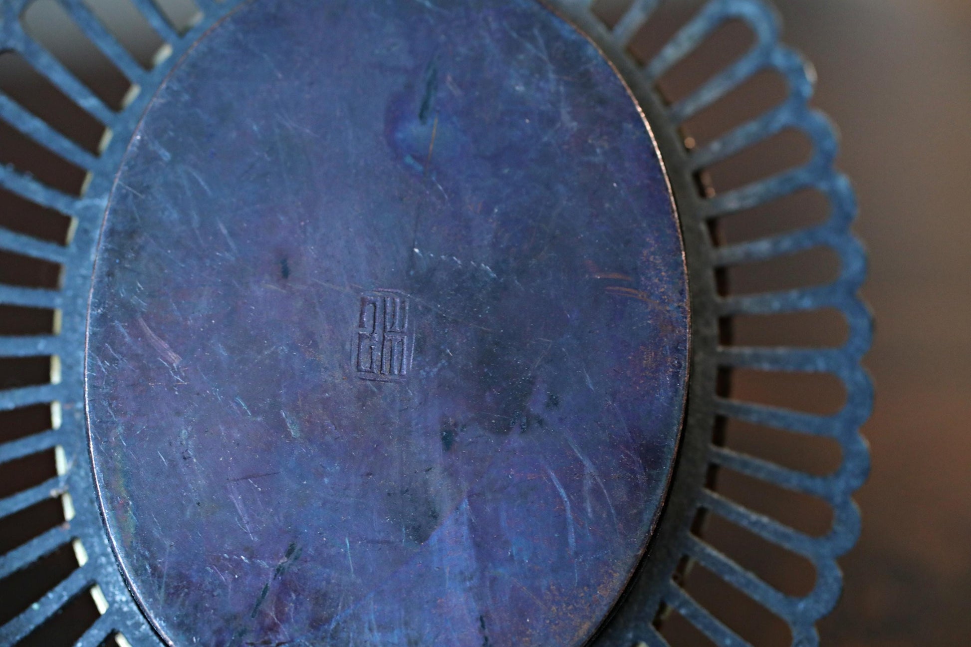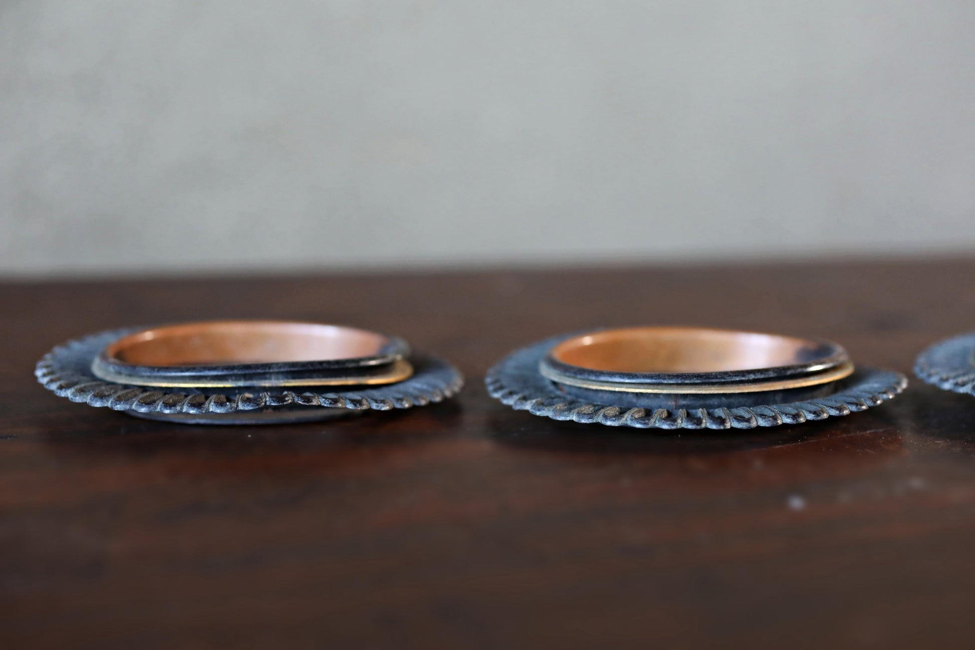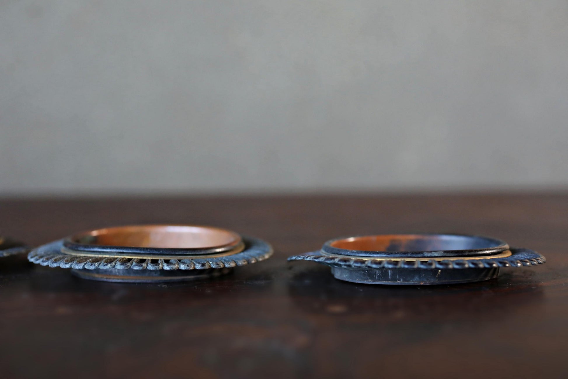 Set of 4 Japanese antique bronze metal furniture FUSUMA sliding door handles flower design with sign openwork HIKITE 1900s H3.5×3in/H9×7.5cm