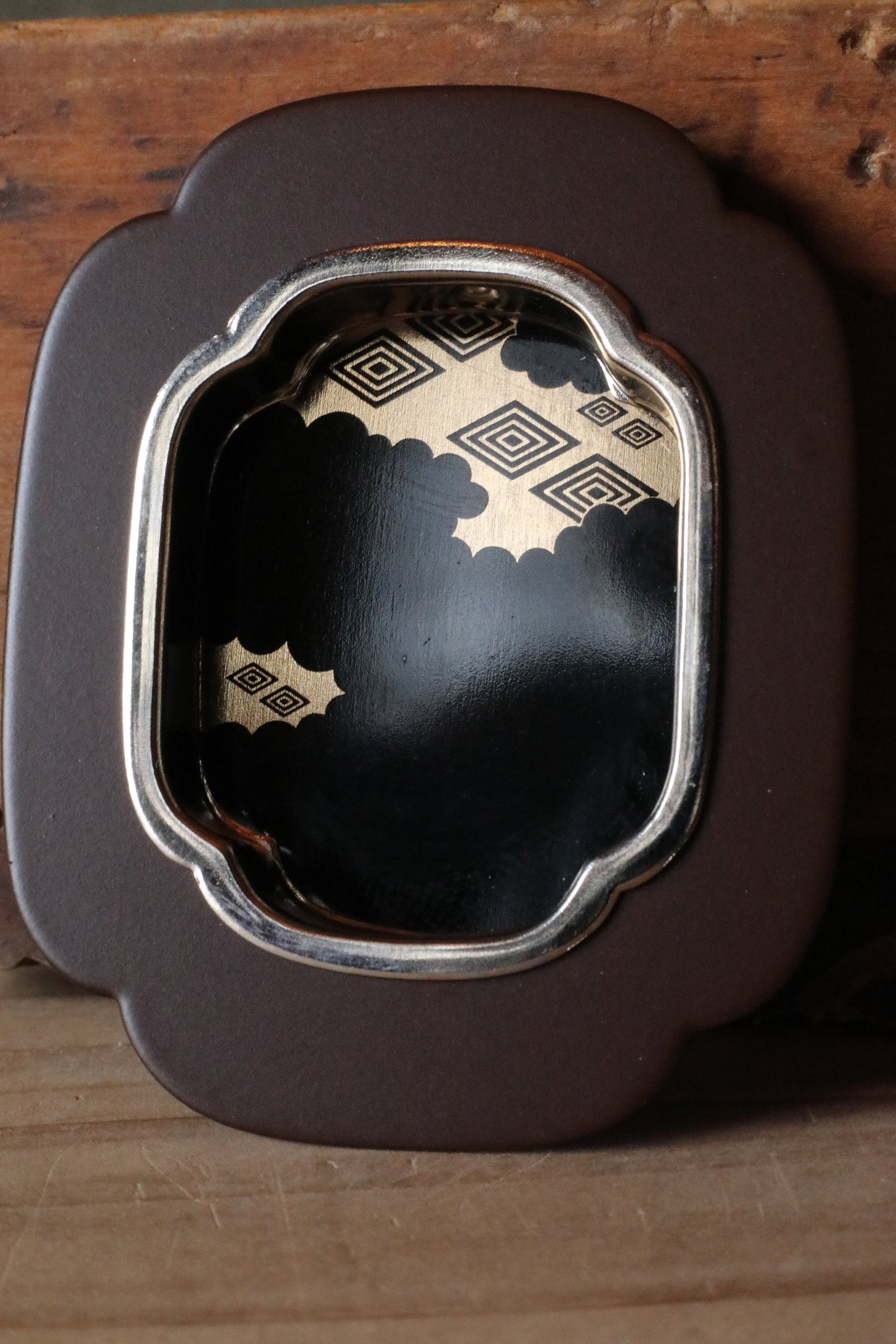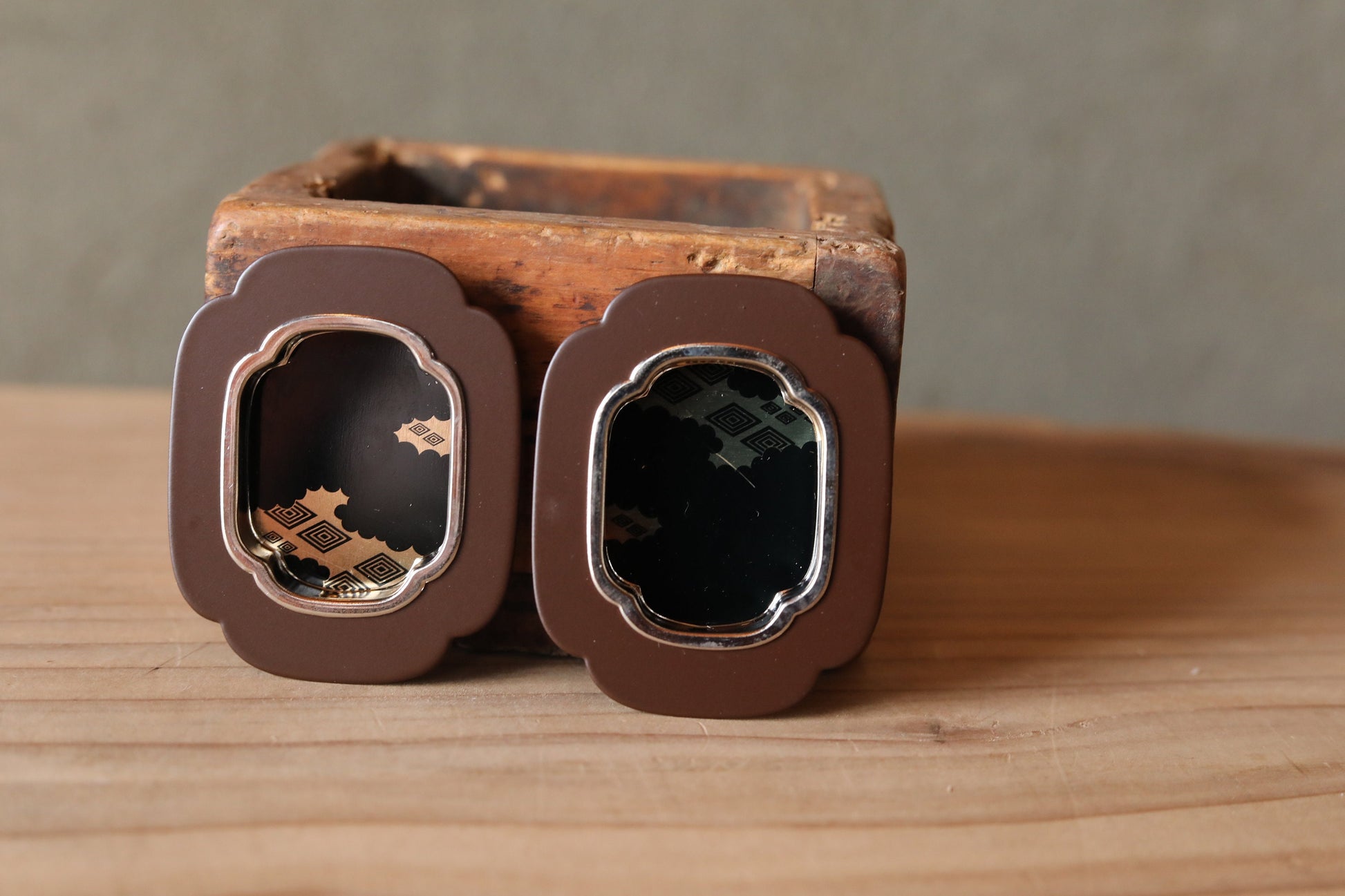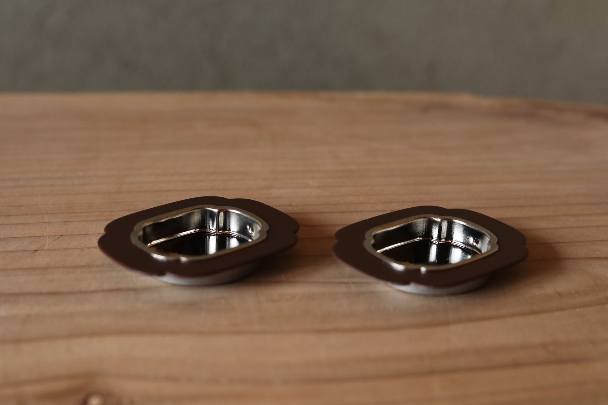 Set pair Japan vintage Brass metal furniture FUSUMA sliding small door black clouds design HIKITE vintage Japanese house H2.1×W1.7×D0.3in.