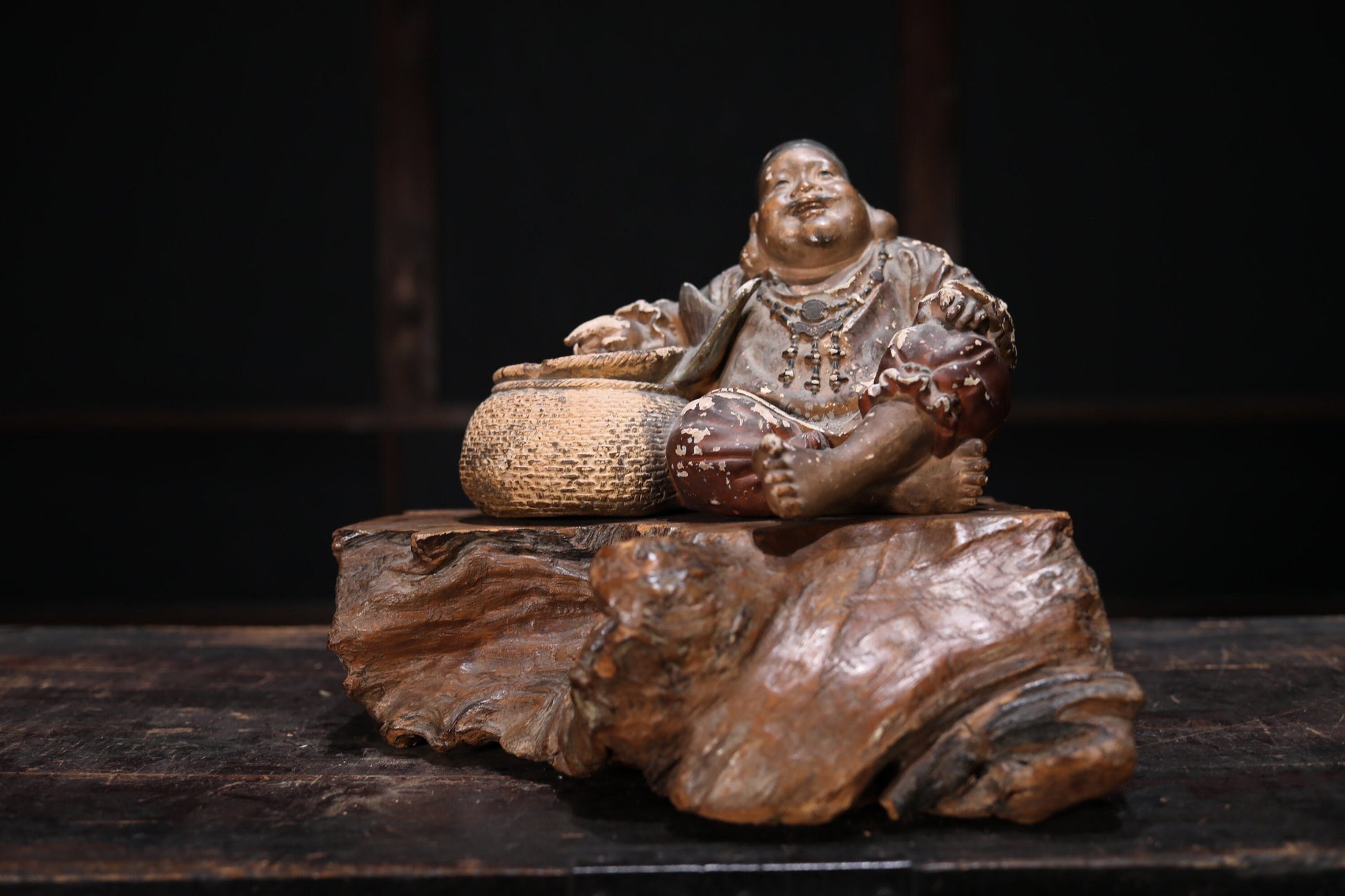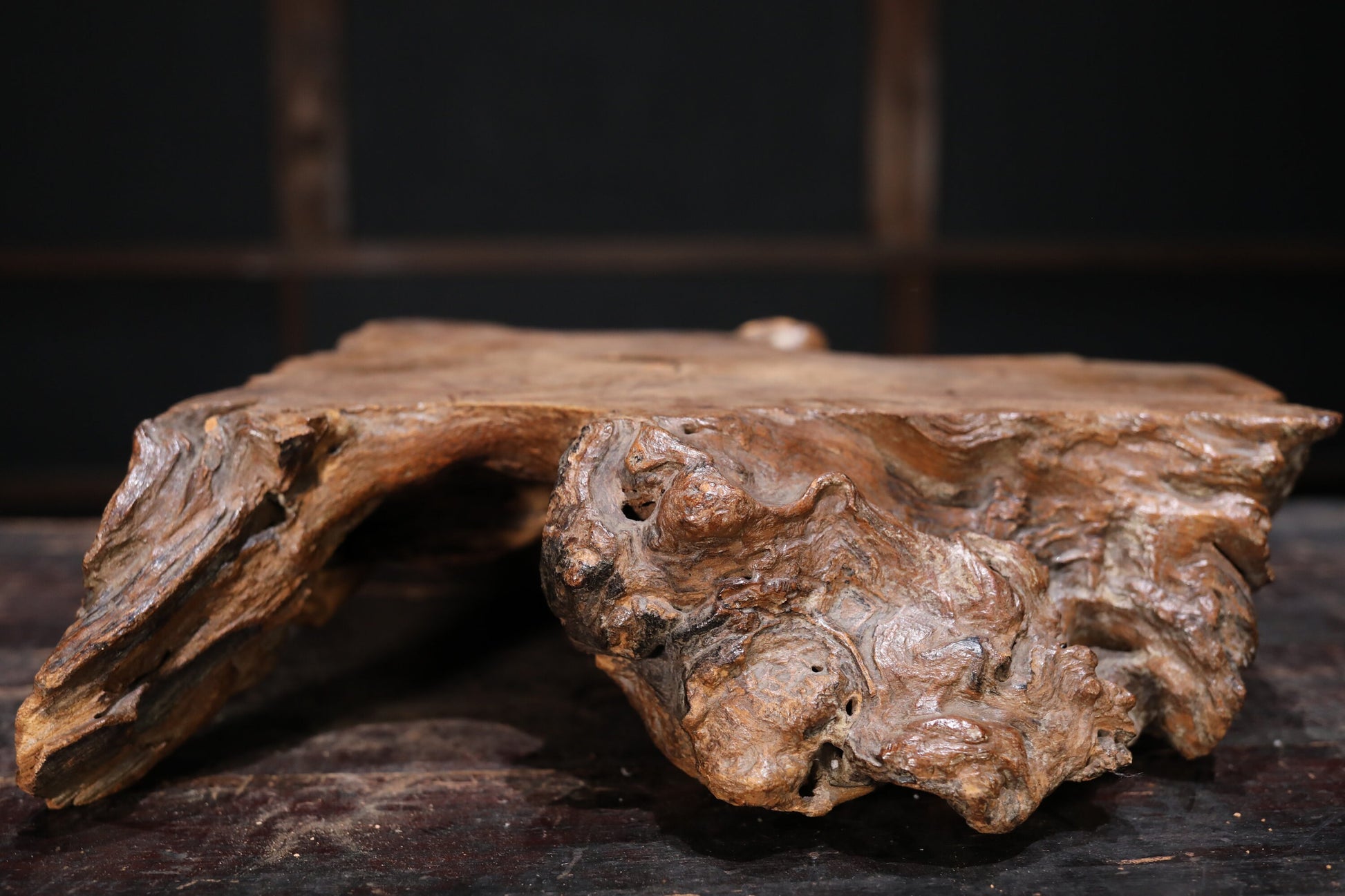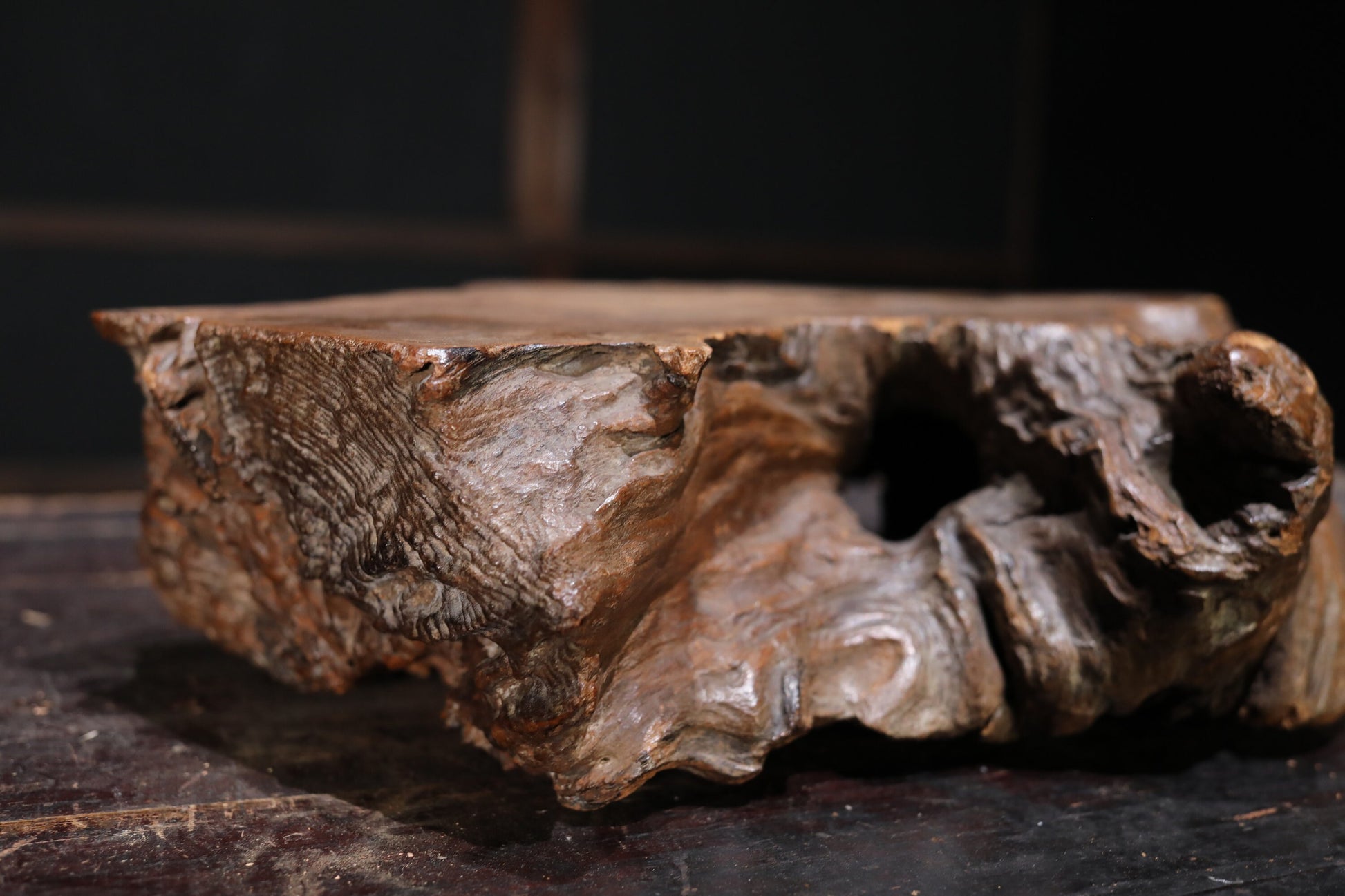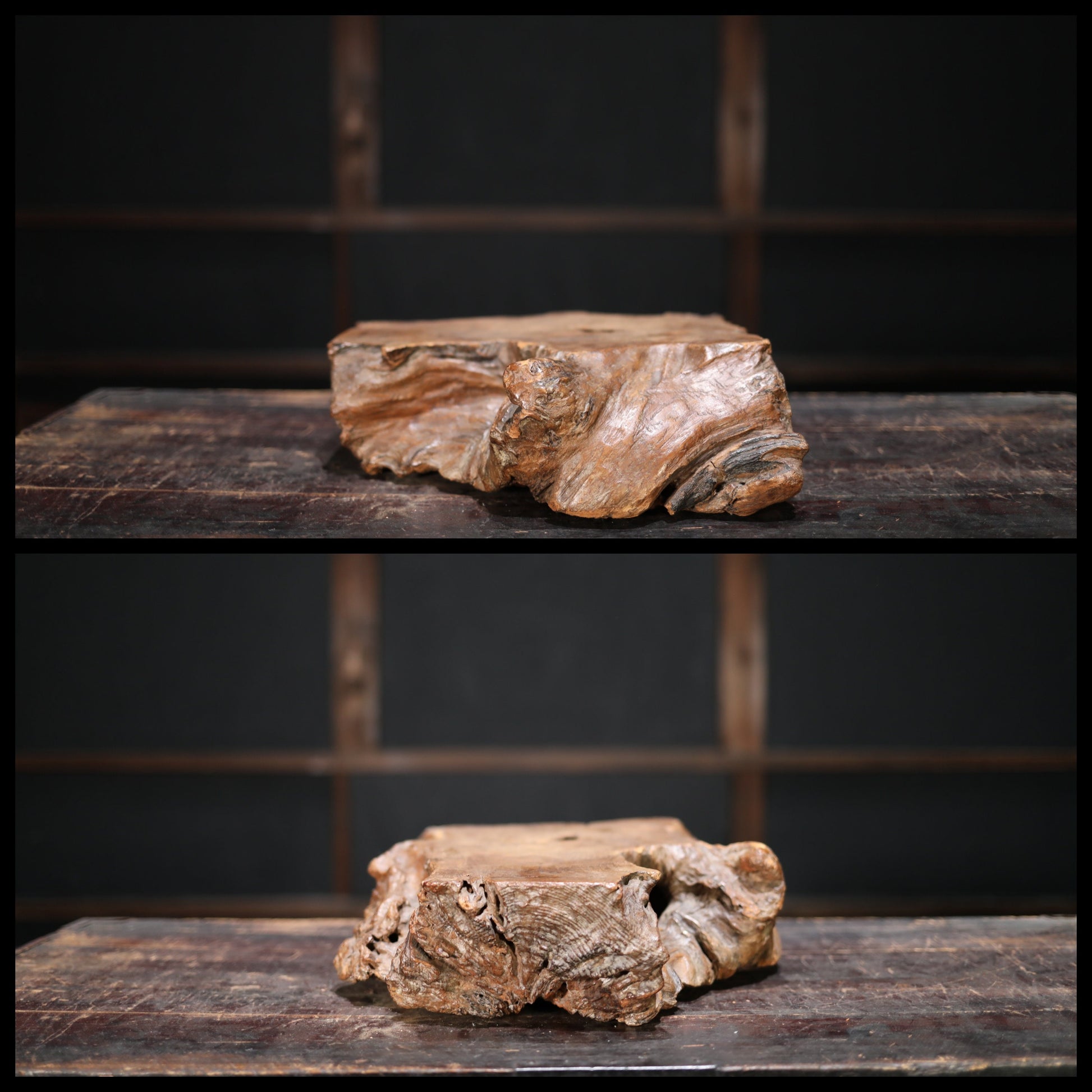 Wood slab Burl large Display Stand wooden pedestal BONSAI IKEBANA ornament stand H3.9×13×12.2in/H10×33×31cm Japanese antique furniture