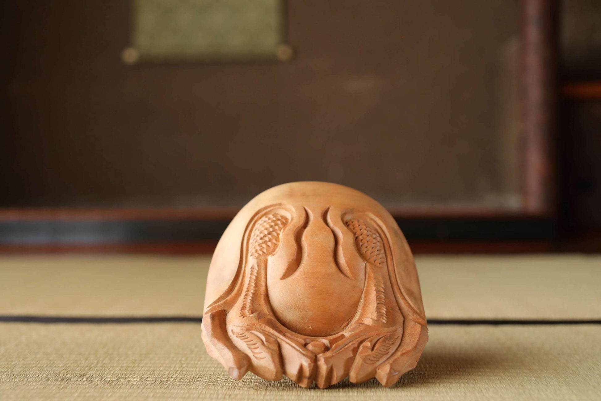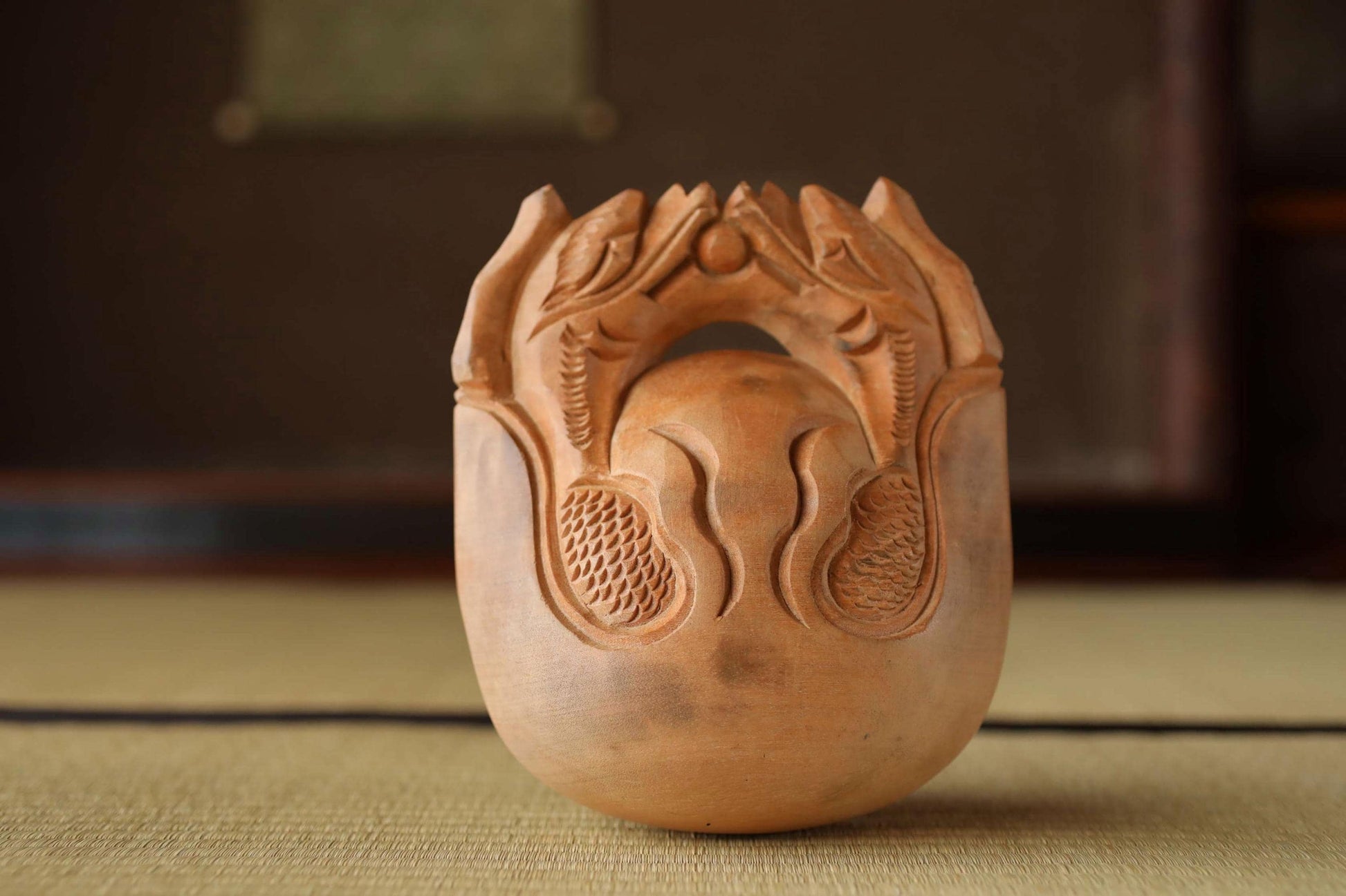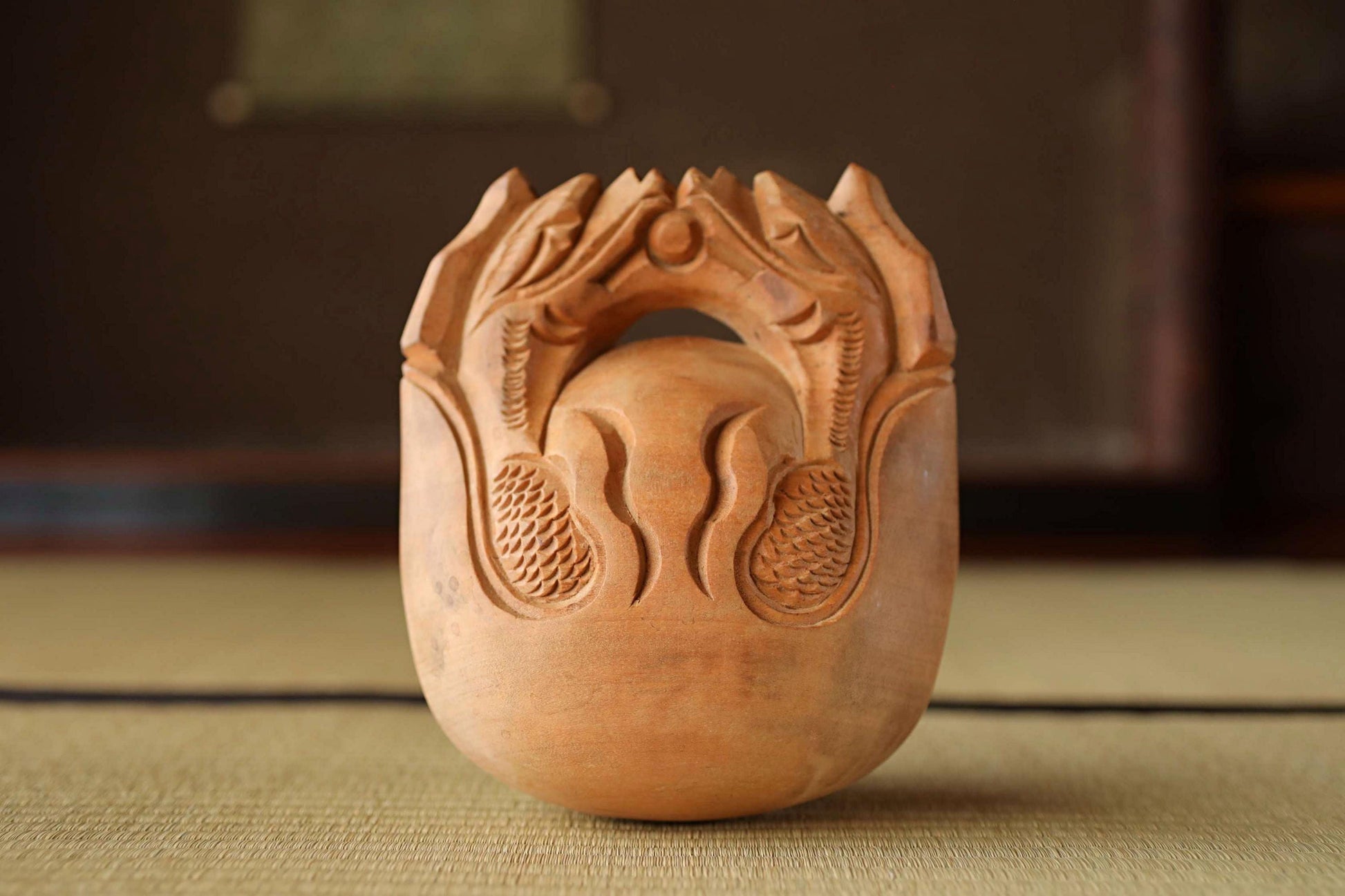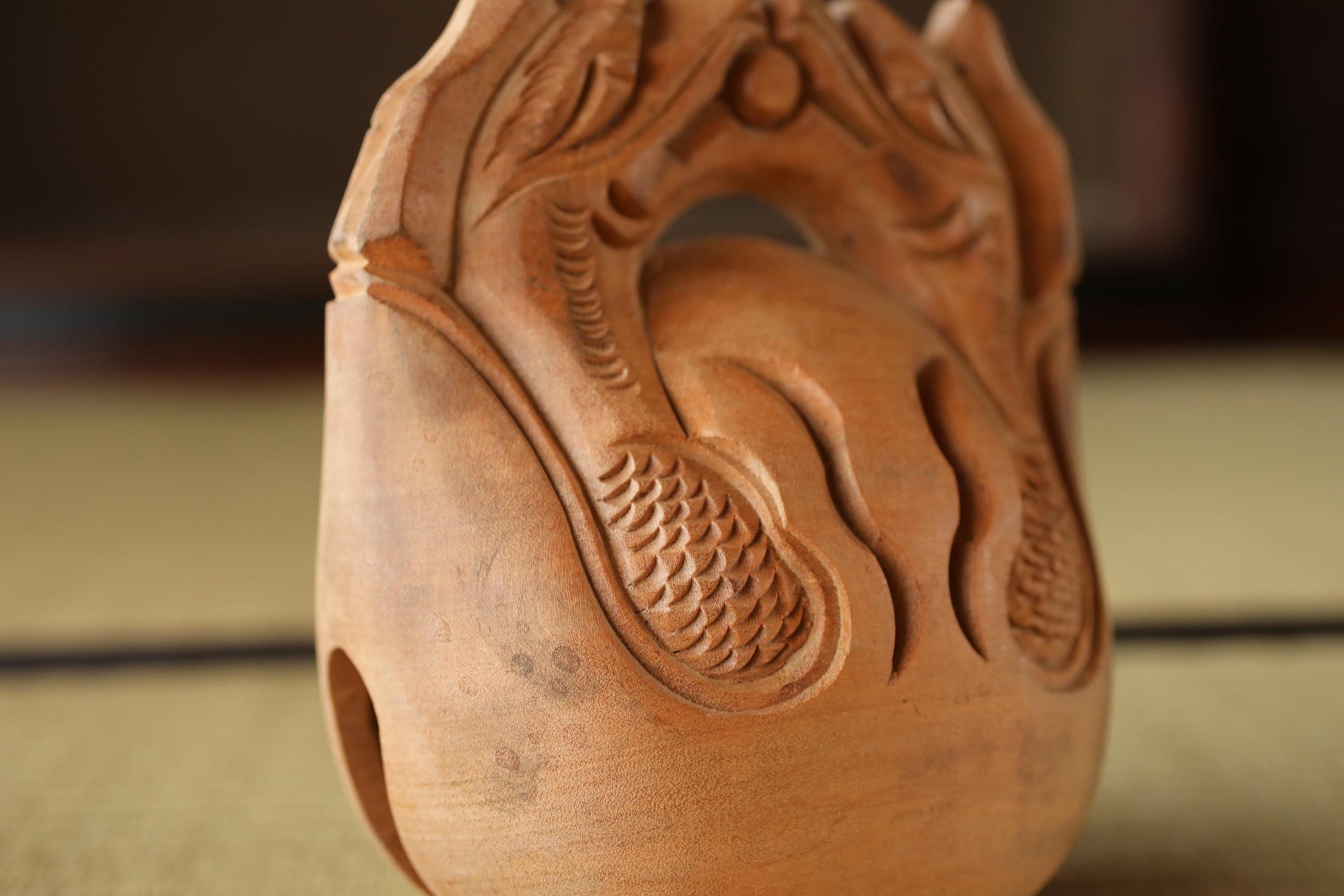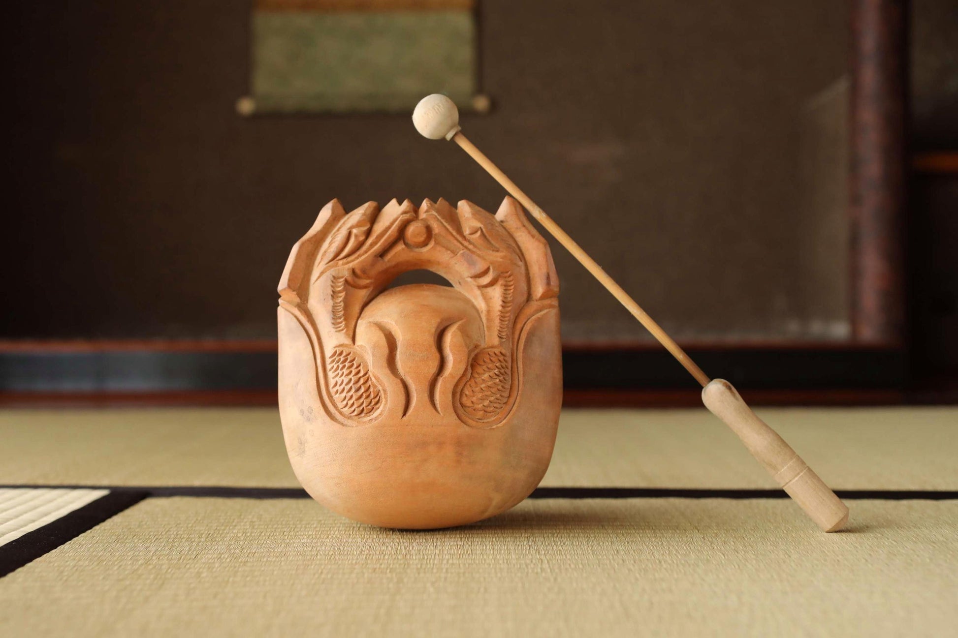 This is a handmade wooden fish. A mokyogi is a wooden drum, used in Buddhism to keep rhythm during sutra reading.